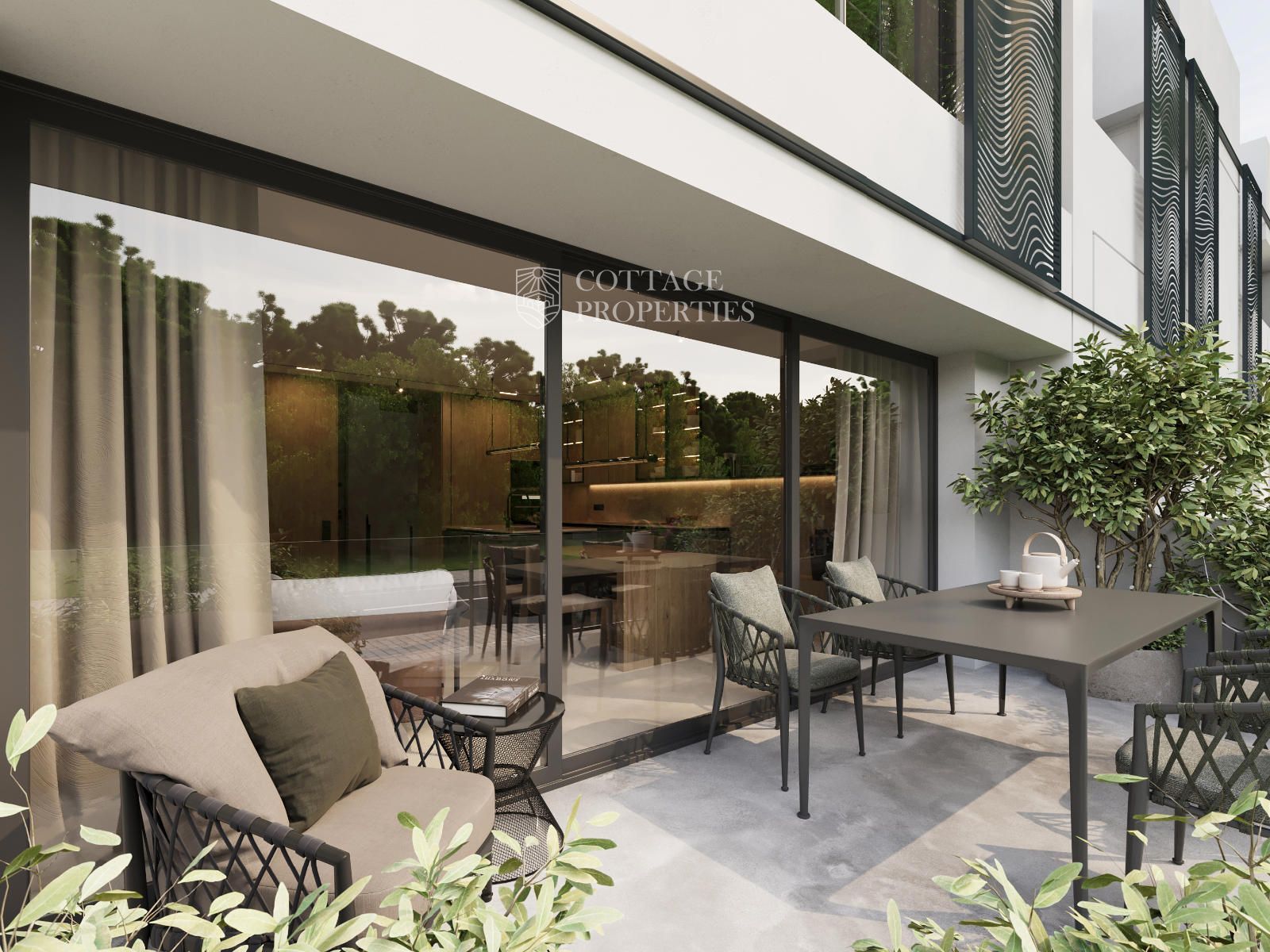 Sus amplias terrazas y jardín privado permiten disfrutar del clima mediterráneo durante todo el año. El complejo ofrece piscina comunitaria y jardín paisajístico de estilo mediterráneo, creando un entorno exclusivo y armonioso.