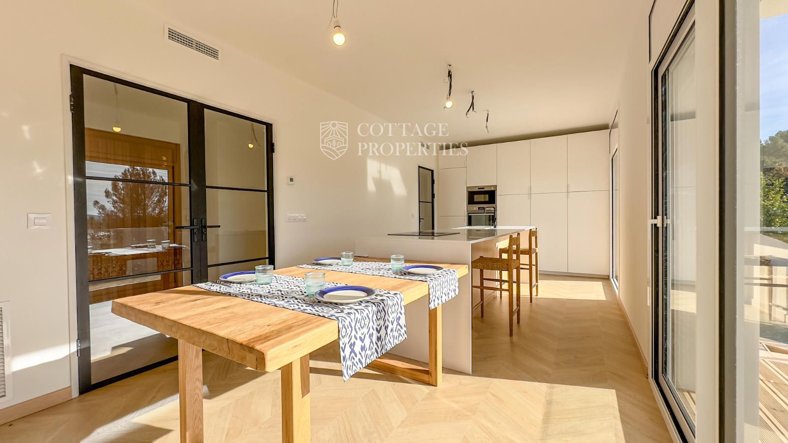 La vivienda ofrece un interior moderno y luminoso, con un espacio de día de concepto abierto que integra el salón-comedor y la cocina, creando una atmósfera acogedora y sofisticada. Dispone de 3 dormitorios, incluyendo un dormitorio principal con vistas al entorno natural, y 2 baños diseñados con materiales actuales y de calidad.