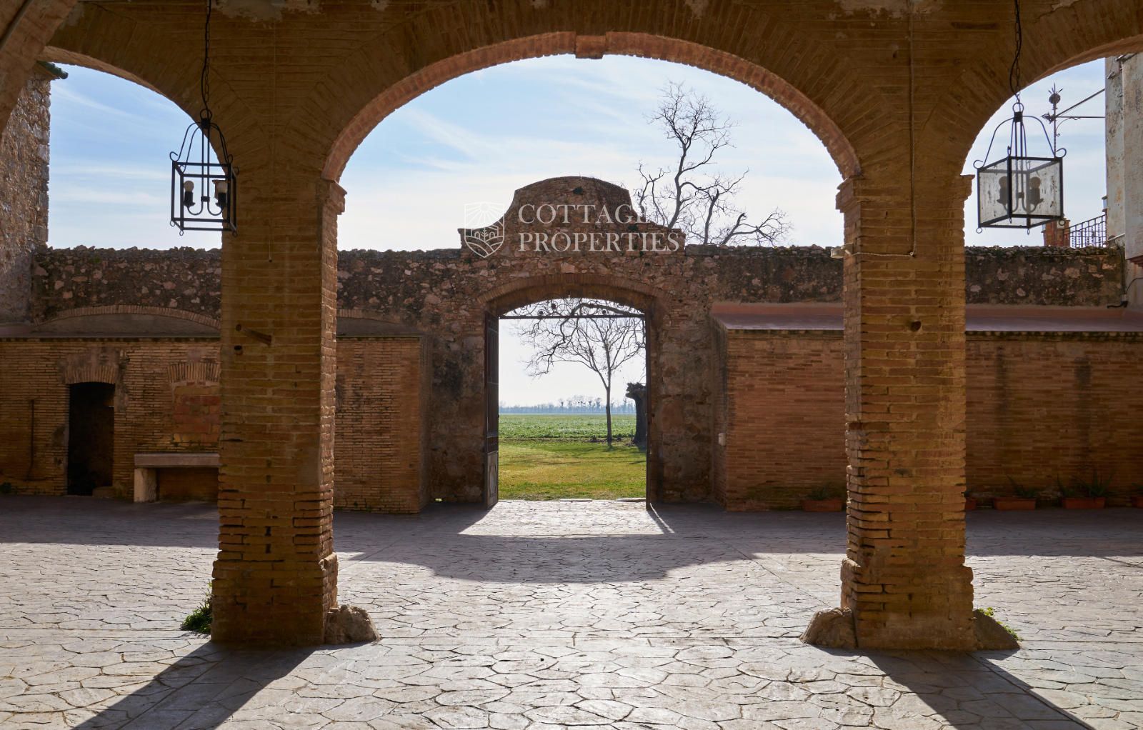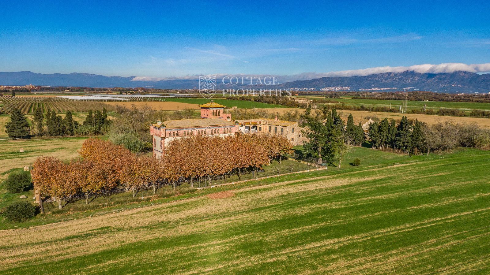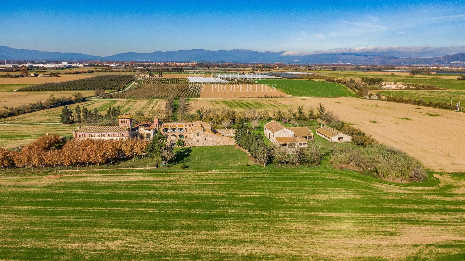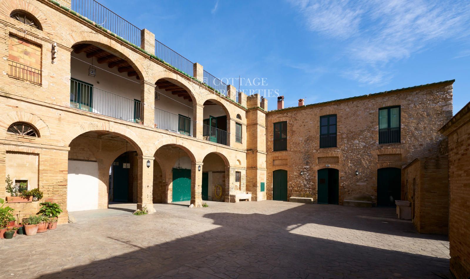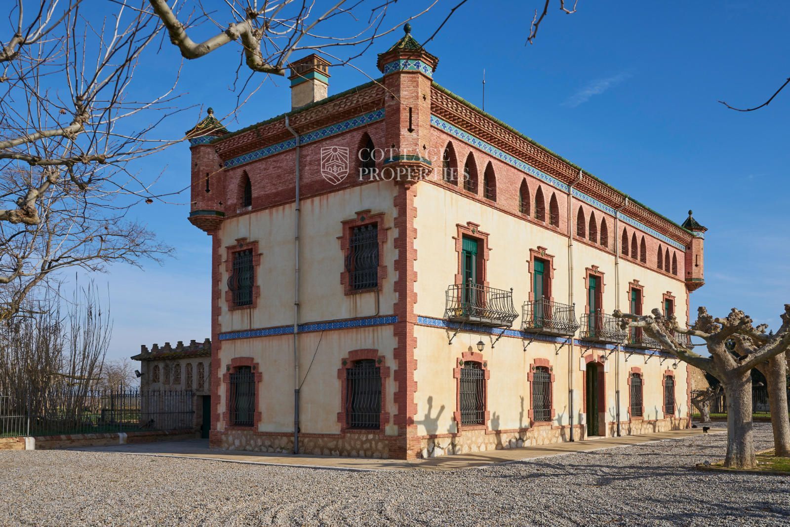 La propiedad cuenta con una superficie construida de 2.100 m² distribuidos en tres edificaciones: pajar, corral y el Cortal inicial, además del edificio modernista con tres garitas, una magnífica torre y vistas panorámicas de toda la comarca. El terreno de 23,26 hectáreas garantiza privacidad absoluta y un entorno espectacular.