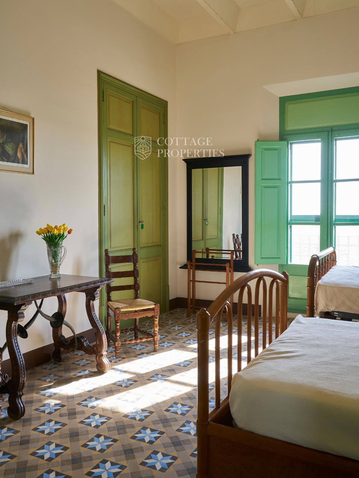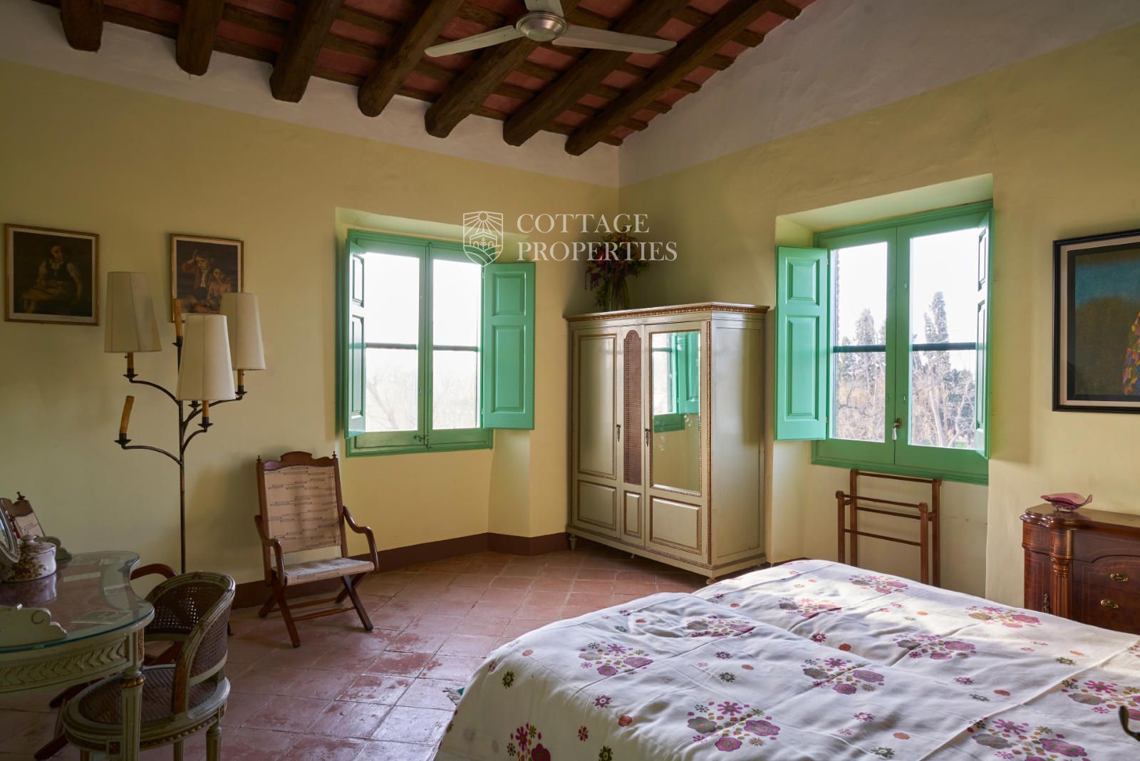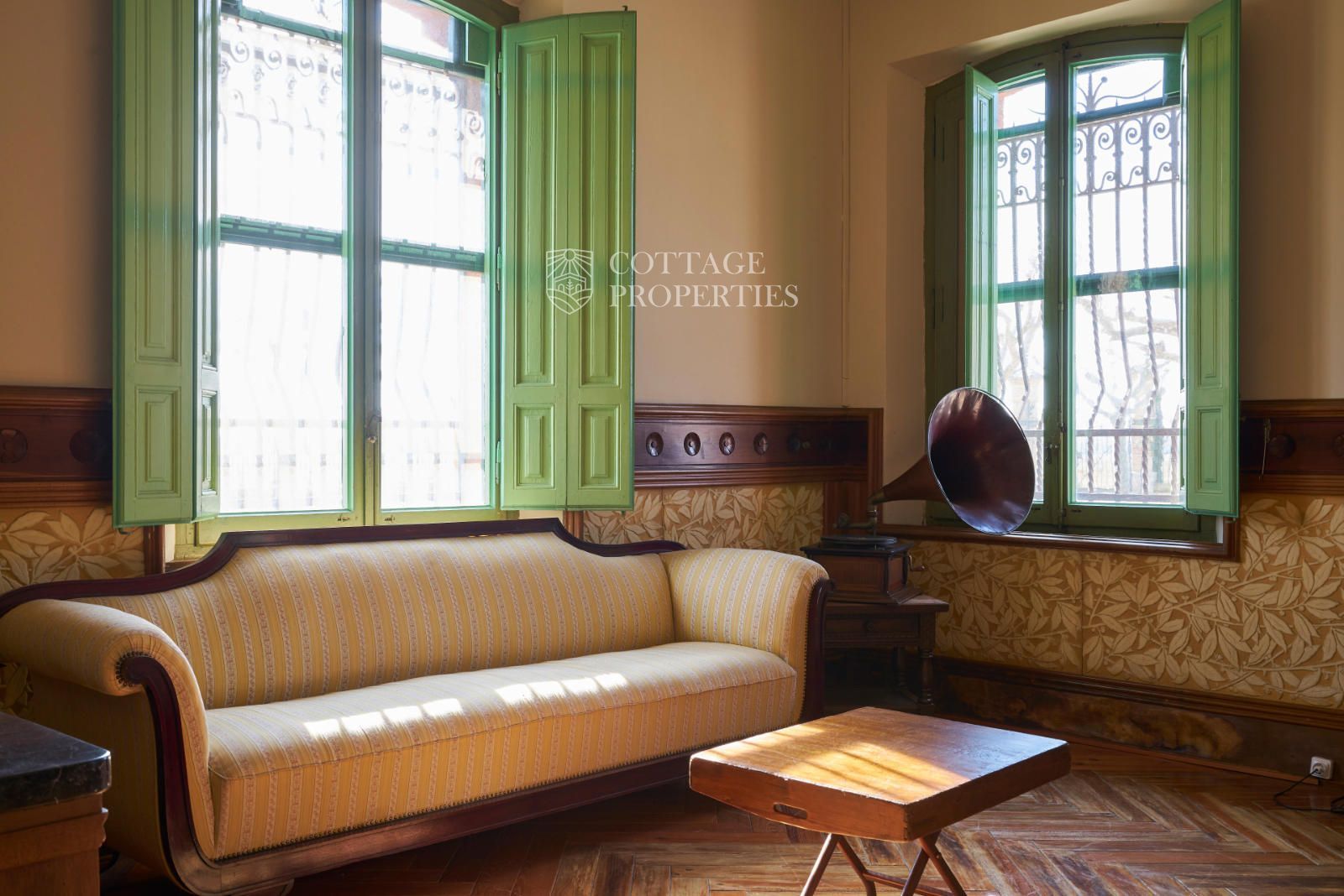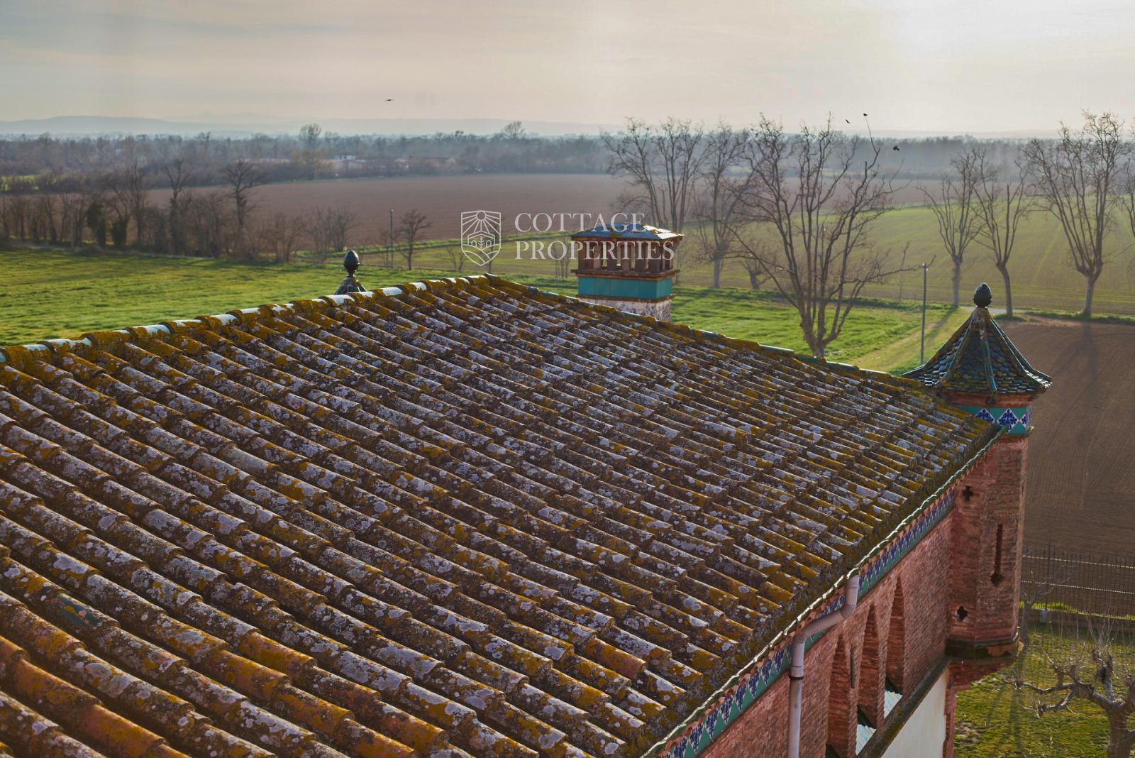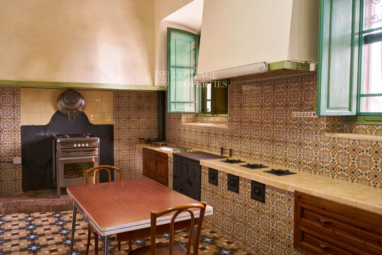La propiedad cuenta con una superficie construida de 2.100 m² distribuidos en tres edificaciones: pajar, corral y el Cortal inicial, además del edificio modernista con tres garitas, una magnífica torre y vistas panorámicas de toda la comarca. El terreno de 23,26 hectáreas garantiza privacidad absoluta y un entorno espectacular.