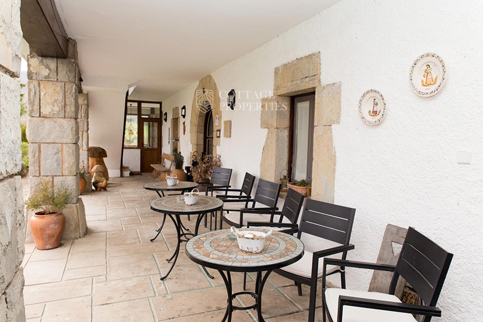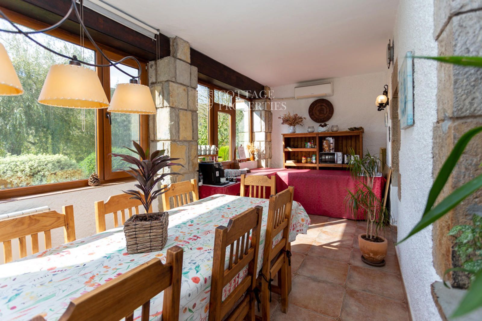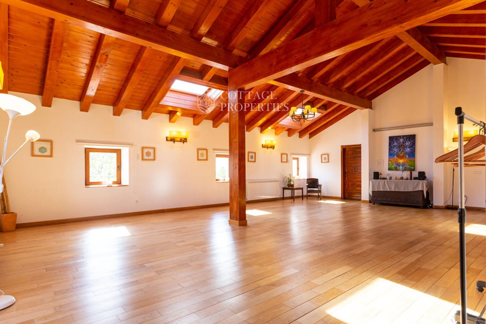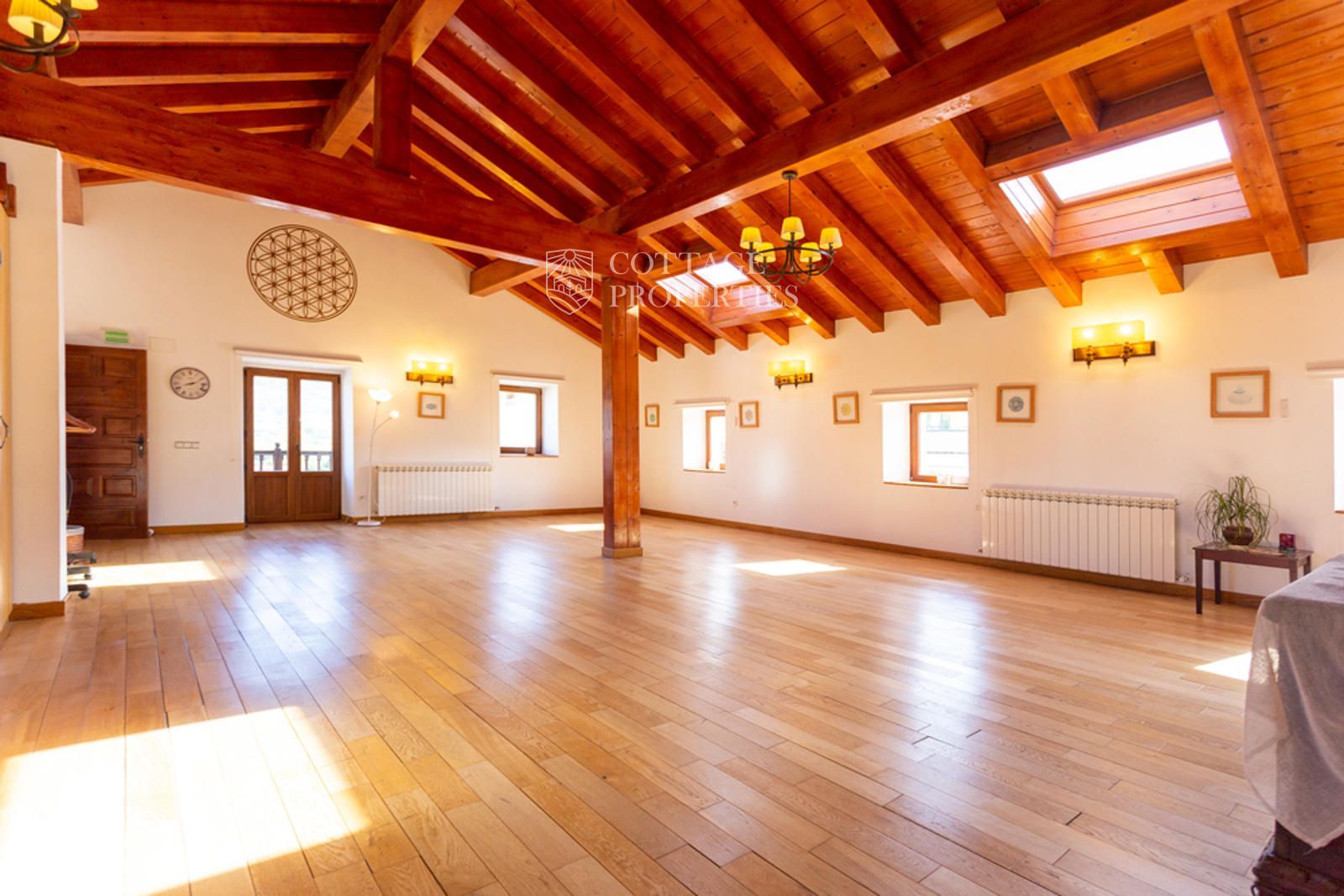 La masía cuenta con un acogedor recibidor, una amplia escalera interior y un apartamento privado. En la planta baja se encuentran un salón con chimenea, un comedor con vistas al jardín, una cocina, dos habitaciones con sus respectivos baños, una habitación adicional, un baño de uso general y una zona de caldera. La planta superior alberga habitaciones con sus baños privados, además de dos terrazas cerradas que se orientan al este y al sur. En la última planta, la masía dispone de una gran sala diáfana de 80 m² con techo de madera, ideal para actividades o eventos, junto a tres habitaciones con baños.