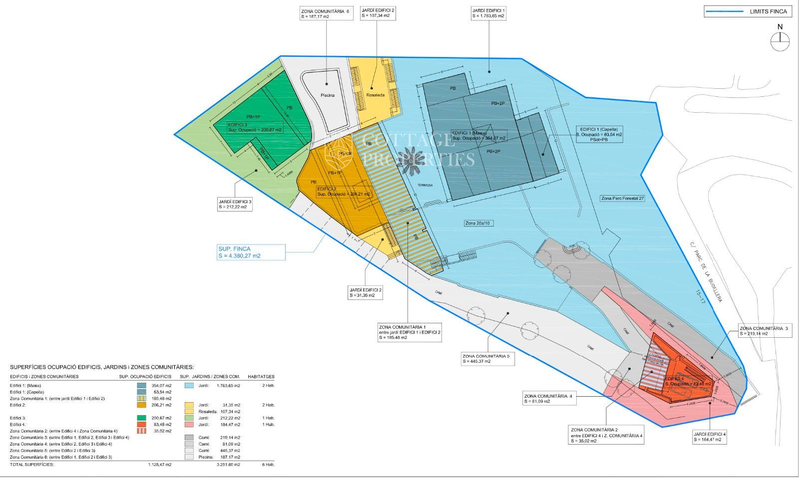 Existe la posibilidad de subdividir la masía en dos viviendas independientes conservando su estructura histórica así como la opción de desarrollar una cuarta vivienda dentro de la finca adaptando los espacios existentes.