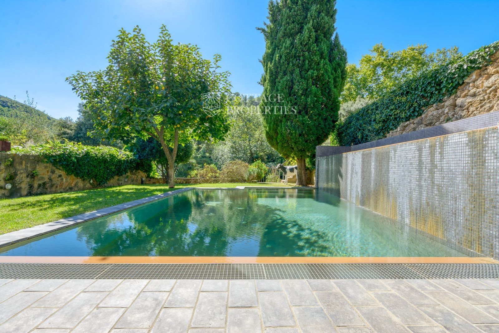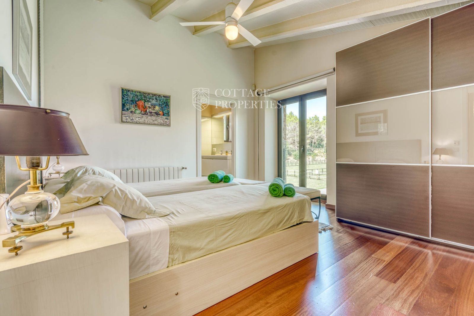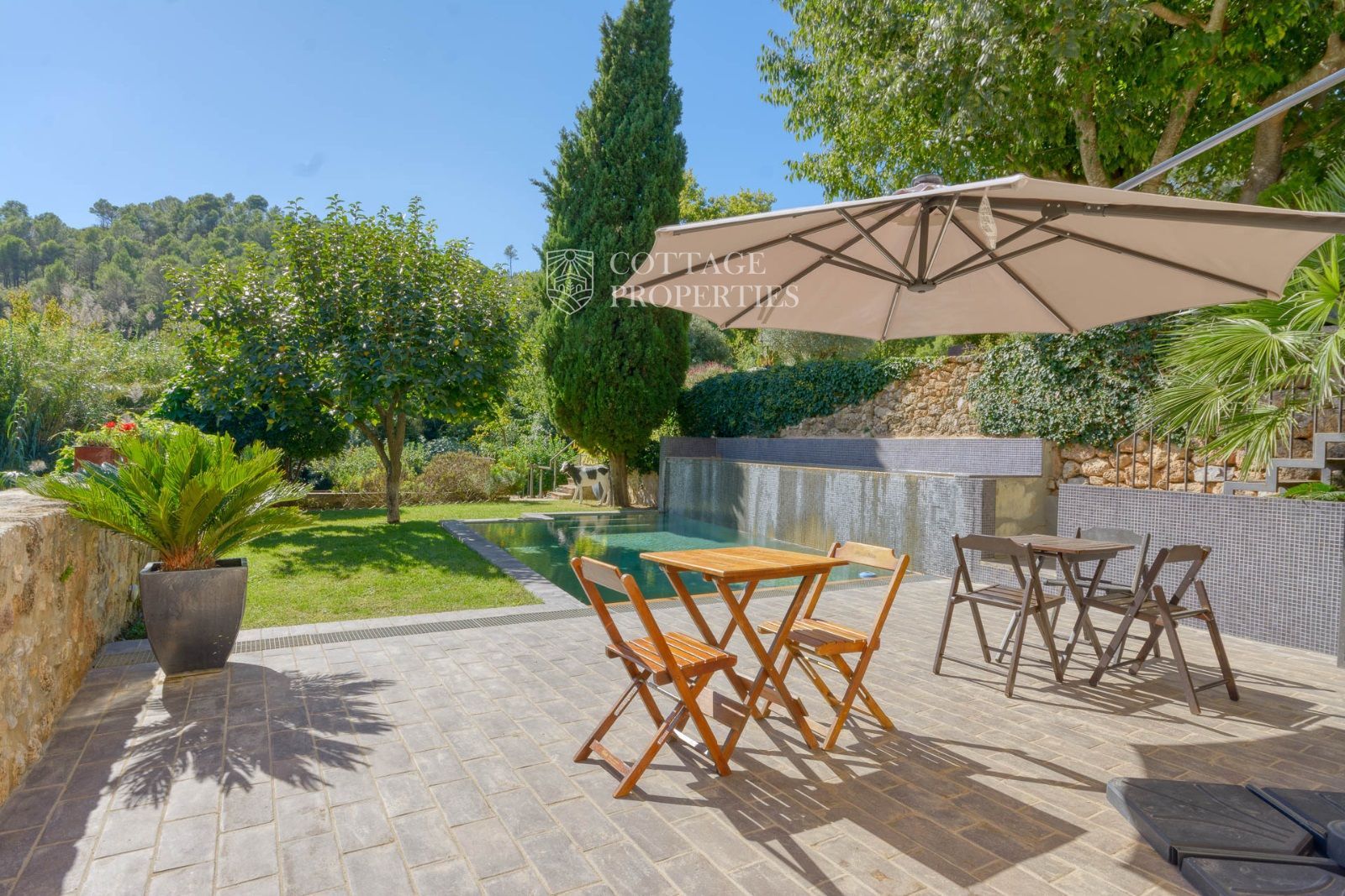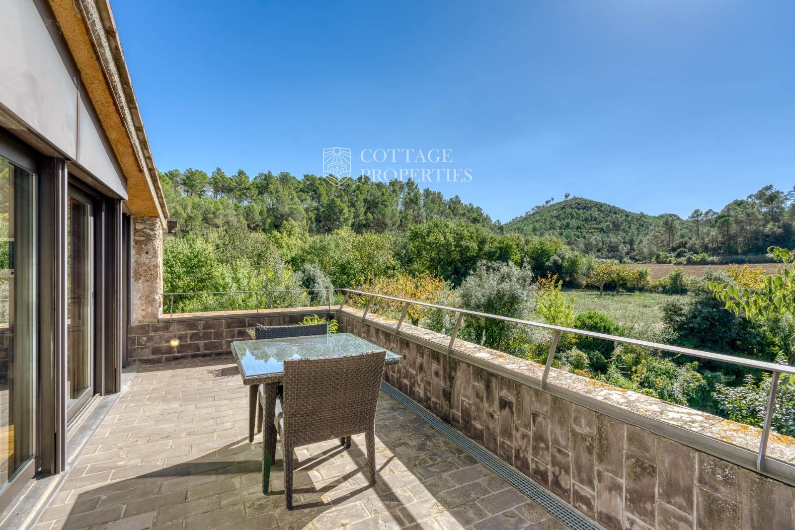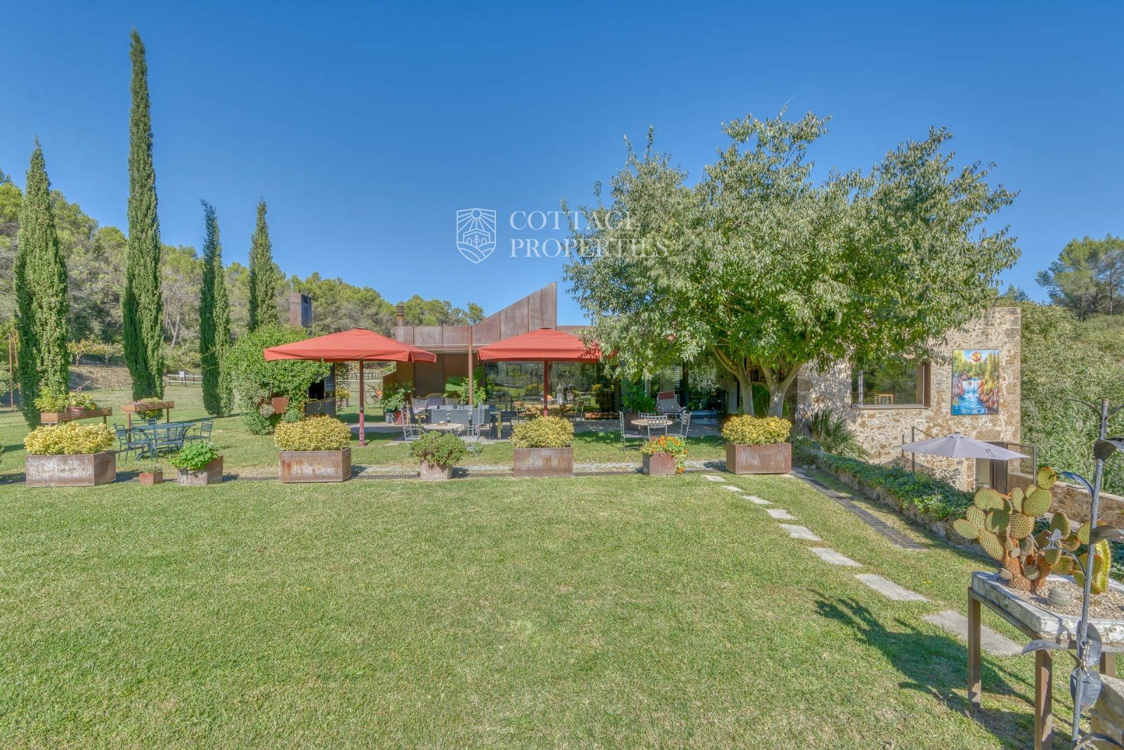 El exterior de la masía está diseñado para maximizar el disfrute del entorno natural. Incluye un jardín espacioso, una piscina refrescante y una terraza perfecta para relajarse al aire libre. También cuenta con boxes y una pista para caballos, lo que la convierte en un lugar ideal para los amantes de la equitación y la vida al aire libre.