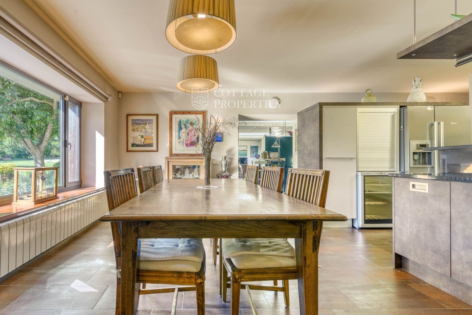La planta principal de la masía ofrece un ambiente amplio y luminoso con varios espacios para el ocio y la vida familiar. Además de las 6 habitaciones y 6 baños, la propiedad cuenta con un jardín bien cuidado, una terraza y una piscina, ideal para disfrutar del clima mediterráneo. La orientación norte, sur, este y oeste asegura una excelente exposición al sol durante todo el día.