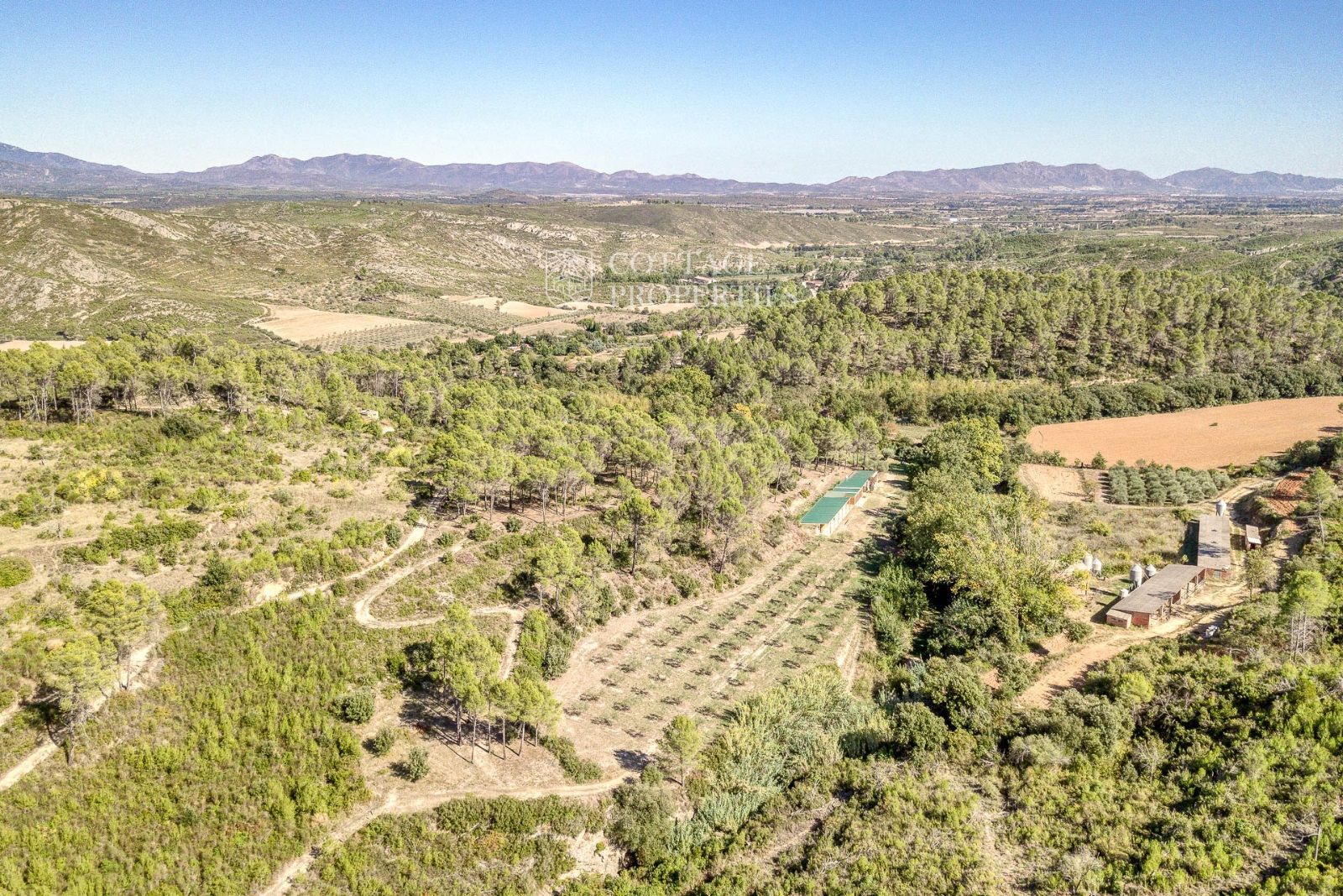 La masía dispone de una superficie construida de 979 m² y está asentada en una amplia parcela de 32.691 m². Con 6 habitaciones y 6 baños, es perfecta para una familia grande o como una inversión en turismo rural. La propiedad se encuentra en excelente estado, equipada con calefacción central de gasoil, aire acondicionado y armarios empotrados, garantizando confort durante todo el año.
