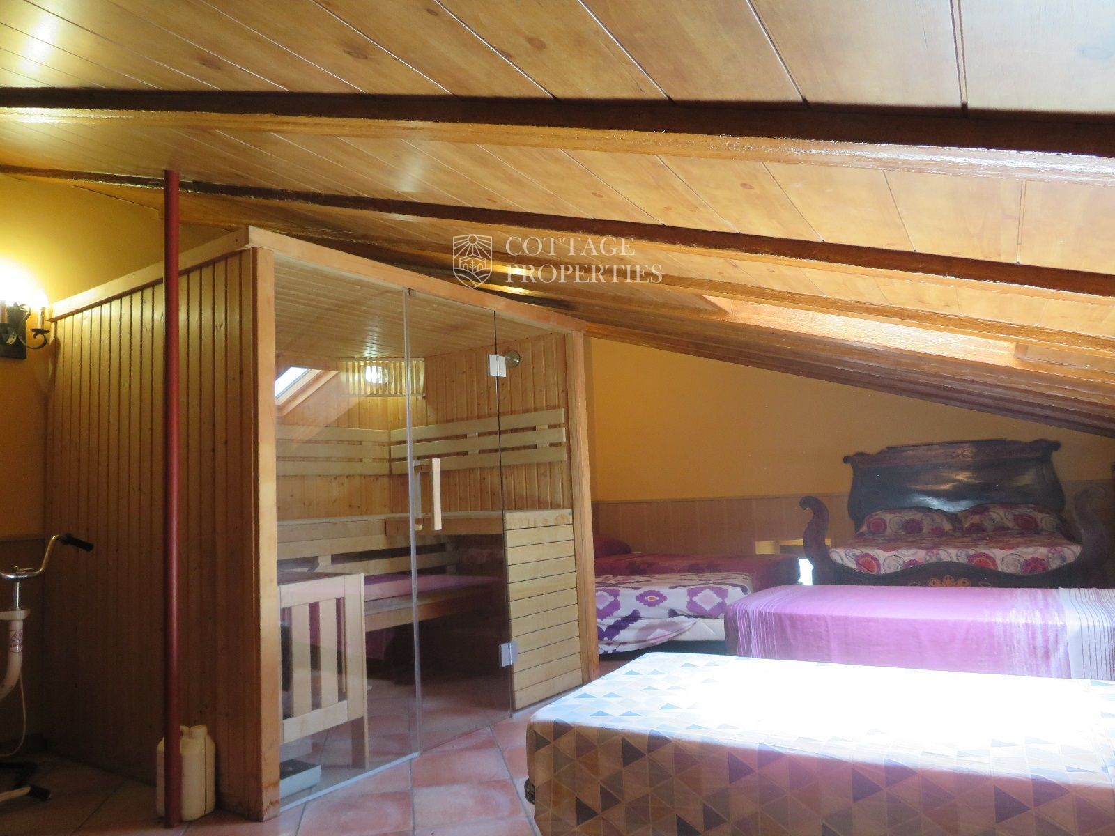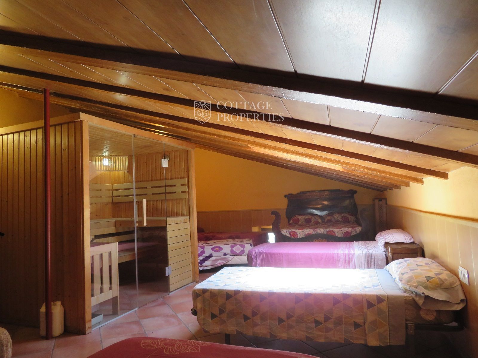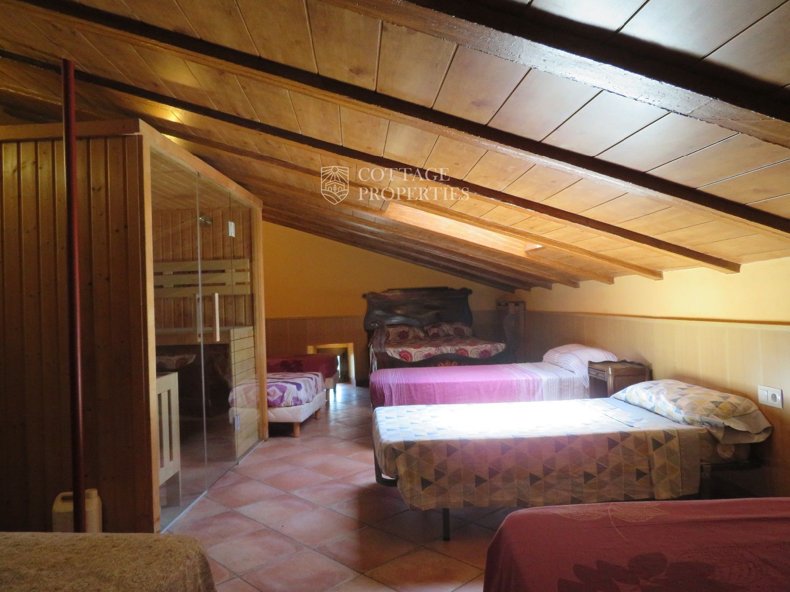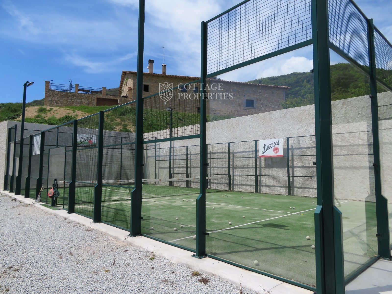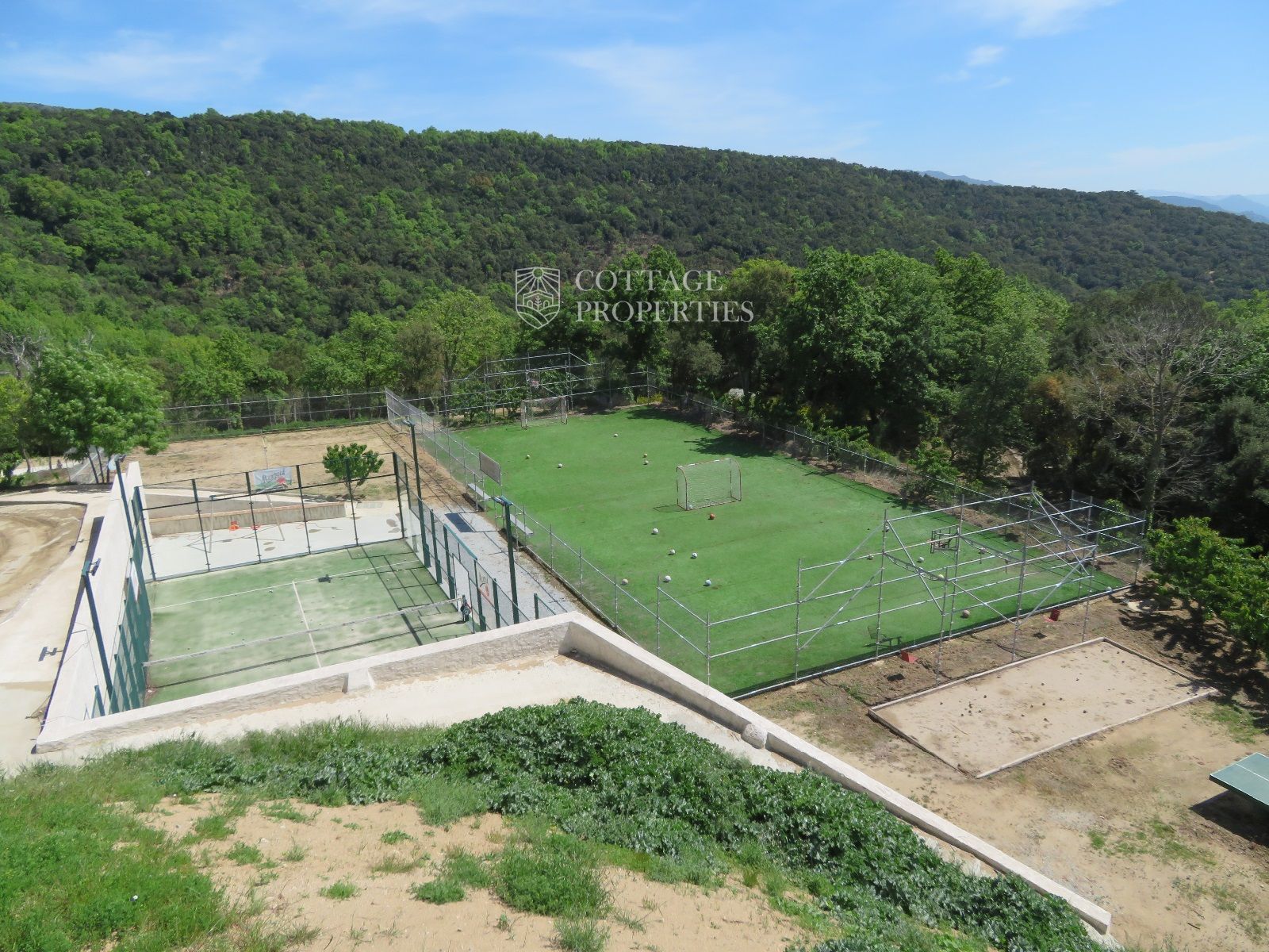 La masía cuenta con 12 habitaciones, 4 baños completos, una cocina comedor, chimenea, jacuzzi, sauna y una piscina con bomba de calor y agua salada. Además, la finca incluye un pequeño lago, un huerto ecológico y una amplia variedad de instalaciones recreativas, como una pista de tenis, campo de fútbol, pista de básquet, minigolf, petanca, ping-pong y circuitos para bicicleta y moto.