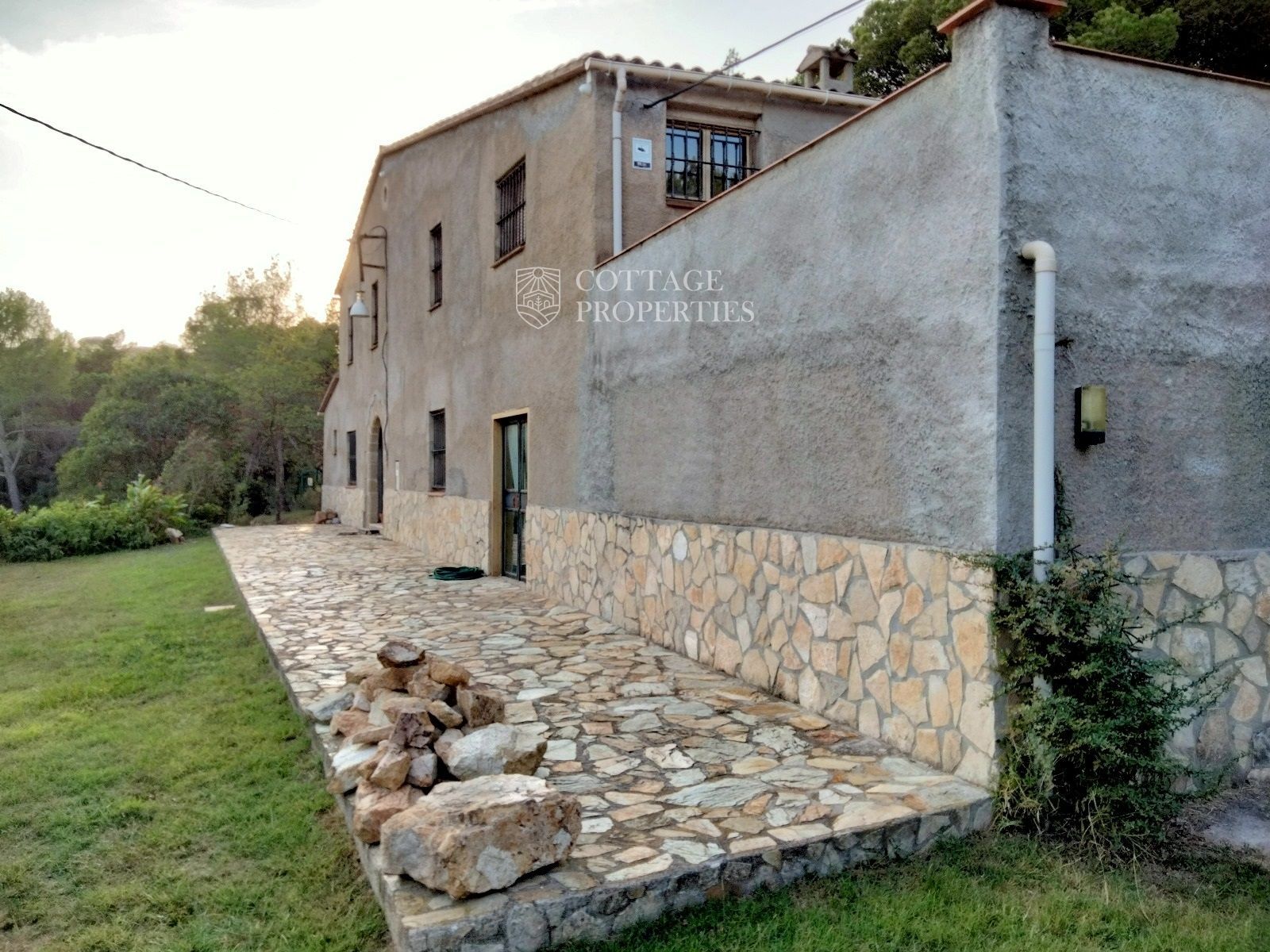 Ubicada a tan solo 5 minutos a pie del centro de la ciudad, esta masía está construida sobre una parcela de 1,3 hectáreas, mayoritariamente llana y con áreas de césped, zonas arboladas y cultivos. La superficie construida de la casa principal es de 266 m², distribuidos en dos plantas, con múltiples espacios adicionales para el máximo confort.
