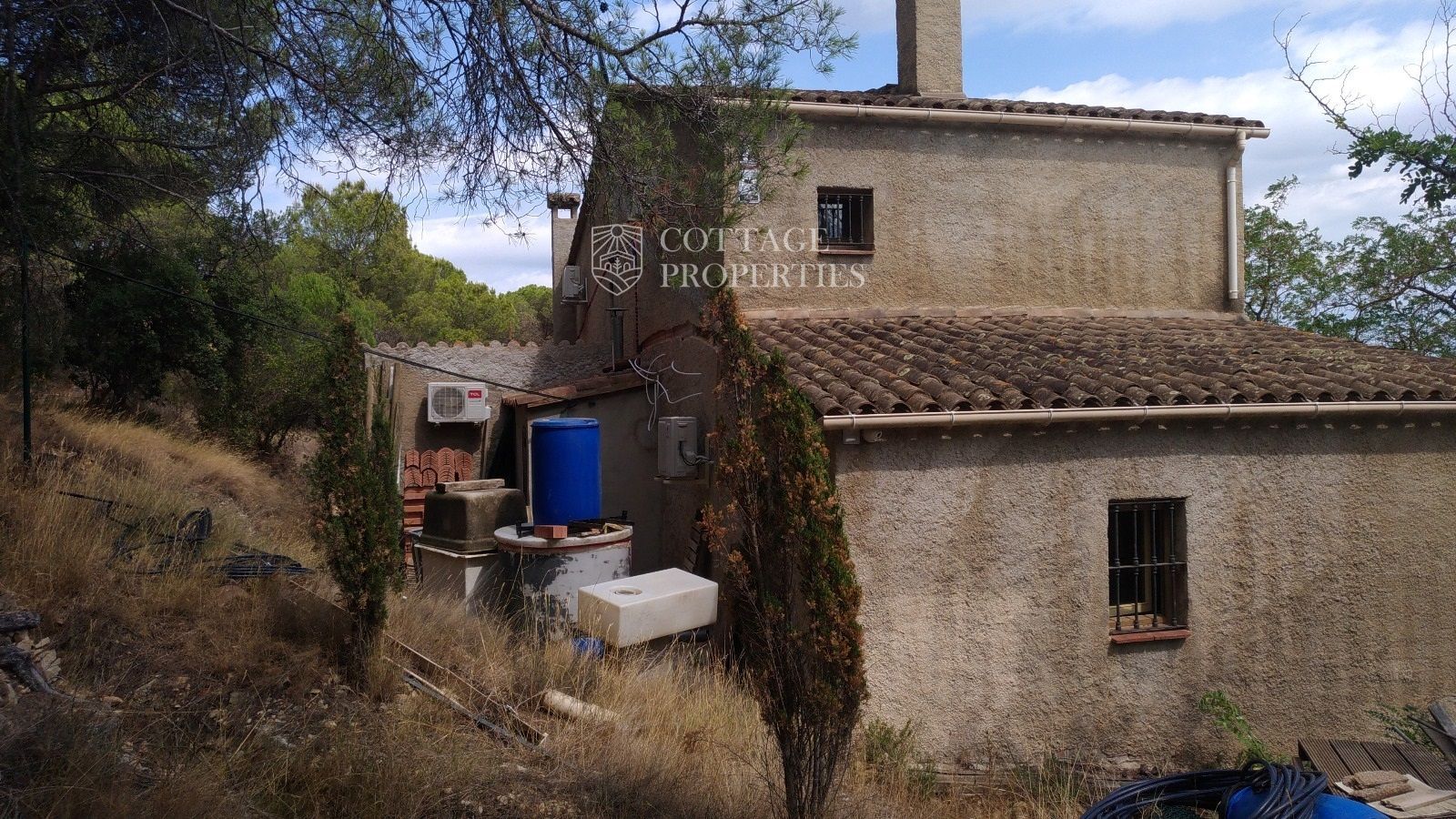 El exterior de la masía incluye un terreno completamente vallado para privacidad y seguridad, dos pozos legalizados, y una amplia terraza frente a la casa para disfrutar del sol durante todo el día. El terreno está diseñado para ofrecer múltiples posibilidades de uso, ya sea para cultivo, recreo o desarrollo paisajístico.