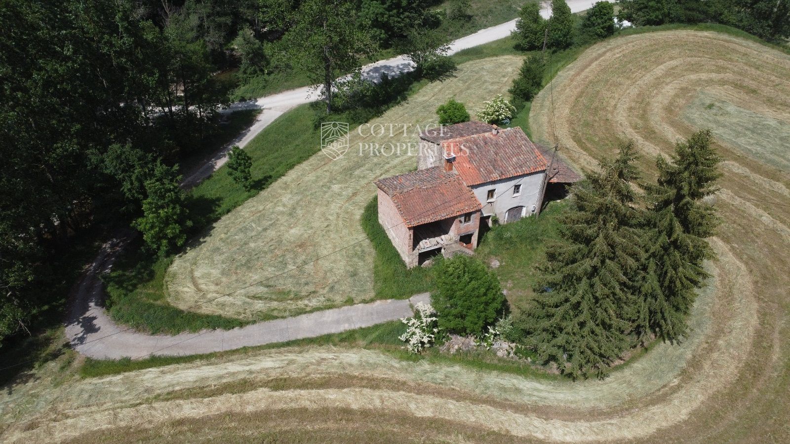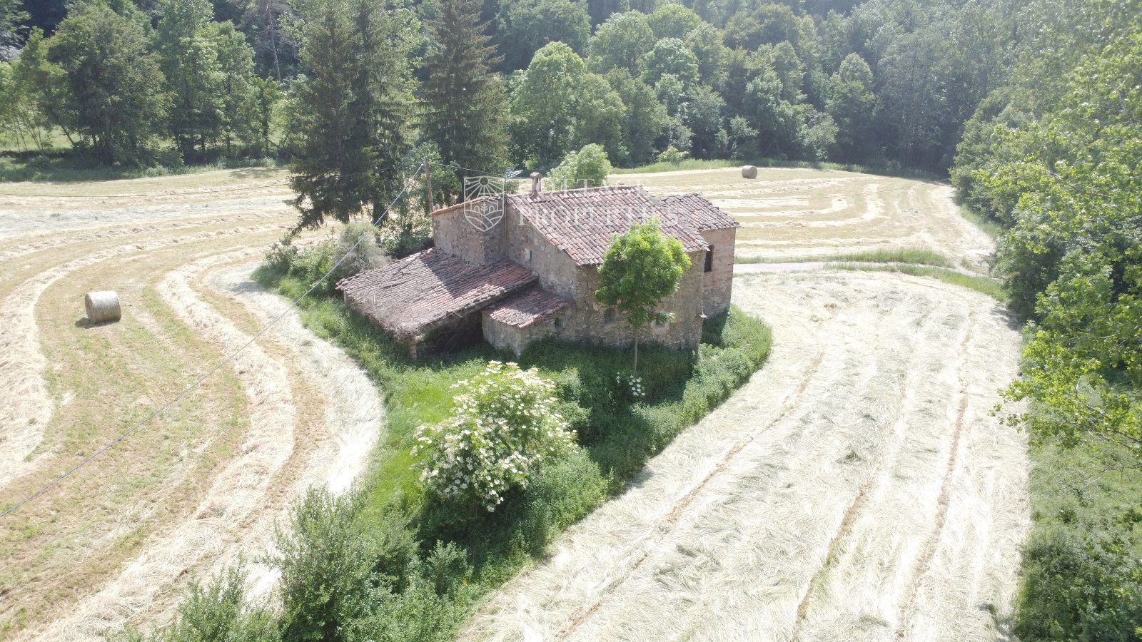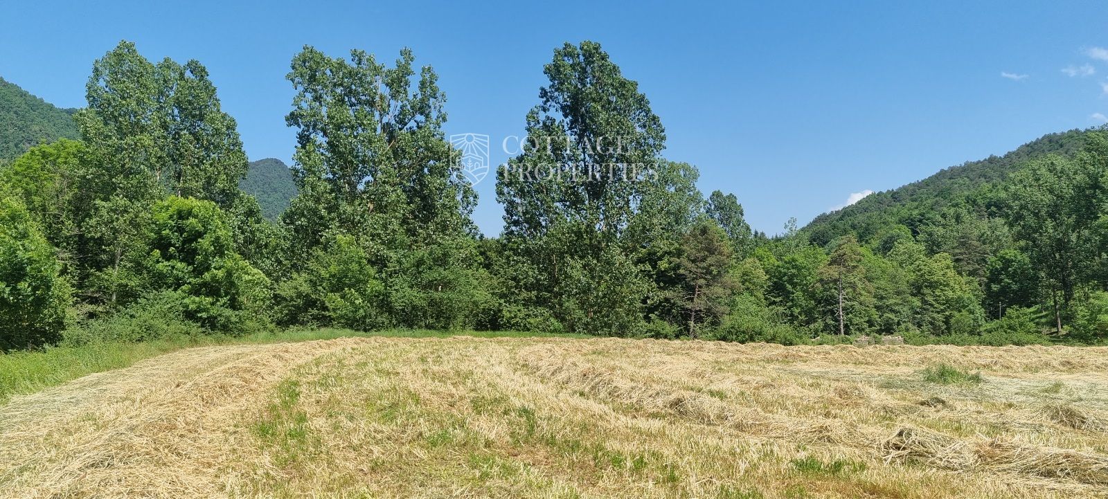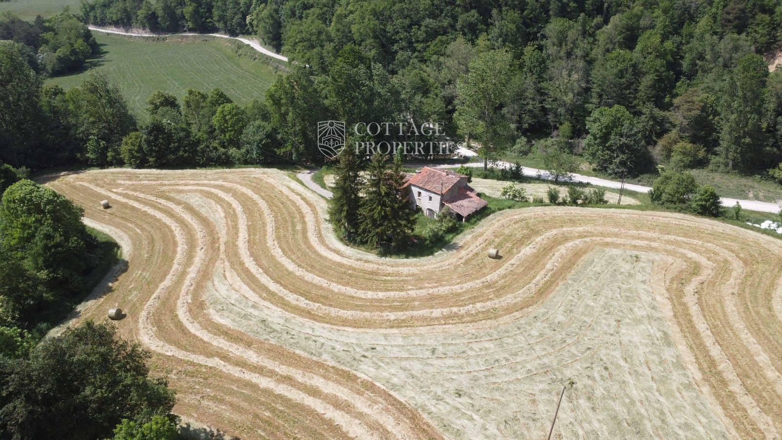 La propiedad cuenta con una masía de aproximadamente 300 m² de construcción, dividida en planta baja y planta superior. El terreno total es de 5 hectáreas, de las cuales 3,5 hectáreas están destinadas a campos. La finca dispone de agua de red, pozo y luz eléctrica. La carretera asfaltada asegura un acceso cómodo a la propiedad.
