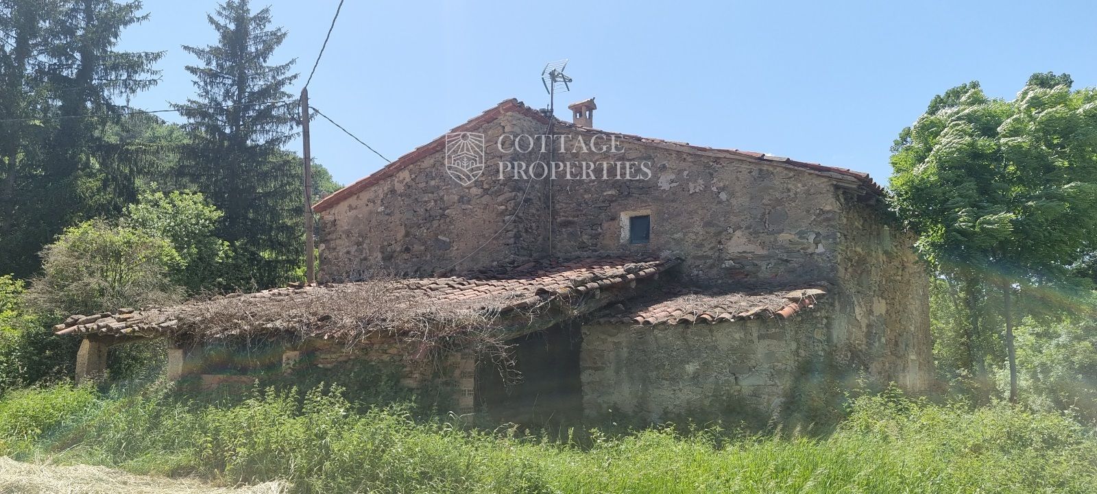 Descubre esta masía histórica para rehabilitar en venta en Ripollès, Cataluña, con 5 hectáreas de terreno, río cercano, y más.