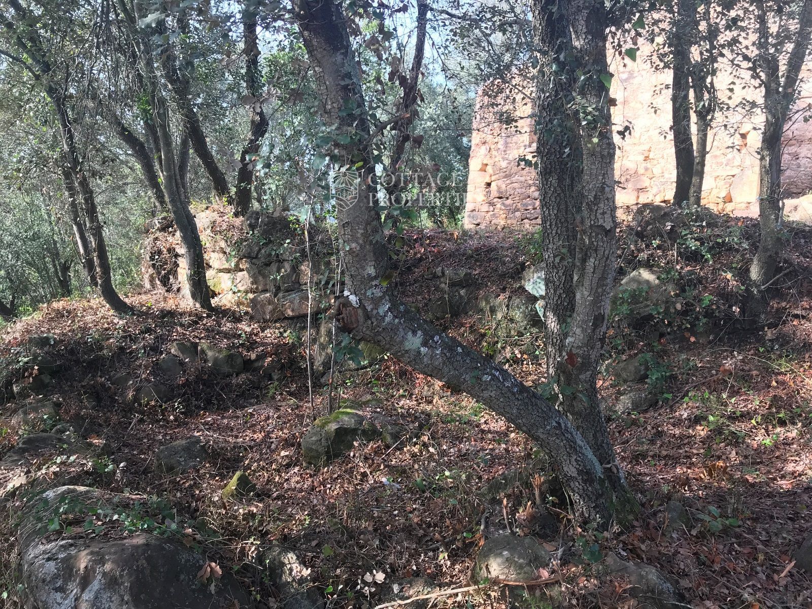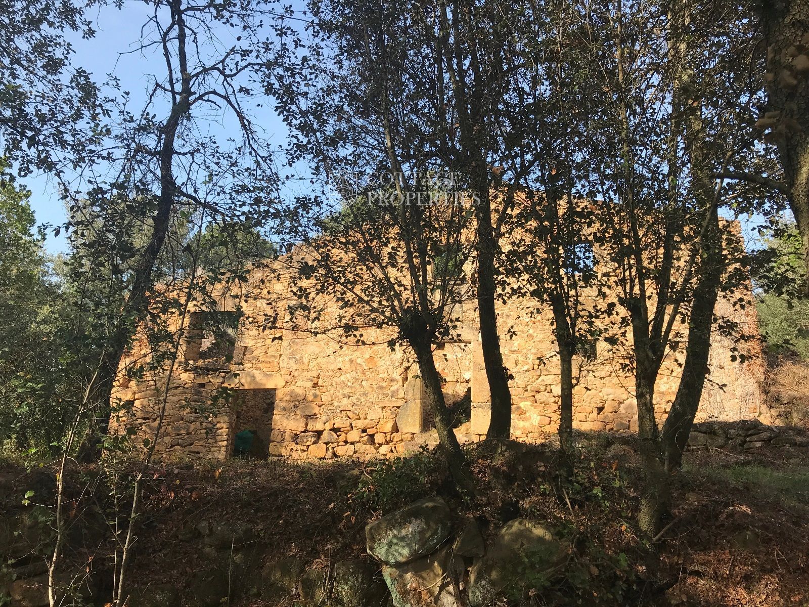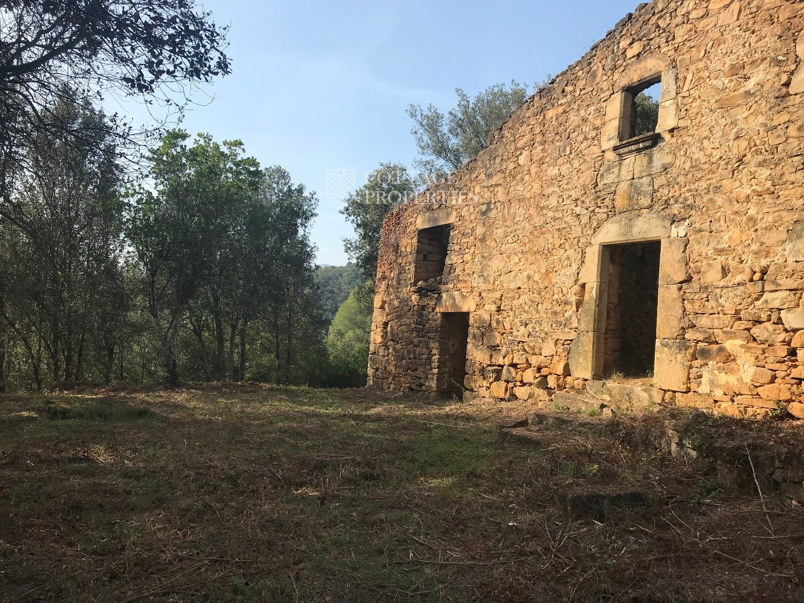 La ruina se encuentra en un terreno de 25 hectareas, con vistas al Pla de l'Estany en medio del bosque, y ofrece 200 m² para renovar según el proyecto deseado.