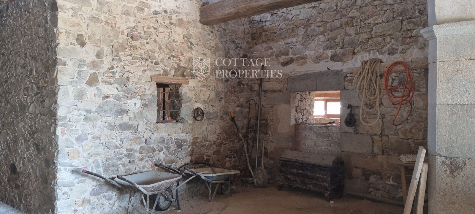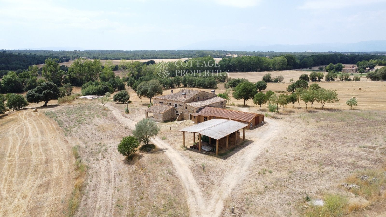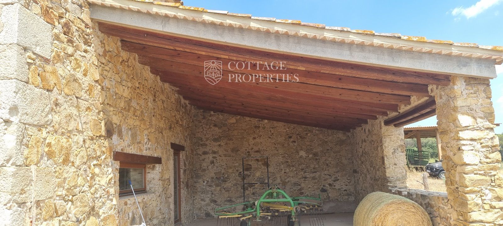 La masía cuenta con 900 m² para rehabilitar en su interior y se encuentra en un terreno de 4,5 hectáreas, con la opción de adquirir más terrenos si se desea. El inmueble incluye un anexo de aproximadamente 150 m², que puede ser convertido en una casa de invitados o en un parking. Además, dispone de cubierto para maquinaria agrícola, agua de pozo y luz eléctrica. Los acabados en la masía están realizados con madera de teca, lo que añade un toque de elegancia y durabilidad.