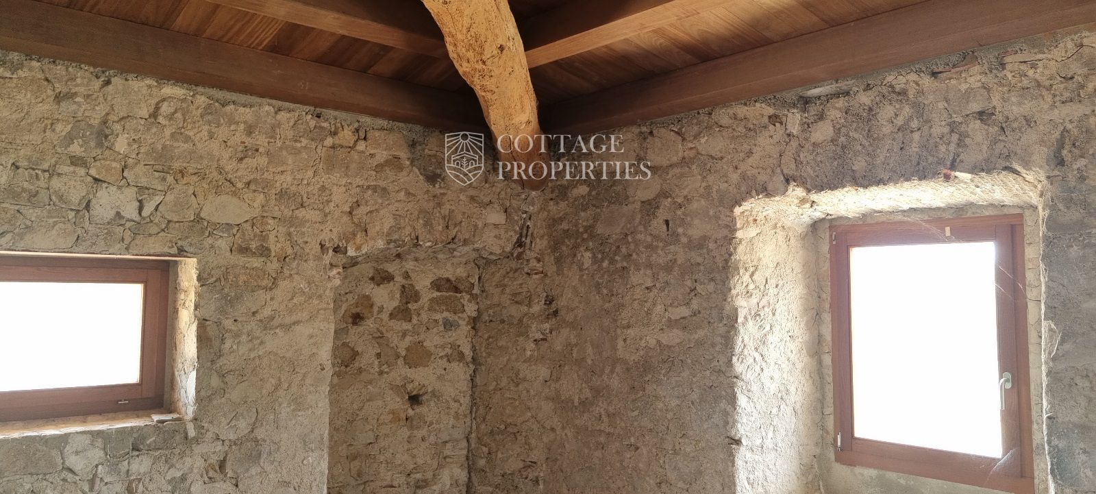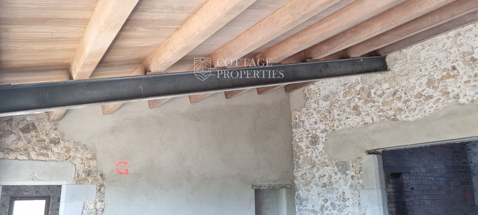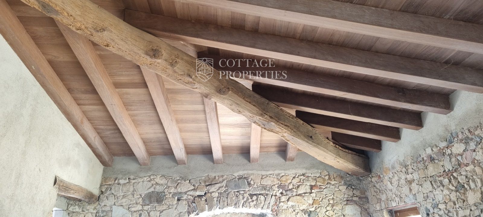 La masía cuenta con 900 m² para rehabilitar en su interior y se encuentra en un terreno de 4,5 hectáreas, con la opción de adquirir más terrenos si se desea. El inmueble incluye un anexo de aproximadamente 150 m², que puede ser convertido en una casa de invitados o en un parking. Además, dispone de cubierto para maquinaria agrícola, agua de pozo y luz eléctrica. Los acabados en la masía están realizados con madera de teca, lo que añade un toque de elegancia y durabilidad.