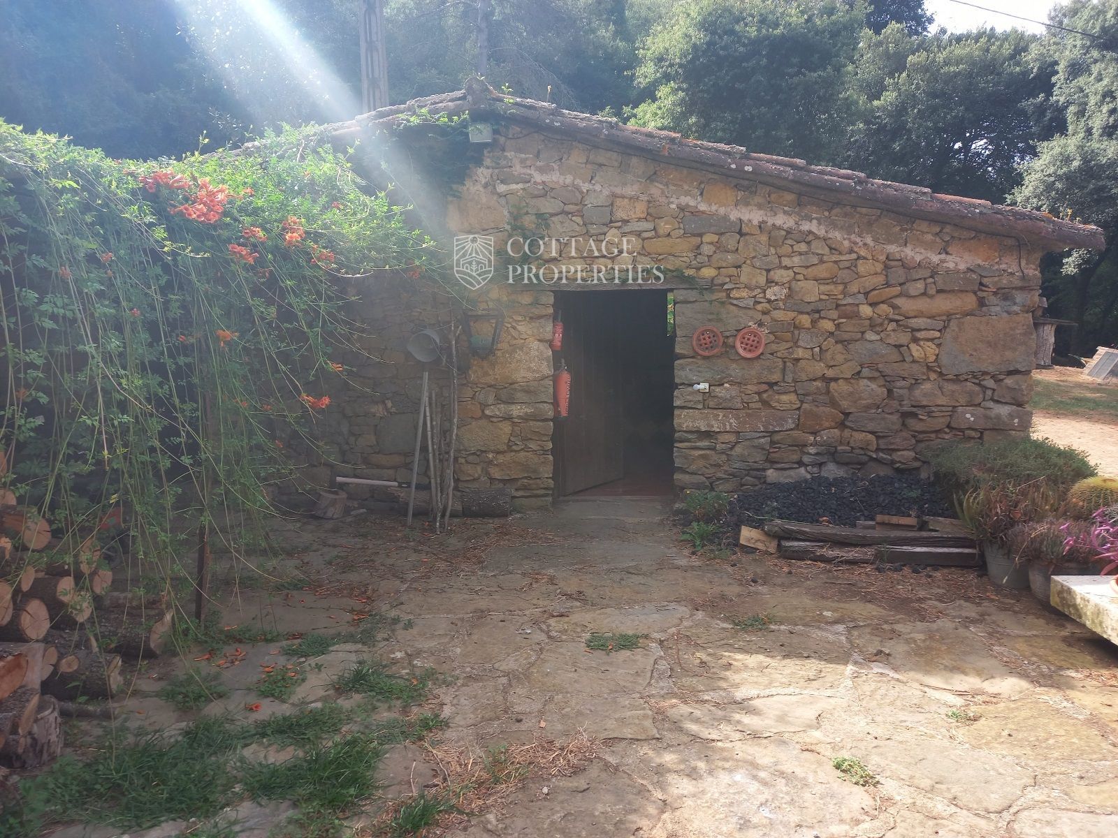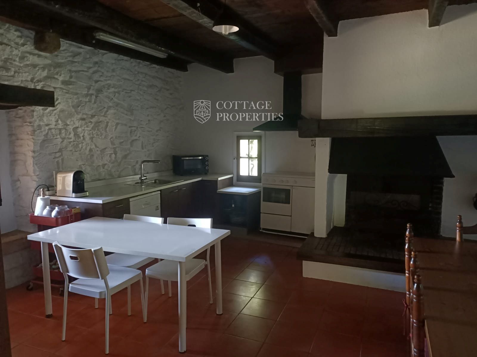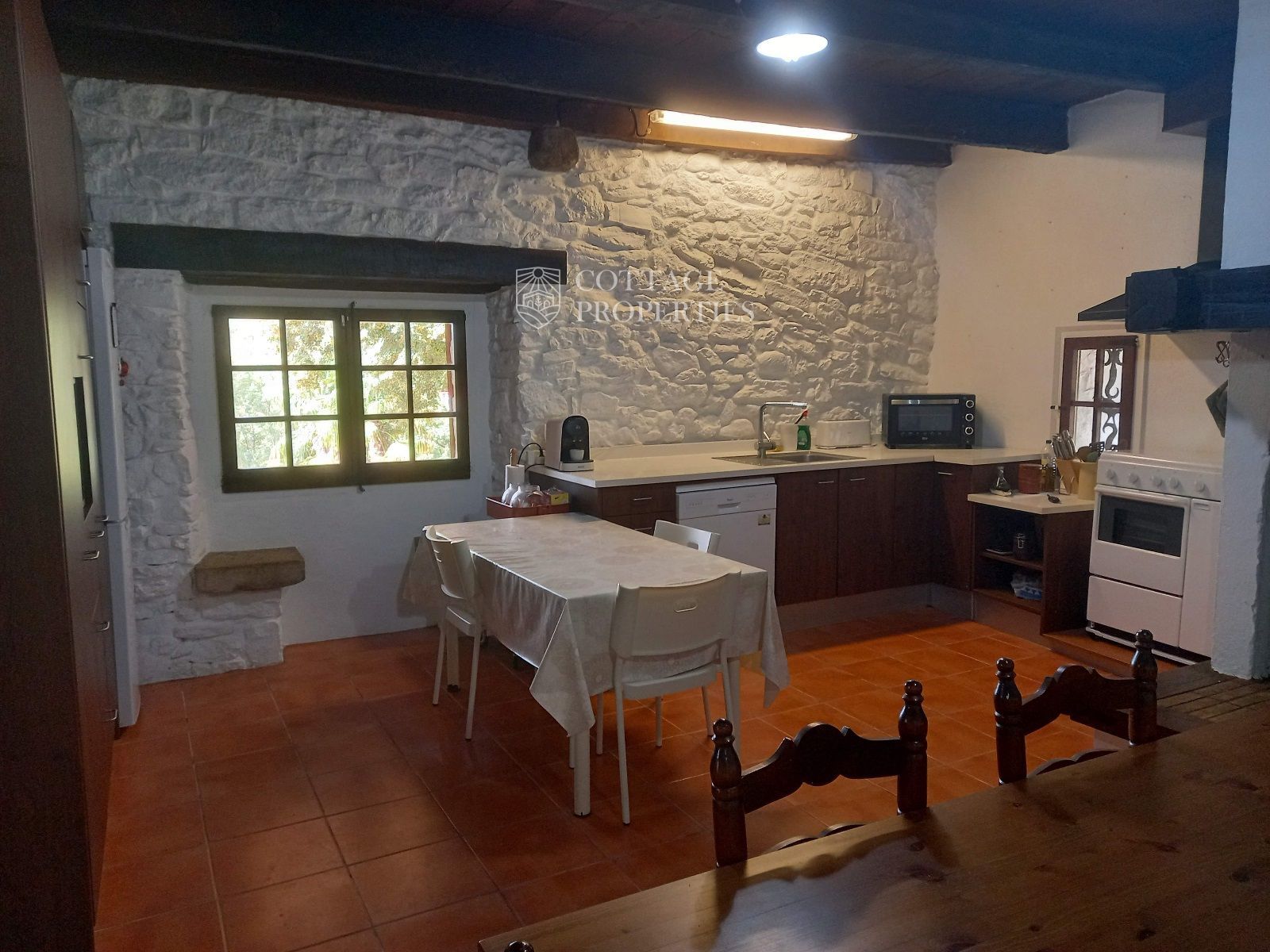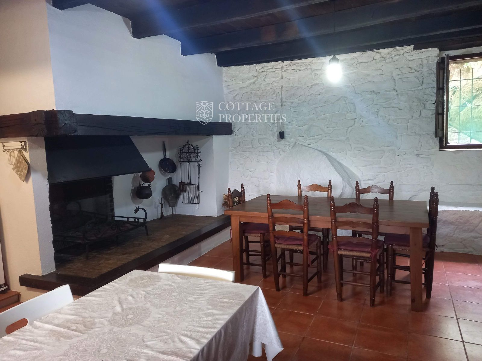 En la Planta Baja, a través del porche entramos a una preciosa sala con doble altura, que sirve como sala de estar y comedor, con chimenea y techos originales con madera de roble. La sala da acceso una amplia cocina tradicional, un aseo con ducha, una despensa y un dormitorio con acceso directo al exterior, ideal como habitación de invitados.