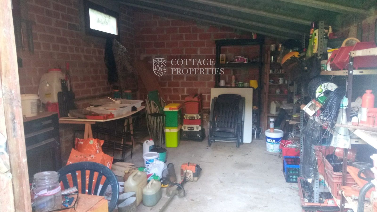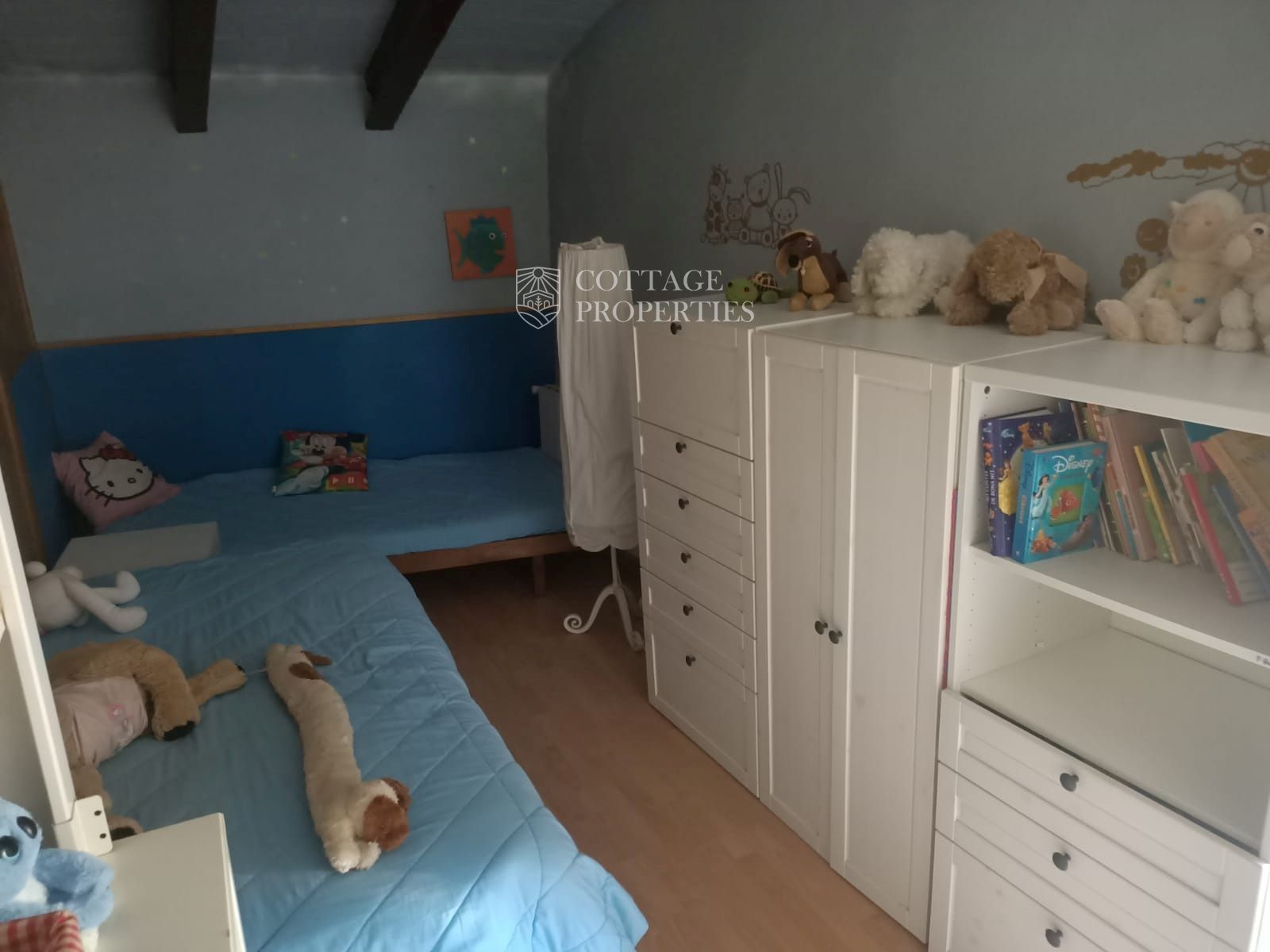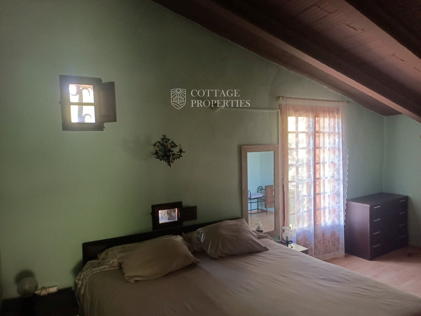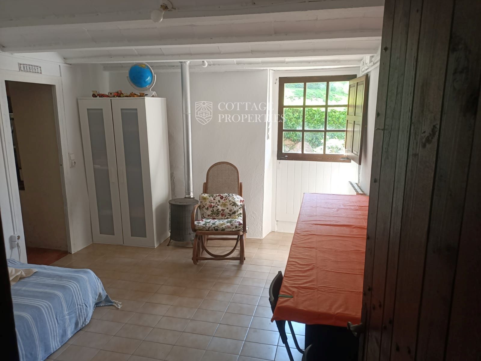 En la Planta Baja, a través del porche entramos a una preciosa sala con doble altura, que sirve como sala de estar y comedor, con chimenea y techos originales con madera de roble. La sala da acceso una amplia cocina tradicional, un aseo con ducha, una despensa y un dormitorio con acceso directo al exterior, ideal como habitación de invitados.