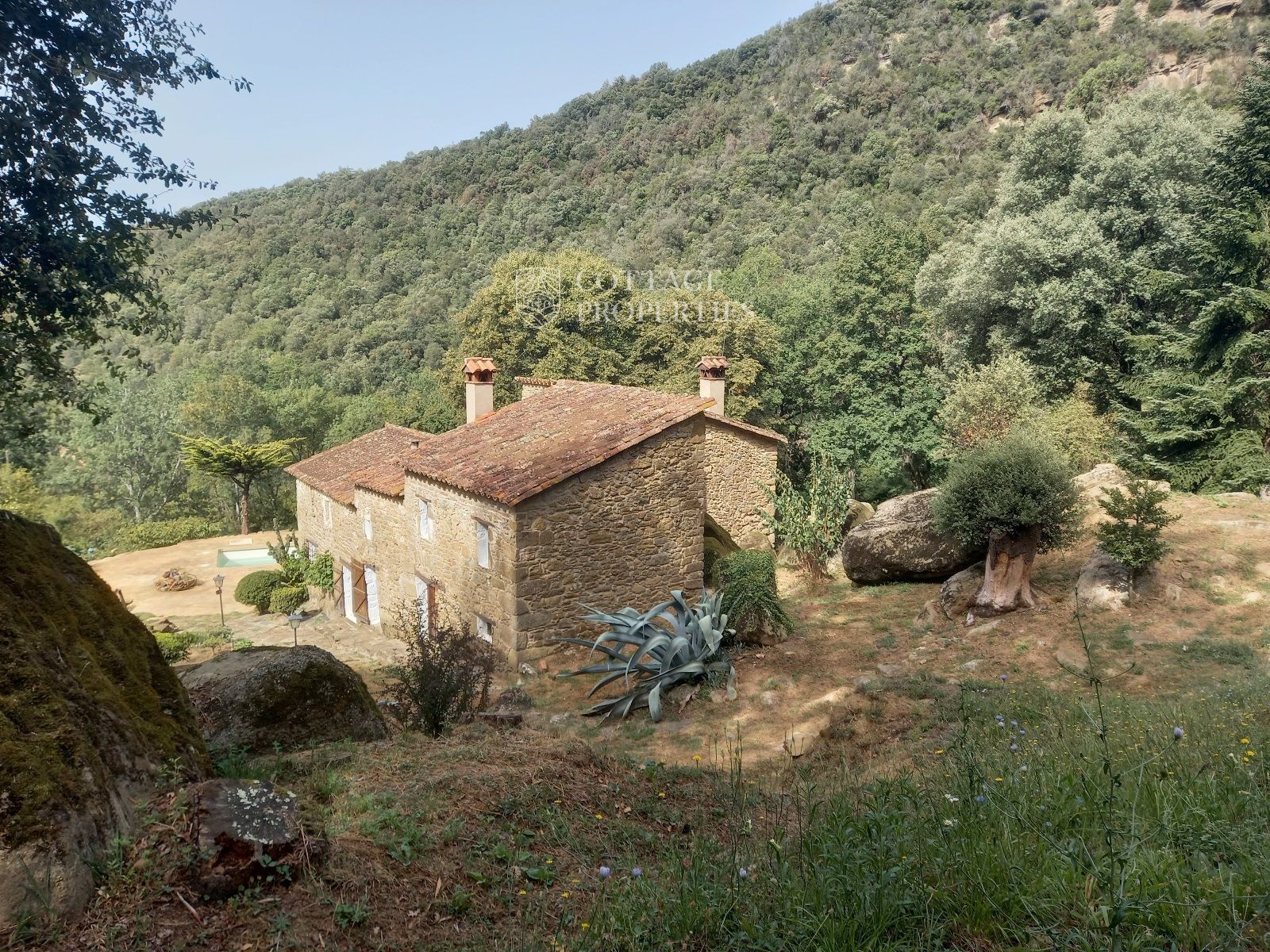 Está situada en el municipio de Sant Aniol de Finestres y en un entorno único. La finca se encuentra rodeada de 2,3 hectáreas de terreno valladas.