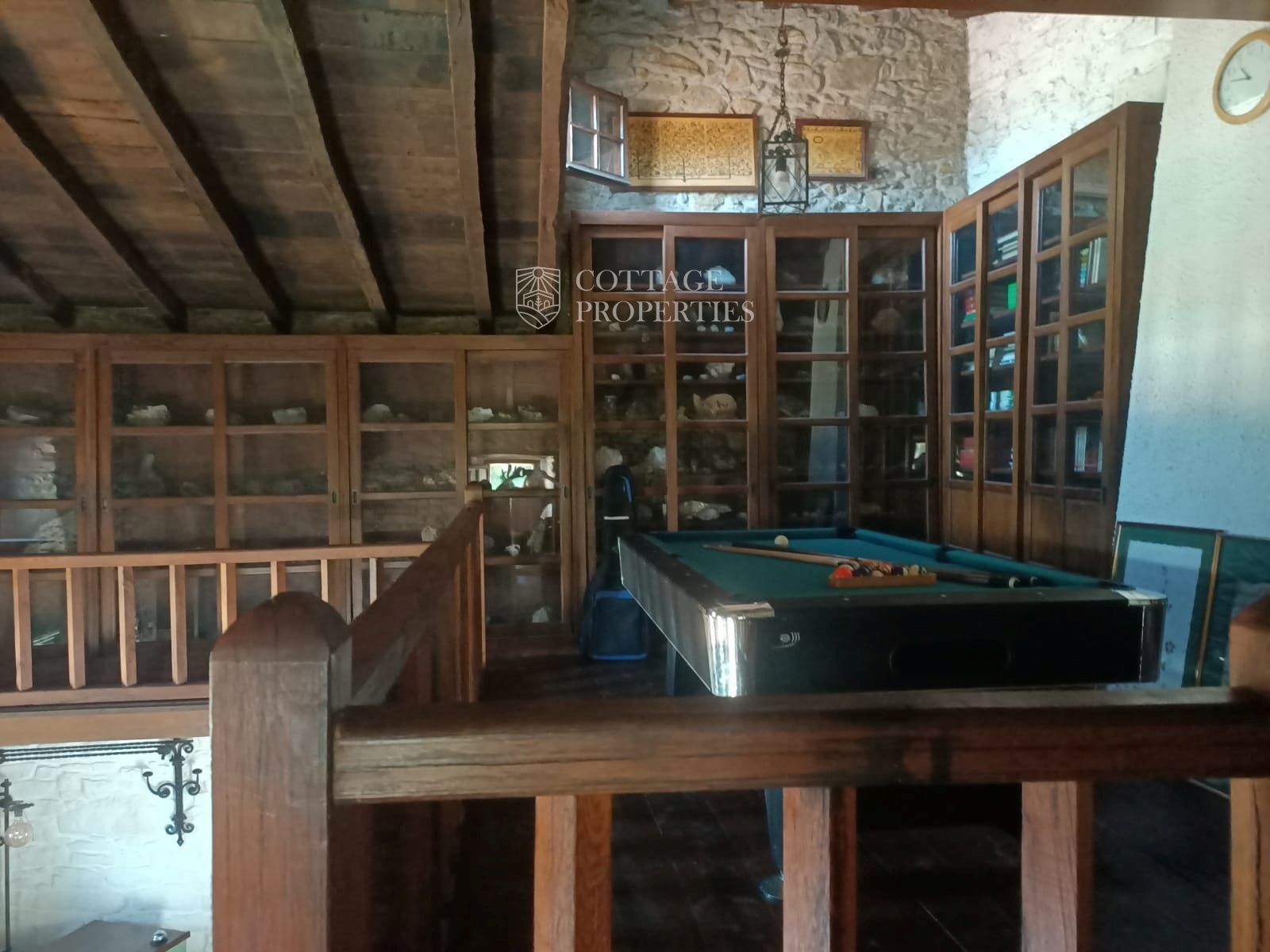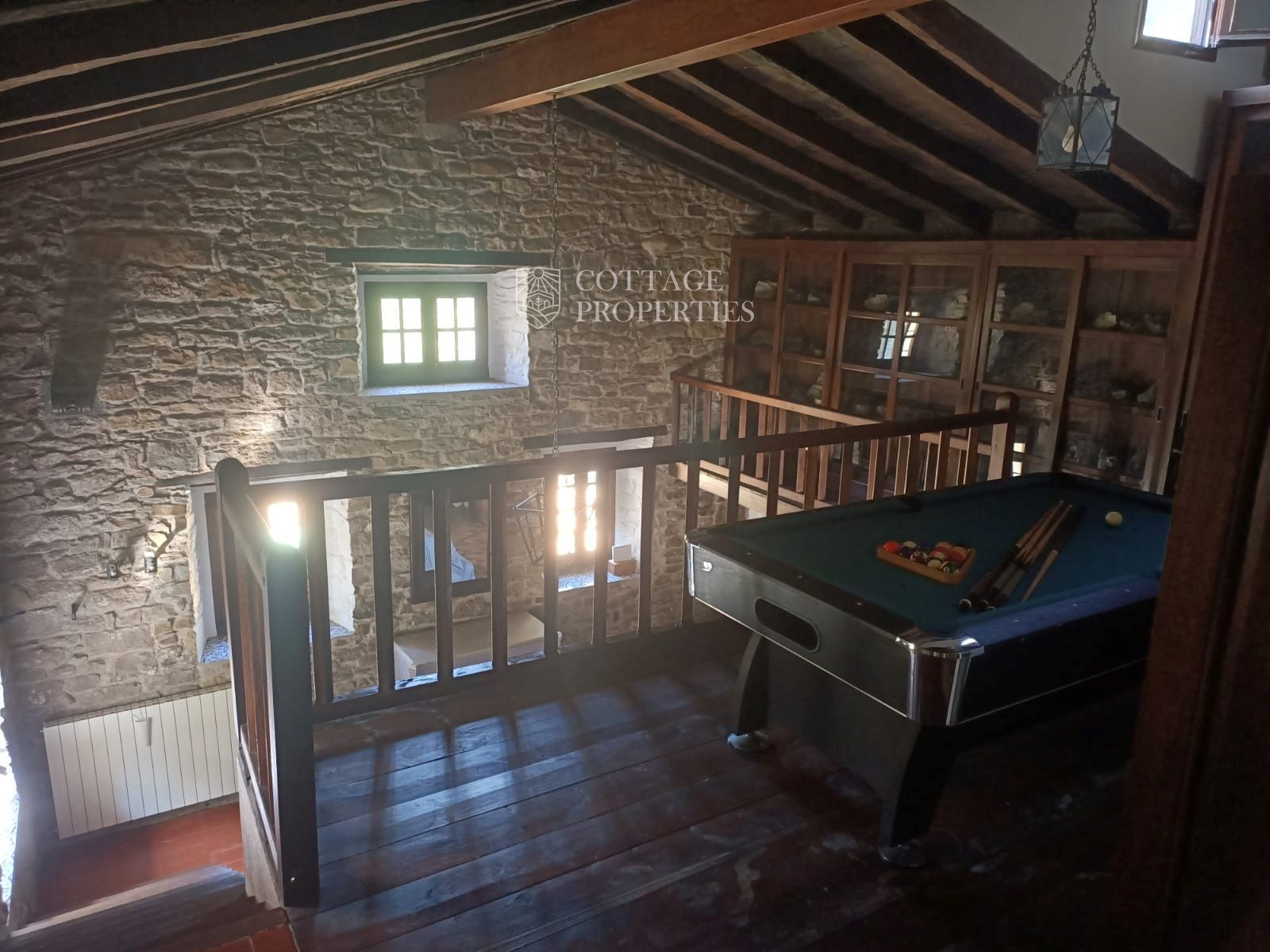 En la Primera Planta hay un altillo con vistas al comedor de abajo que actualmente sirve de zona de billar y biblioteca. En esta planta también hay tres habitaciones y un baño familiar.