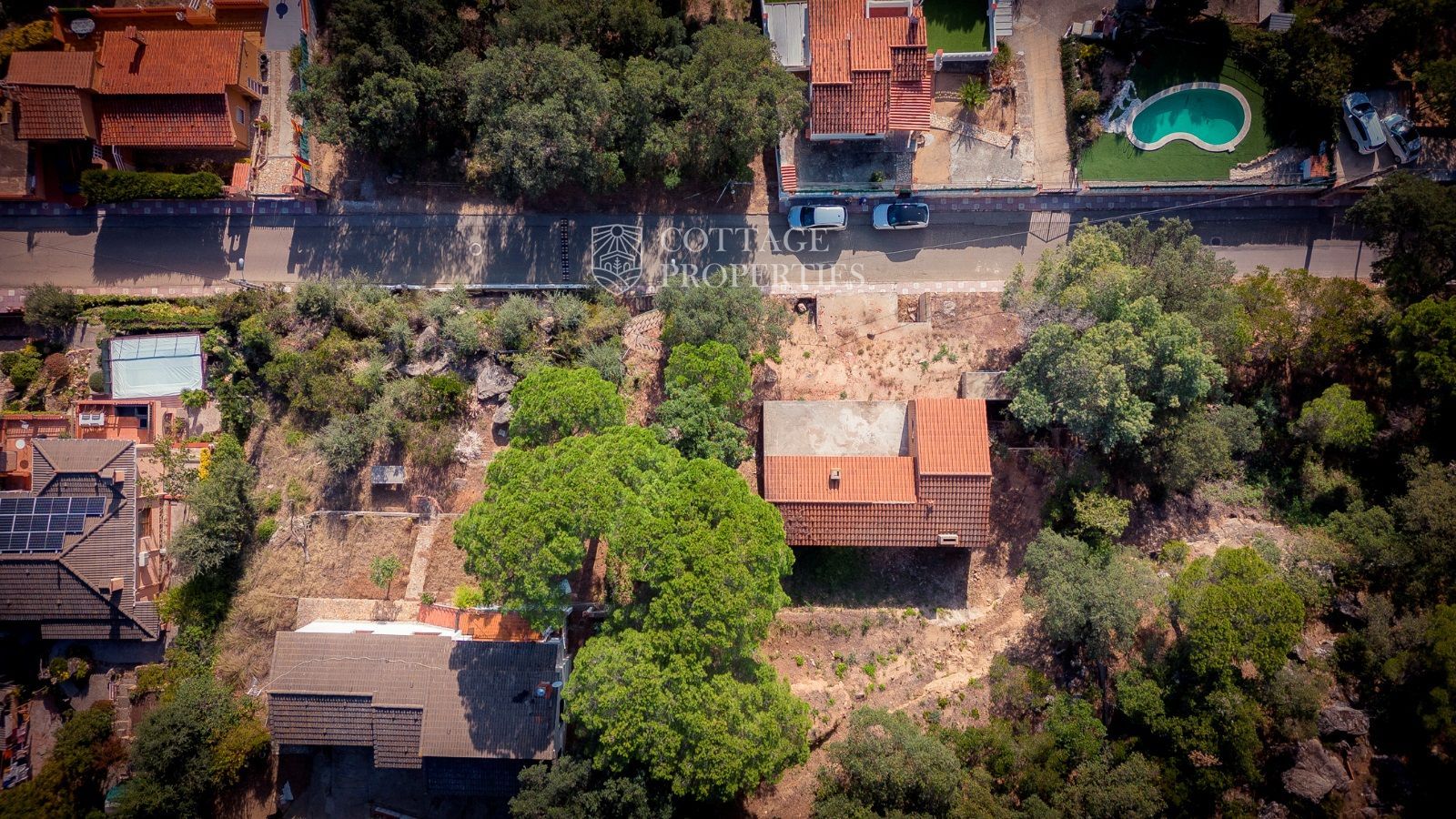El exterior de la propiedad incluye un hermoso jardín y un gran espacio al aire libre que puede ser adaptado para diversas actividades. El terreno cuenta con un pozo propio y conexión a la red pública de suministros de agua, luz y gas, garantizando todas las comodidades modernas mientras se disfruta del entorno natural.