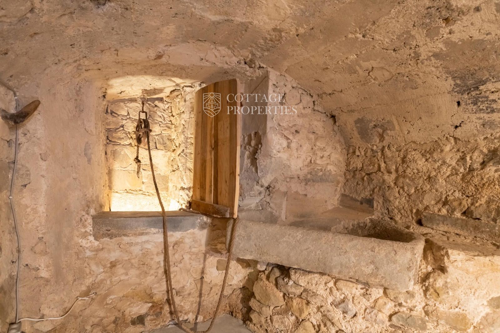 À l'intérieur, des espaces du XVIIIe siècle ont été préservés, notamment une bibliothèque, des chambres, un mobilier traditionnel et une chapelle dédiée à Saint-Michel Archange. Elle comprend également une ancienne trulle avec de grands bassins en pierre et un pressoir à vin d'origine. La ferme comprend un hall d'entrée accueillant, de spacieuses pièces seigneuriales, une cuisine traditionnelle, plusieurs salles polyvalentes et des chambres aux détails d'origine. On accède à la chapelle depuis l'intérieur de la maison, ainsi que par une porte extérieure portant une inscription datant de 1762.