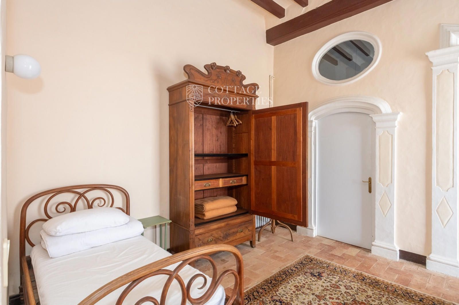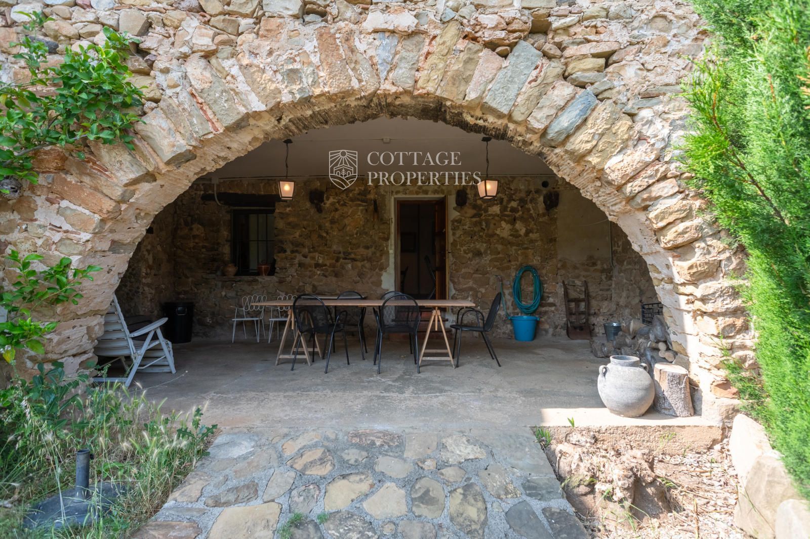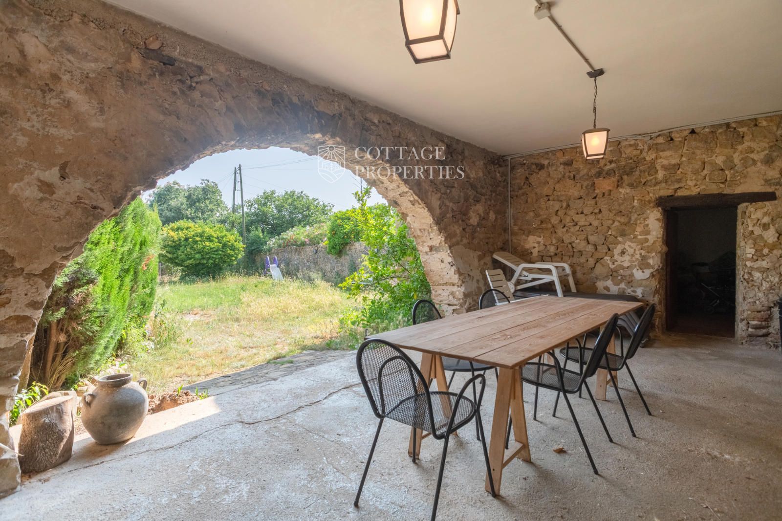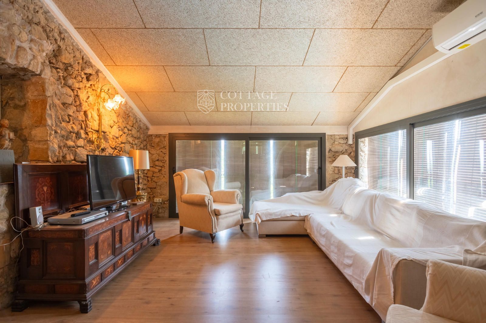 Bienvenue dans cette maison de campagne située à Maià de Montcal, dans la région de La Garrotxa, à Gérone. Cette propriété rustique offre une vue panoramique sur la plaine de l'Empordà et les Pyrénées orientales, offrant un cadre paisible et propice à la communion avec la nature. Avec son caractère historique, son architecture majestueuse et ses espaces dédiés au bien-être ou aux retraites paisibles, elle est idéale pour ceux qui recherchent une maison pleine d'âme, de beauté et d'infinies possibilités. Située à seulement 10 minutes de Besalú et 35 minutes de Gérone, cette maison de campagne a été construite au XVIIIe siècle sur un grand terrain paysager composé de zones cultivées et d'une forêt méditerranéenne. Déclarée Bien Culturel d'Intérêt Local, sa construction se distingue par ses murs en pierre de taille sculptée, ses toits à quatre pans, ses avant-toits décorés de motifs géométriques et sa façade nord alliant sobriété et élégance.