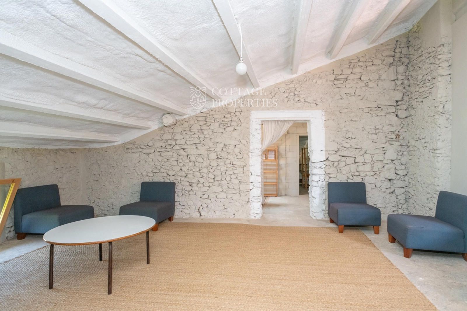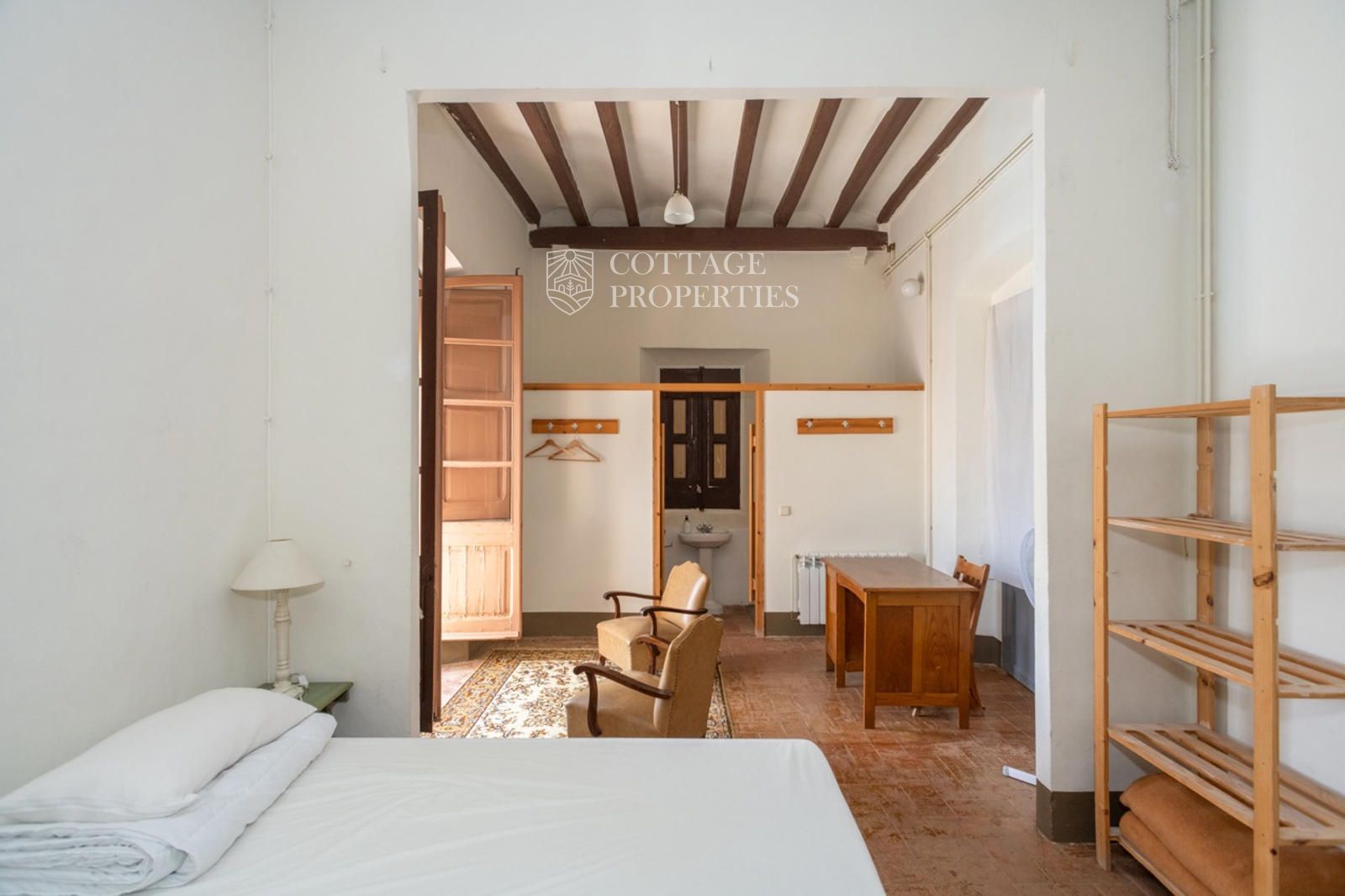 Les différents étages sont reliés par des escaliers intérieurs, et les baies offrent des espaces ouverts avec possibilité d'agrandissement. À l'extérieur, une cour centrale avec un jardin, idéal pour créer des espaces de détente ou des thérapies en plein air, est à découvrir.L'extérieur comprend un magnifique jardin arboré d'arbres indigènes et de végétation méditerranéenne, ainsi que divers espaces de détente répartis autour de la maison principale. Parmi les éléments uniques préservés, on trouve de grands bassins en pierre, d'anciens outils agricoles et une atmosphère propice à la contemplation, au repli sur soi et à la reconnexion. C'est une oasis de silence, d'authenticité et de beauté naturelle, idéale pour une vie riche de sens ou un projet professionnel.