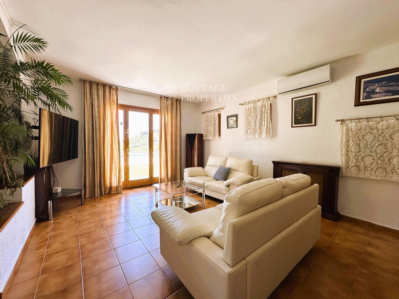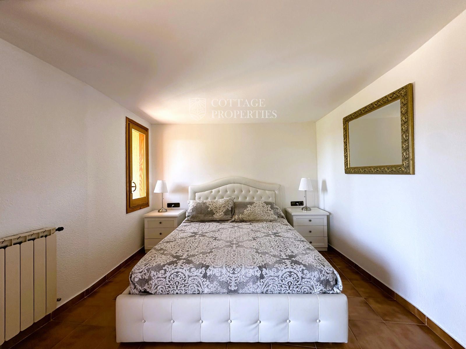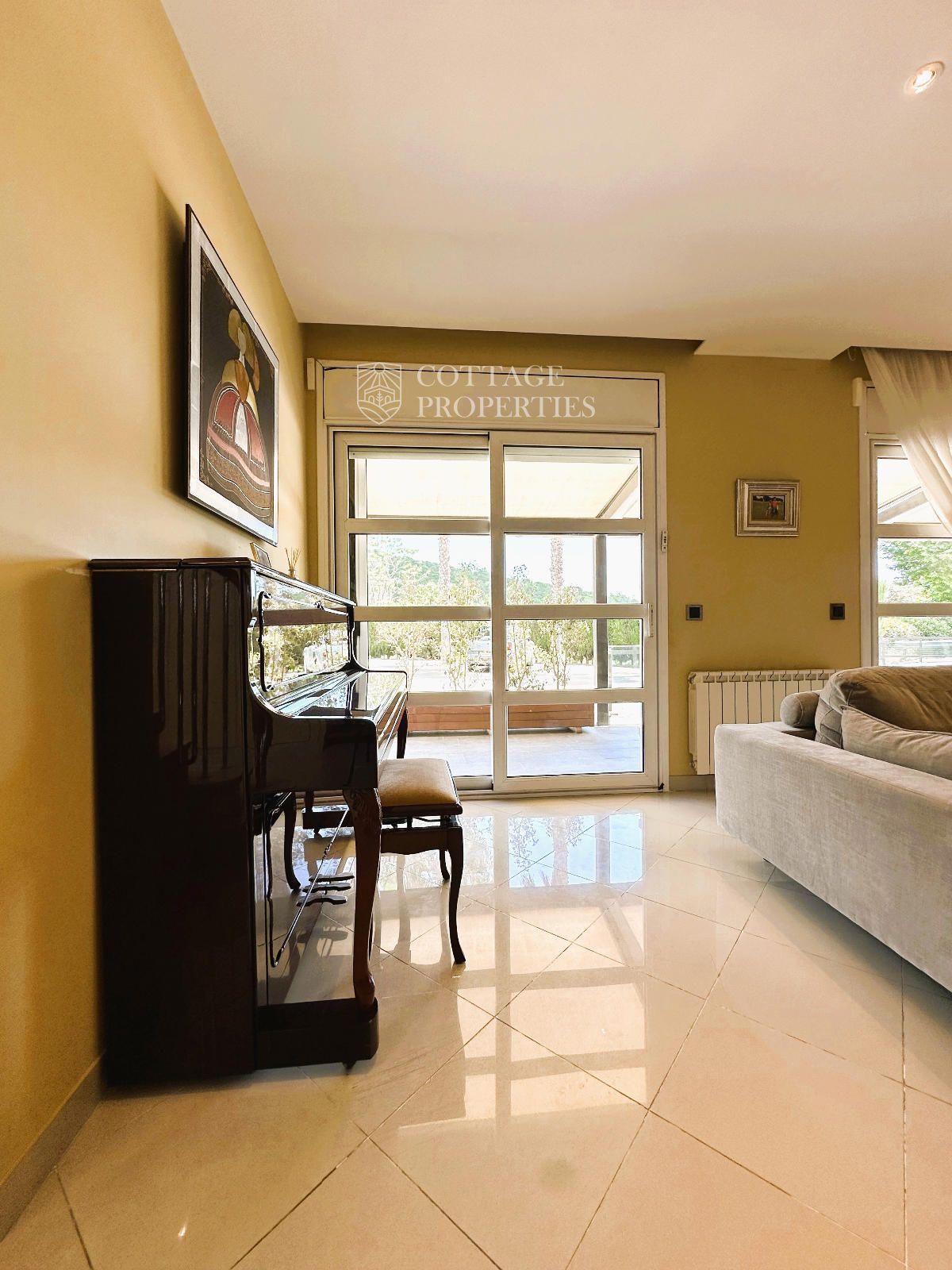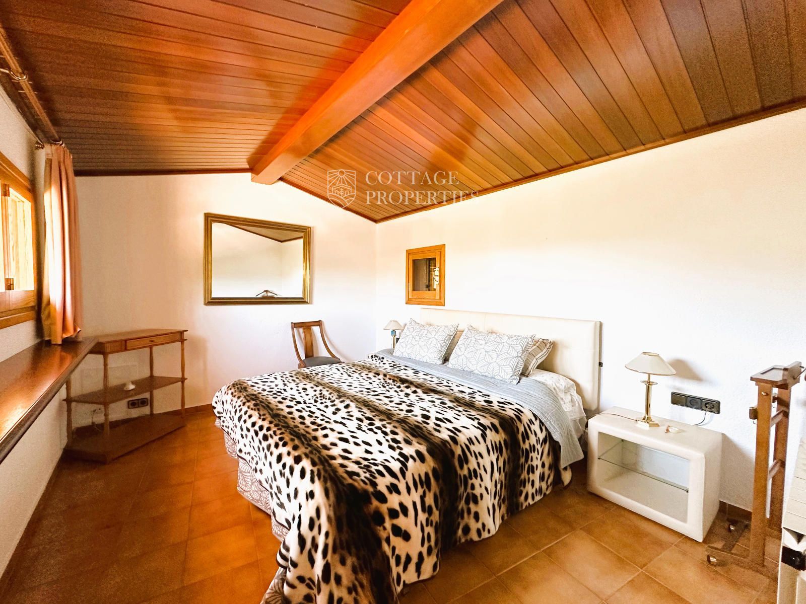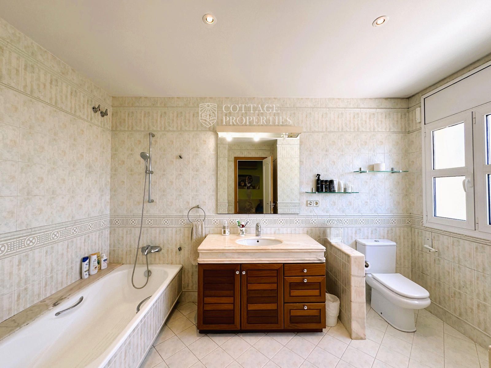 L'extérieur dispose d'un magnifique jardin paysager avec de vastes pelouses, différentes terrasses tirant parti de la topographie naturelle et des espaces de loisirs parfaitement intégrés à l'environnement. La piscine privée, entourée de végétation et d'un espace barbecue, crée une atmosphère de paix et de beauté naturelle.