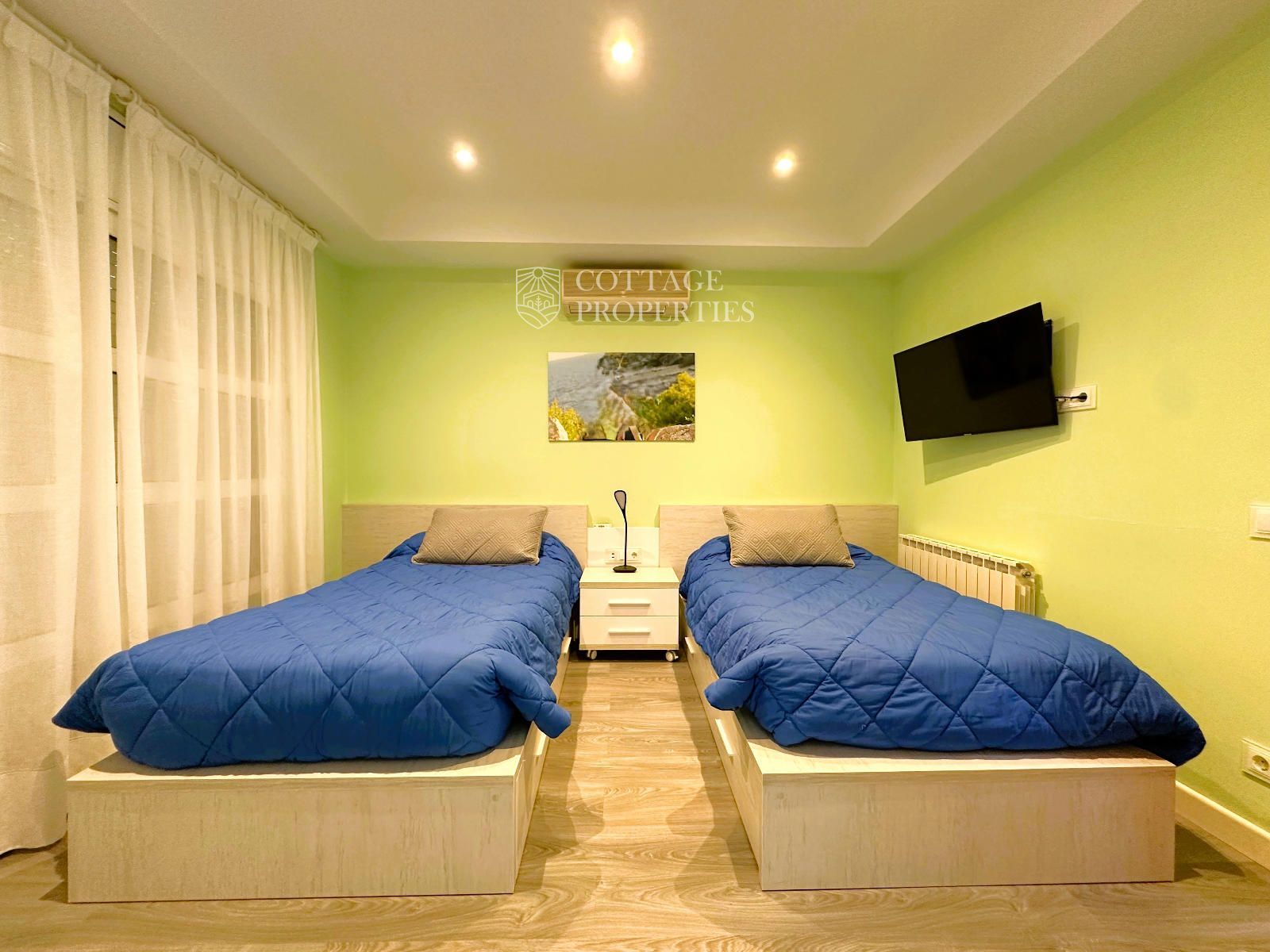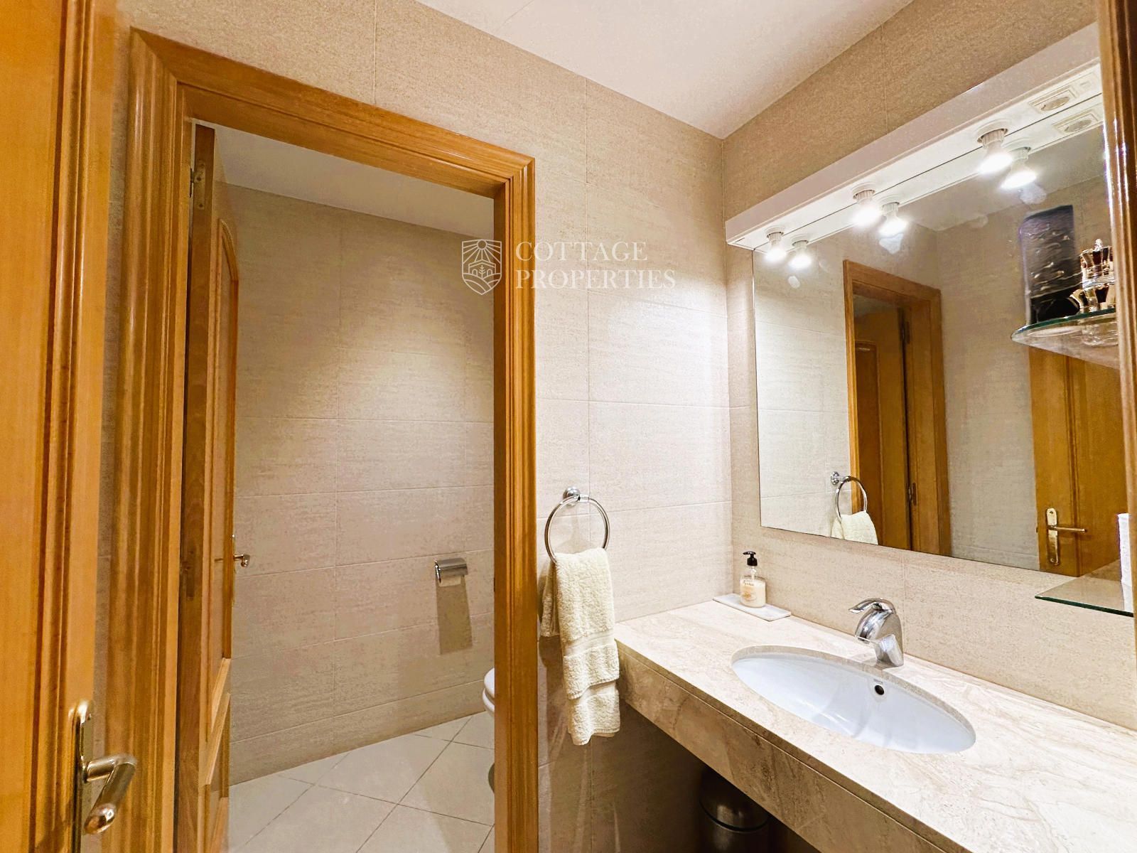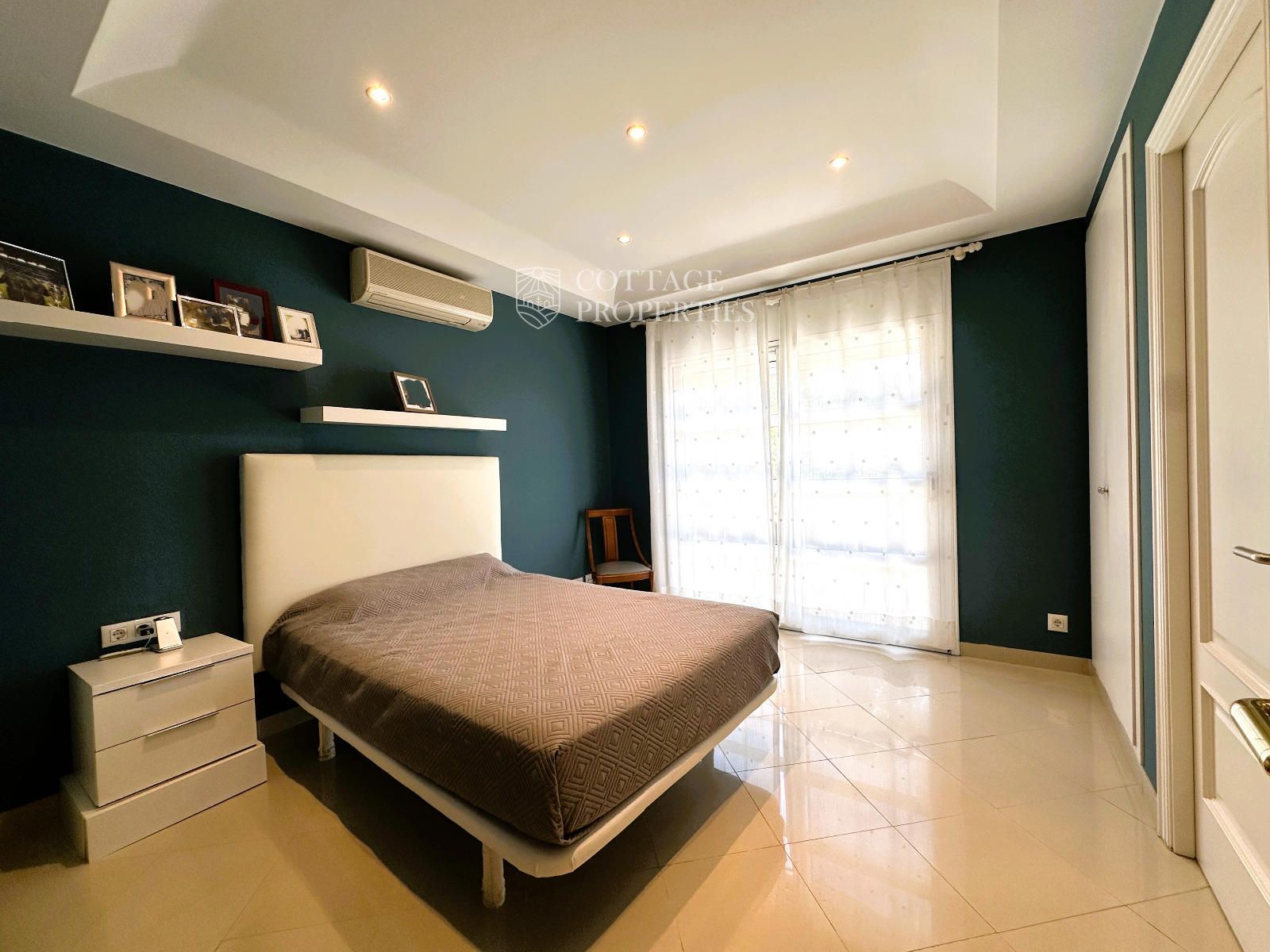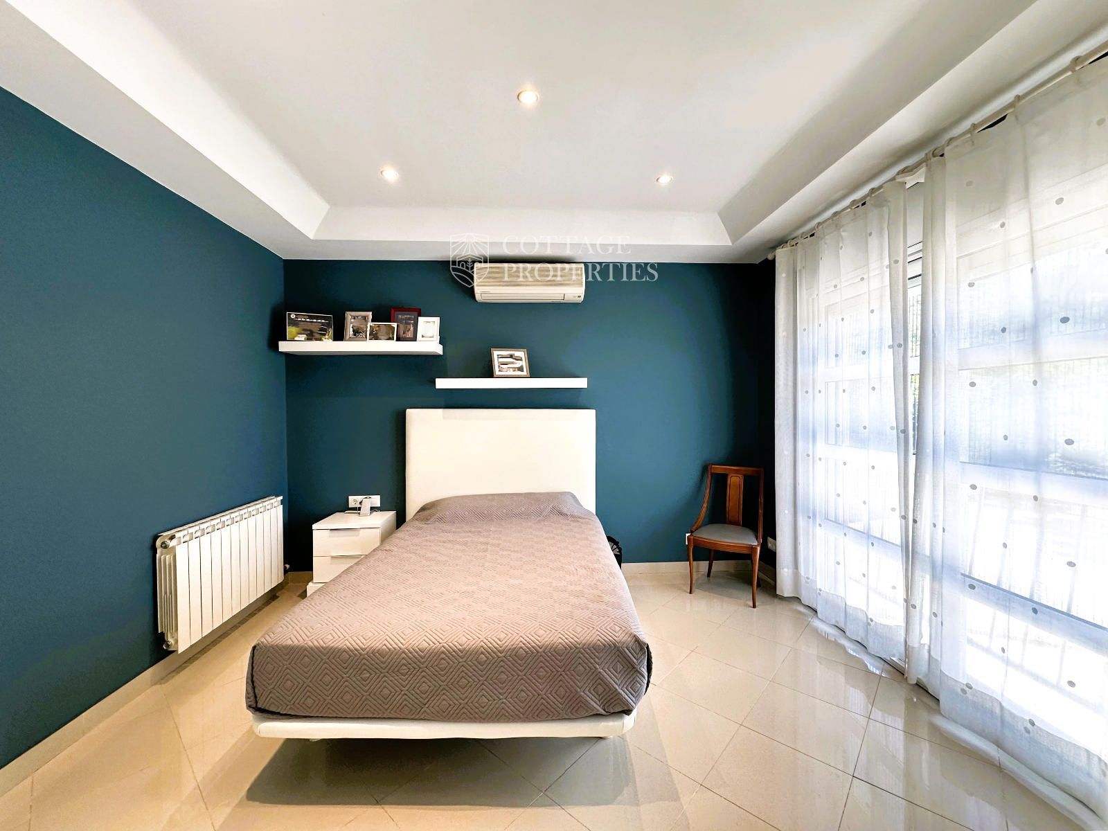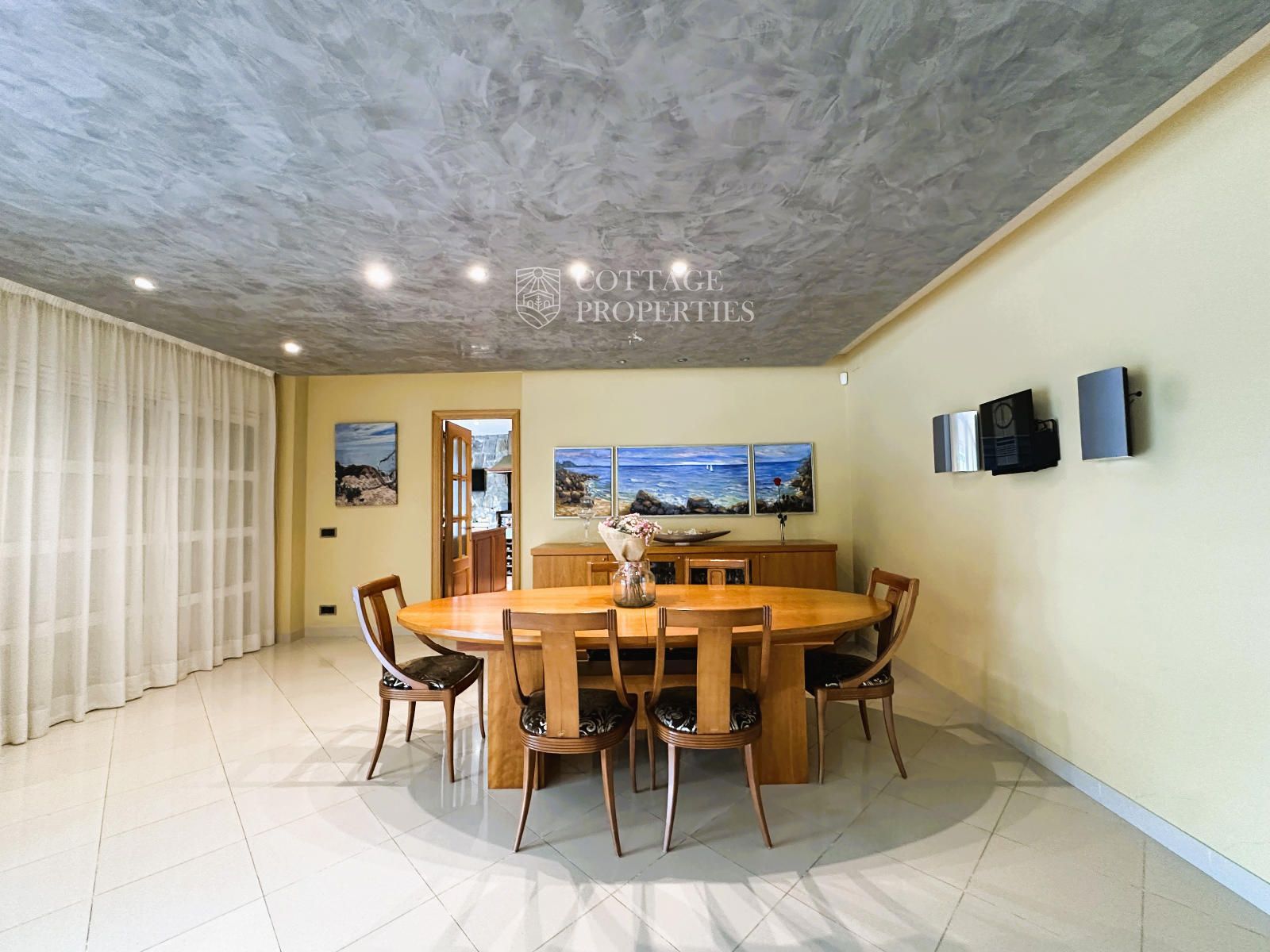La seconde résidence, rénovée et en excellent état, offre un grand salon-salle à manger avec baies vitrées du sol au plafond et accès direct au jardin, une cuisine spacieuse et lumineuse, une bibliothèque, une salle de sport, une salle de bain supplémentaire et 4 chambres en suite, ainsi qu'une buanderie et un garage indépendant.