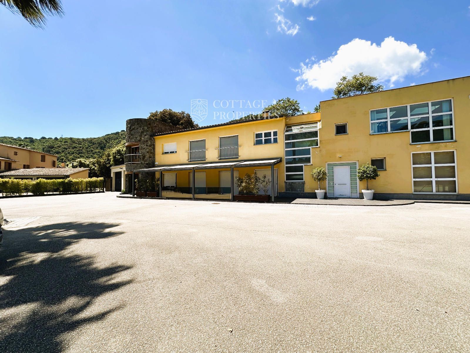 Située à seulement 10 minutes du port d'Arenys de Mar et à moins de 45 minutes de Barcelone, cette spectaculaire propriété a été construite en 1993 sur un vaste terrain de 60 108 m², principalement paysagé et adapté à un usage équestre et agricole, et dispose d'une surface construite de 8 343 m² répartie sur deux niveaux principaux.