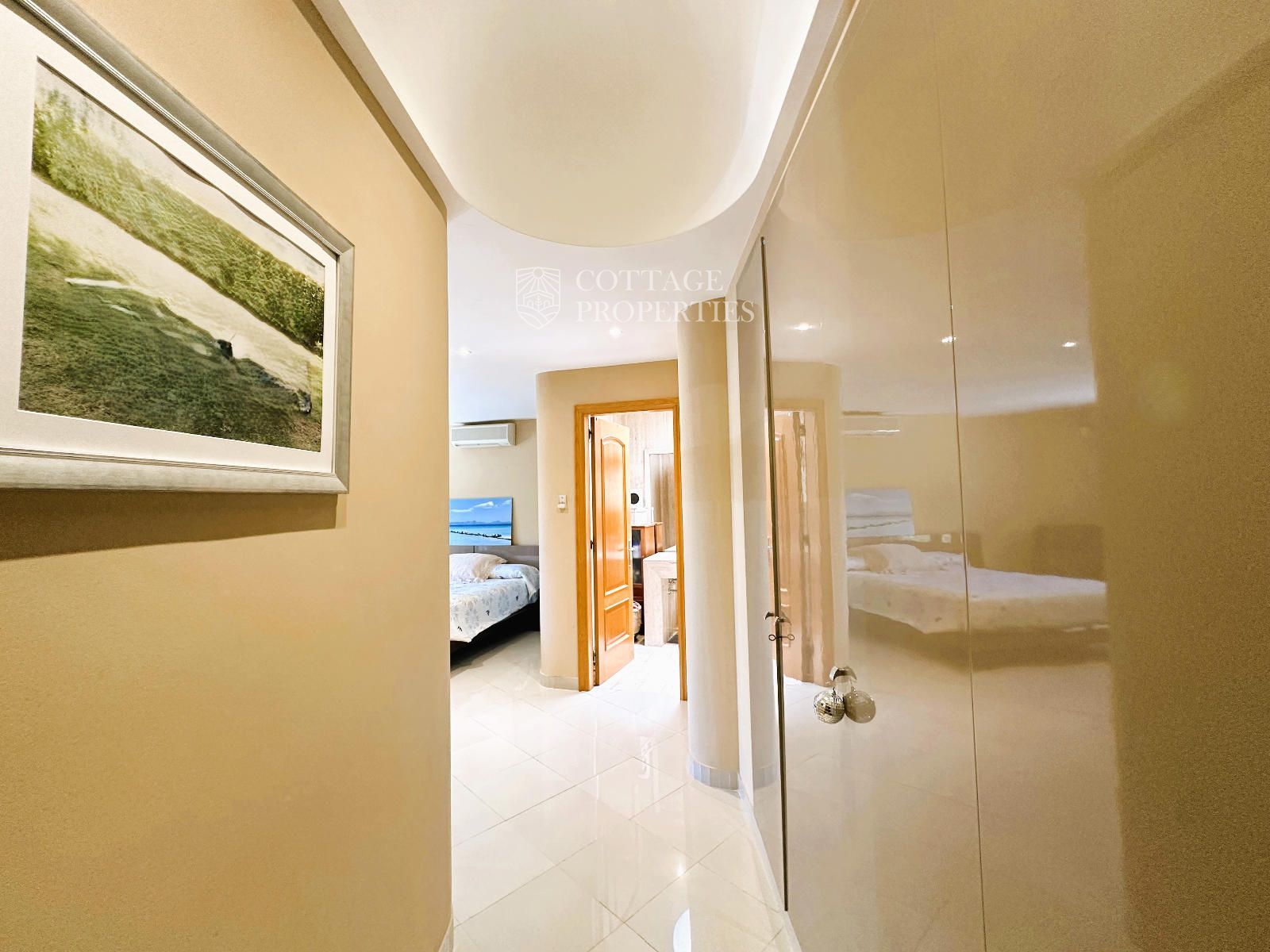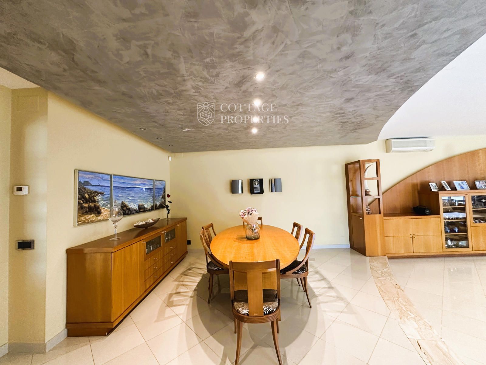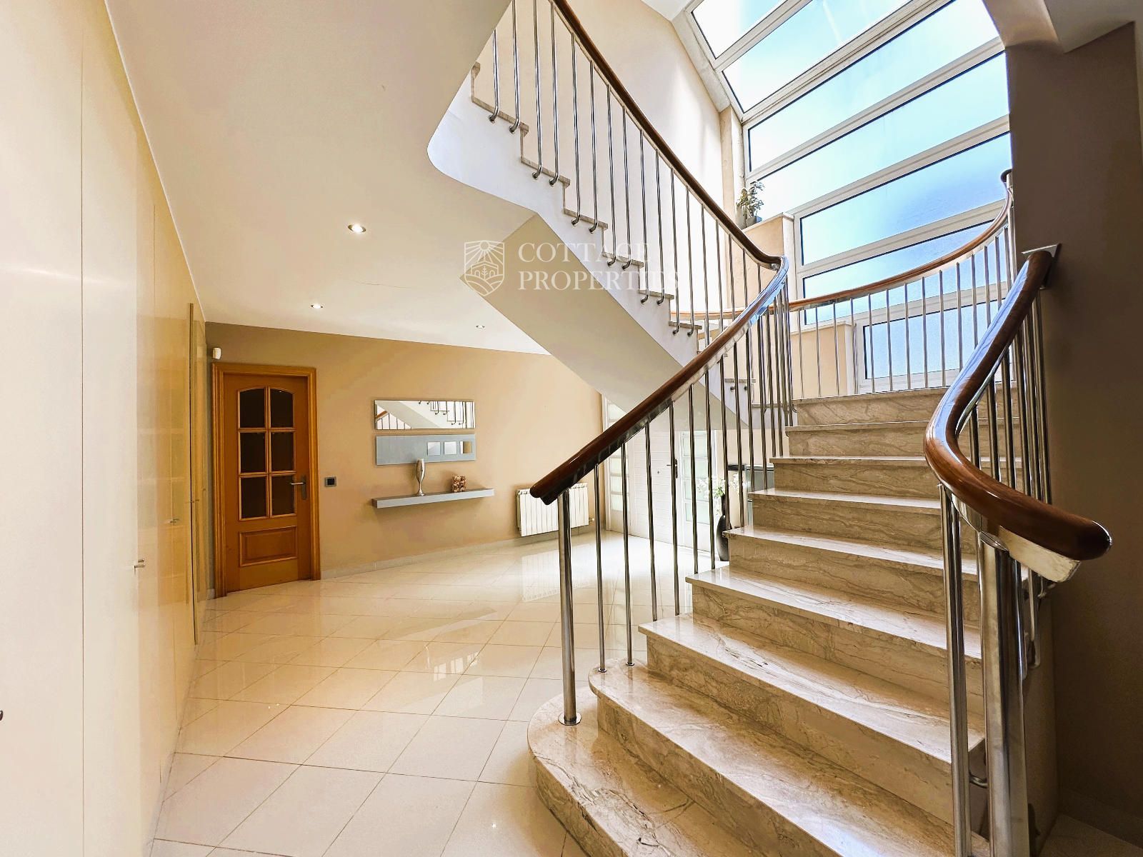 La villa principale comprend un élégant hall d'entrée avec un escalier sculptural à forte présence architecturale, de vastes salons, une salle à manger, un bureau et une cuisine entièrement équipée. Elle dispose de 6 chambres en suite, dont certaines avec terrasse privée, ainsi qu'un accès direct aux garages et aux locaux techniques.