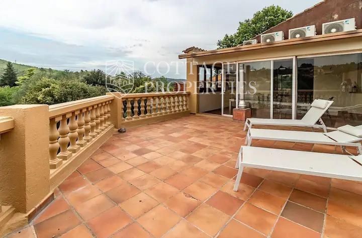 L'extérieur de la maison comprend une terrasse partiellement couverte avec vue panoramique sur la montagne, idéale pour profiter du climat méditerranéen et de l'environnement naturel.