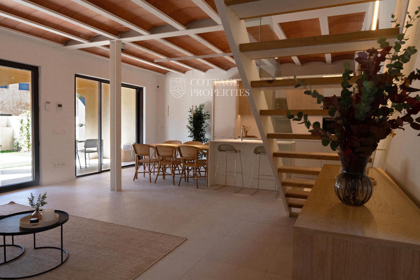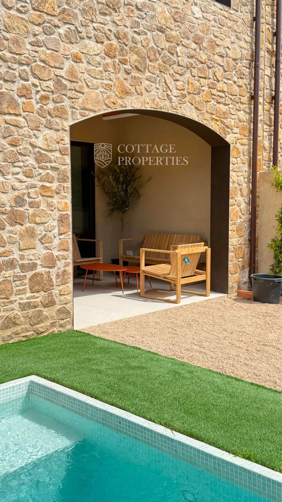 L'extérieur de la propriété comprend un jardin privé de 39,51 m², des espaces terrasse et une piscine parfaitement intégrée à l'ensemble, créant une atmosphère intime et détendue. Un cadre idéal pour profiter du climat méditerranéen, de repas en plein air et de moments de détente dans un environnement exclusif.