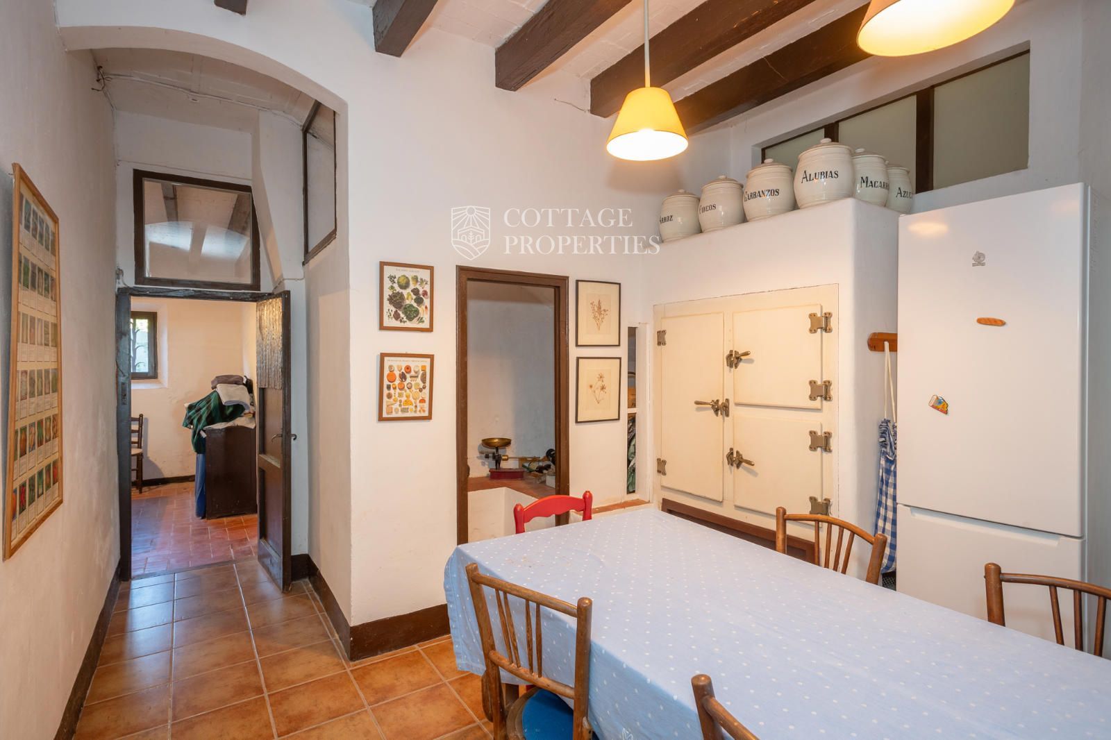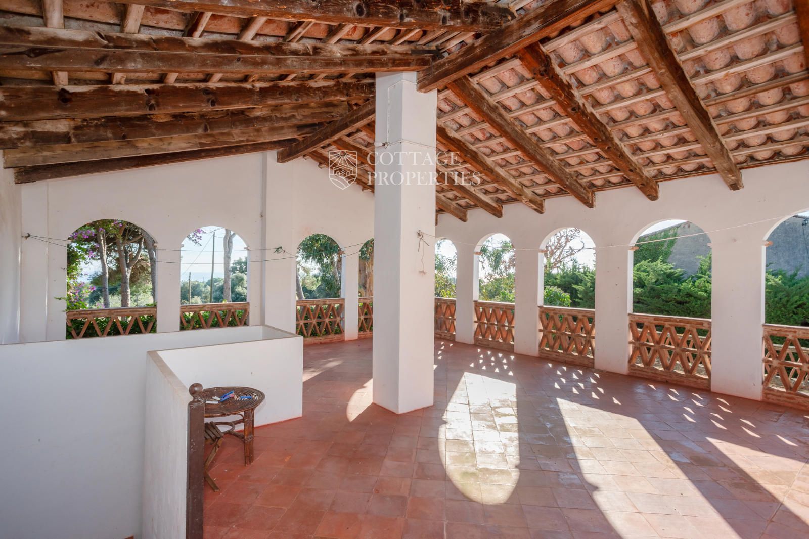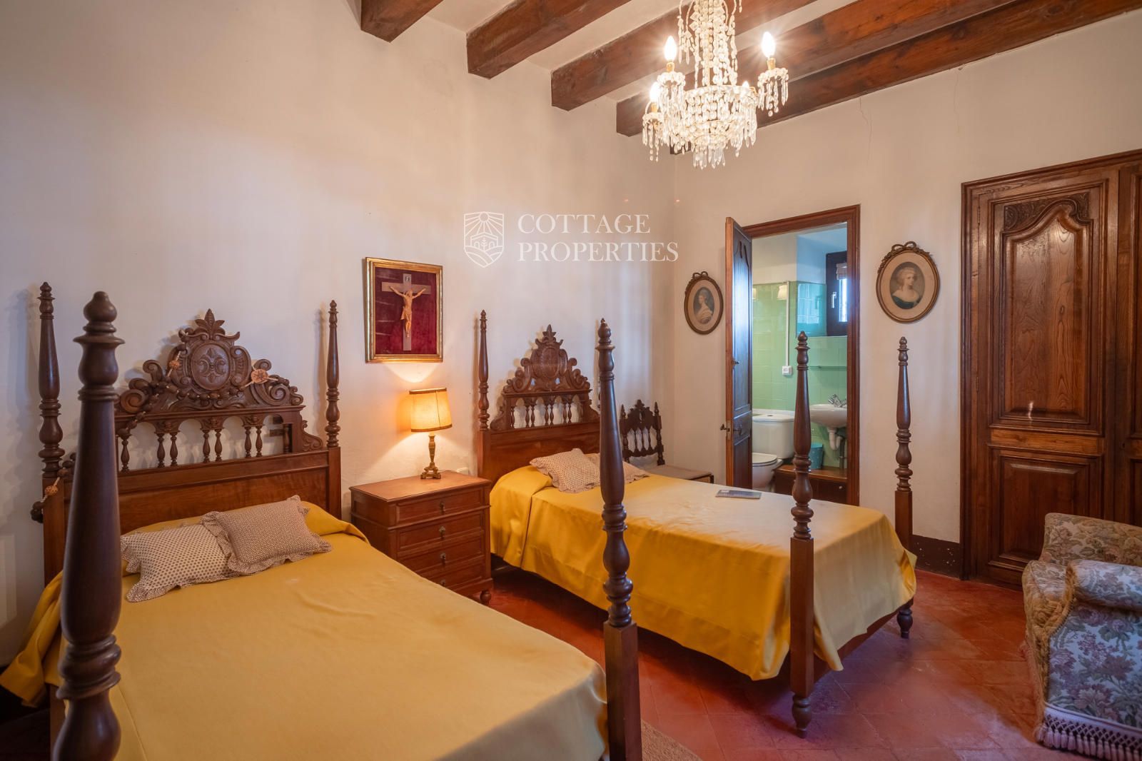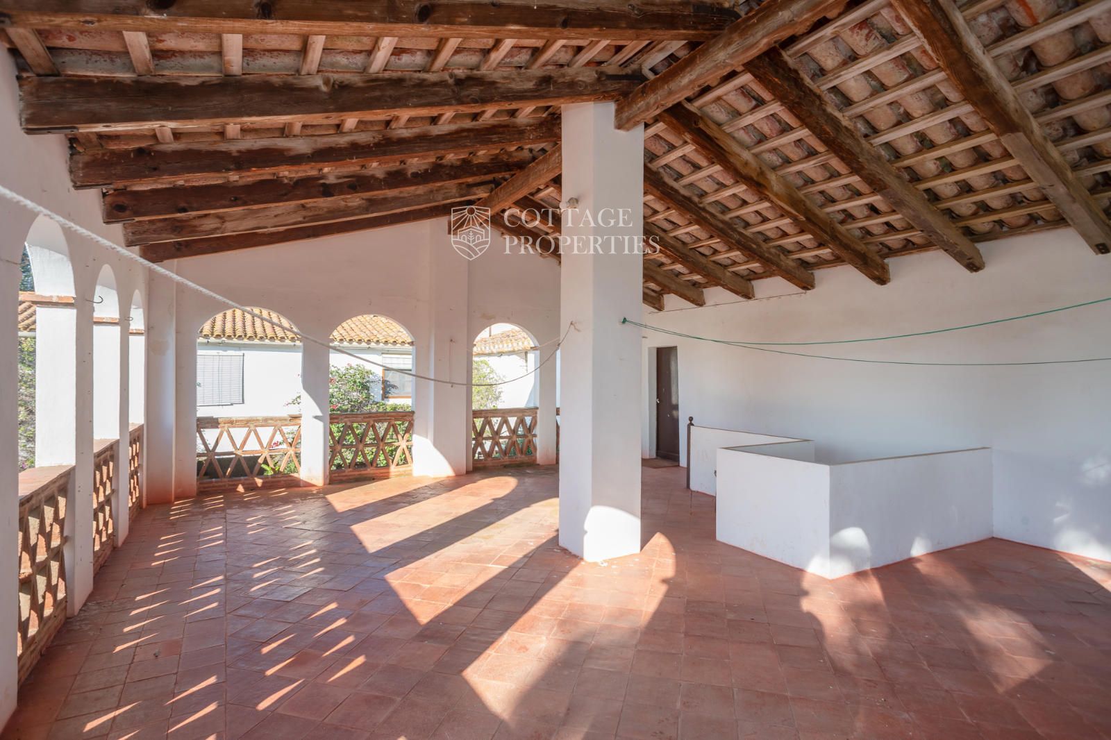 La mas dispose d'un accueillant hall d'entrée, d'un escalier intérieur et d'un grand garage. Au rez-de-chaussée se trouvent 3 chambres doubles et une salle de bain complète, ainsi qu'une salle de bain pour les invités. Le premier étage abrite 7 chambres doubles, dont une avec quatre lits, et un débarras qui pourrait servir de chambre supplémentaire. Il inclut également une salle de bain complète avec baignoire et douche, et deux salles de bain supplémentaires, l'une avec douche et lavabo et l'autre avec WC et douche. Le rez-de-chaussée donne également accès à une terrasse avec des vues imprenables et une zone de piscine.