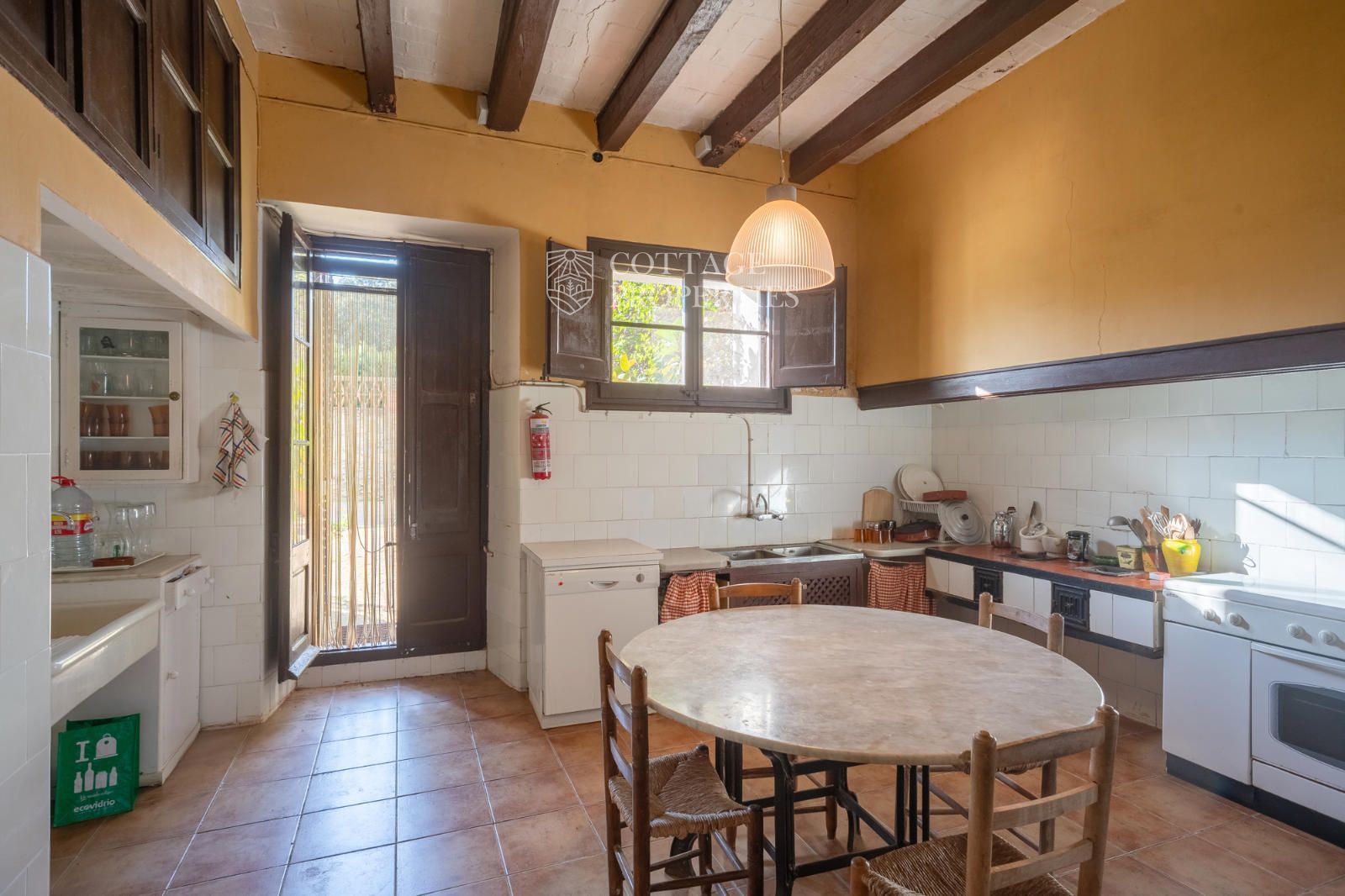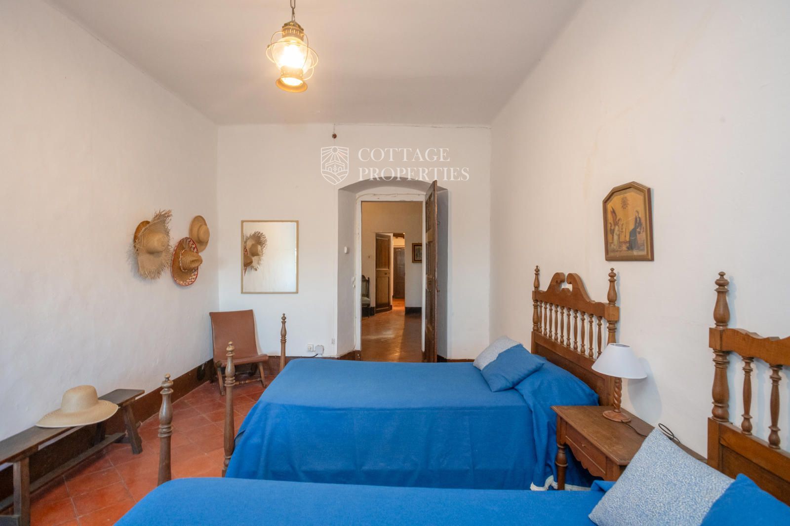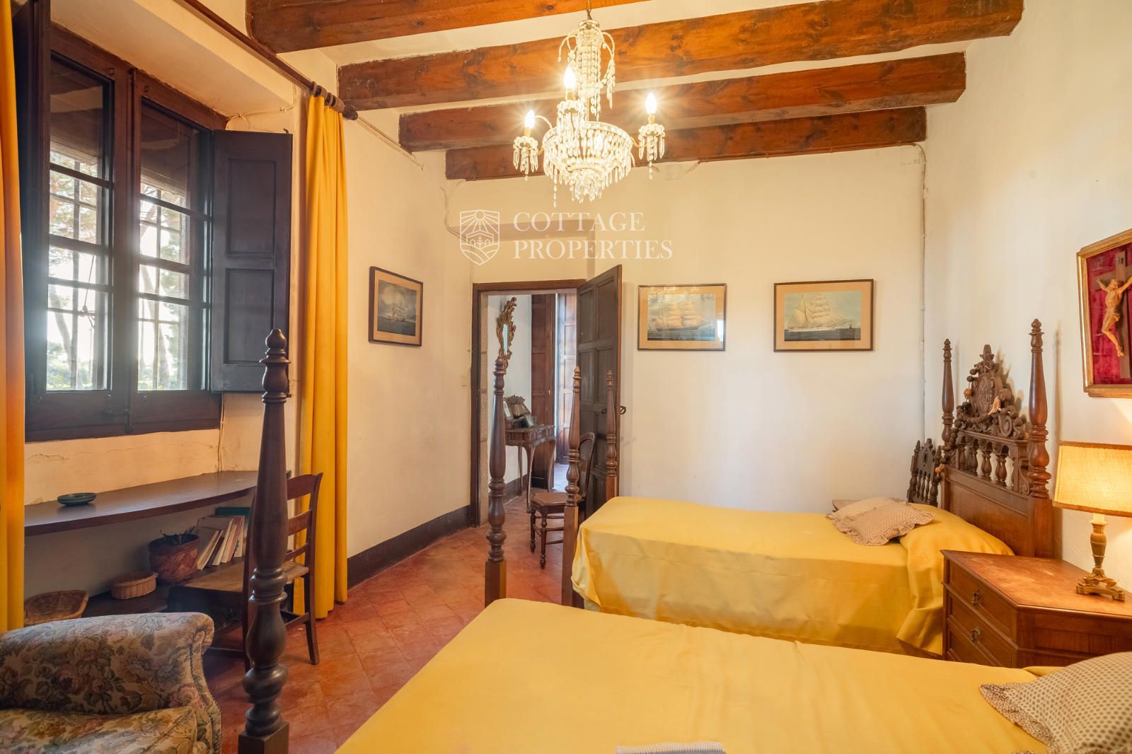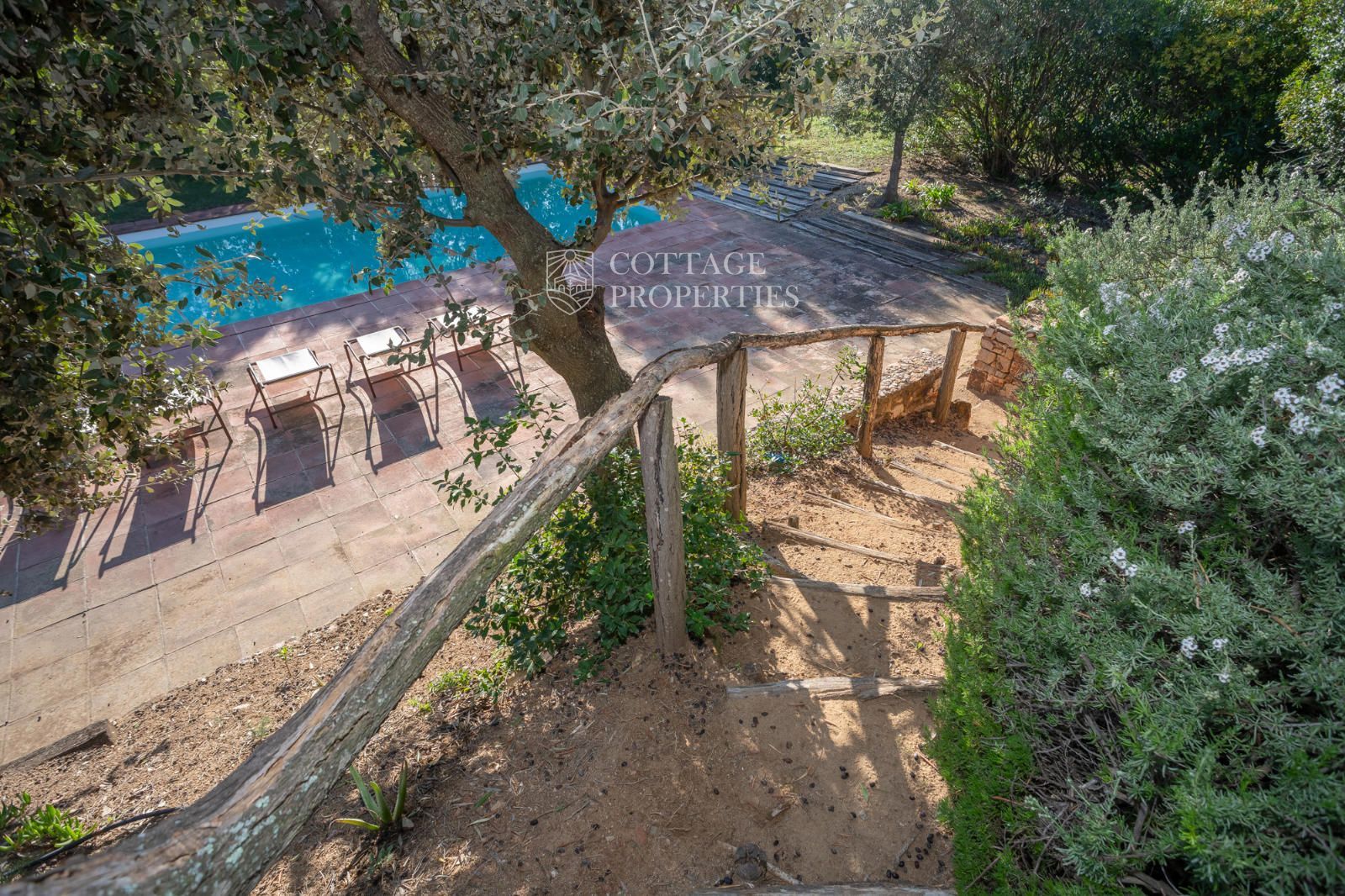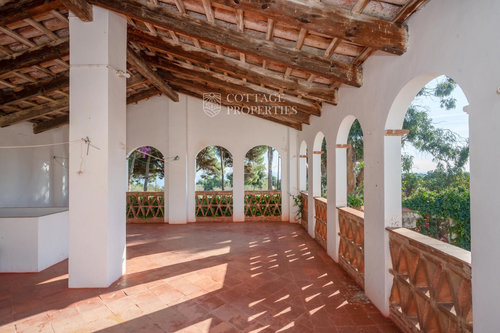 La mas dispose d'un accueillant hall d'entrée, d'un escalier intérieur et d'un grand garage. Au rez-de-chaussée se trouvent 3 chambres doubles et une salle de bain complète, ainsi qu'une salle de bain pour les invités. Le premier étage abrite 7 chambres doubles, dont une avec quatre lits, et un débarras qui pourrait servir de chambre supplémentaire. Il inclut également une salle de bain complète avec baignoire et douche, et deux salles de bain supplémentaires, l'une avec douche et lavabo et l'autre avec WC et douche. Le rez-de-chaussée donne également accès à une terrasse avec des vues imprenables et une zone de piscine.