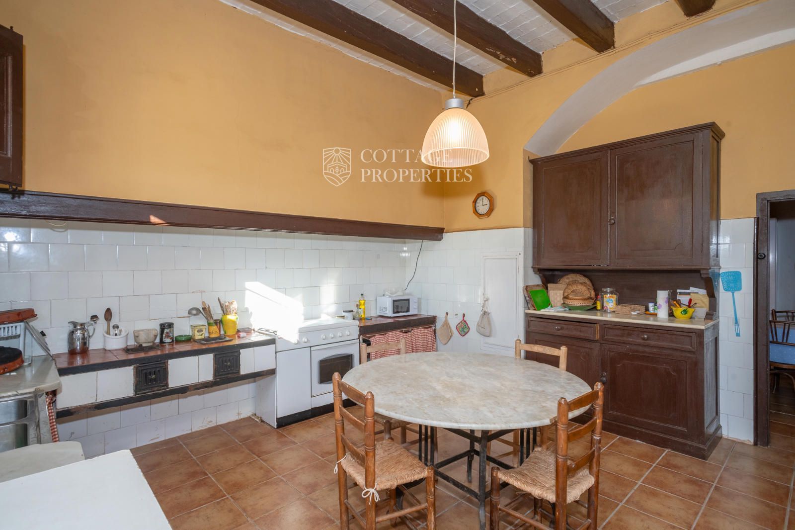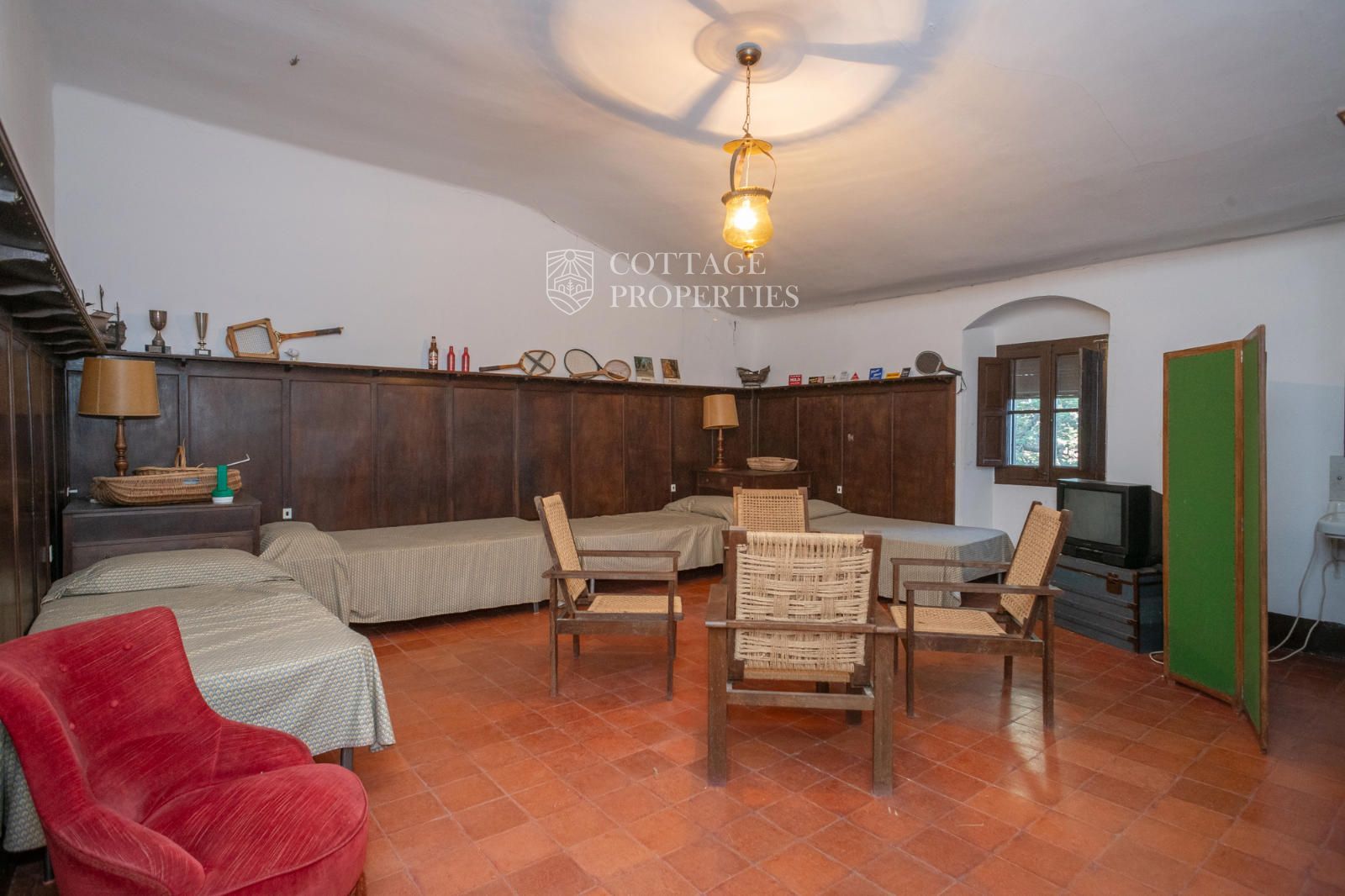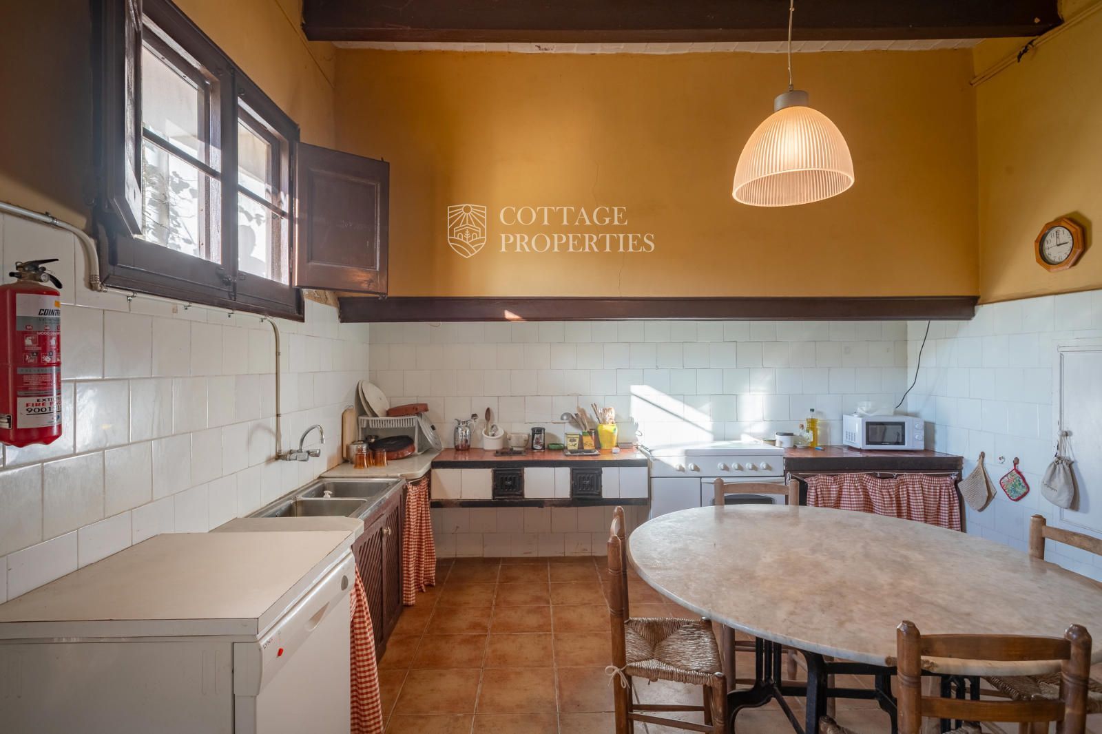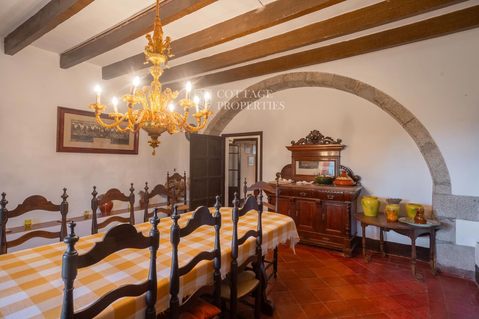 La mas dispose d'un accueillant hall d'entrée, d'un escalier intérieur et d'un grand garage. Au rez-de-chaussée se trouvent 3 chambres doubles et une salle de bain complète, ainsi qu'une salle de bain pour les invités. Le premier étage abrite 7 chambres doubles, dont une avec quatre lits, et un débarras qui pourrait servir de chambre supplémentaire. Il inclut également une salle de bain complète avec baignoire et douche, et deux salles de bain supplémentaires, l'une avec douche et lavabo et l'autre avec WC et douche. Le rez-de-chaussée donne également accès à une terrasse avec des vues imprenables et une zone de piscine.