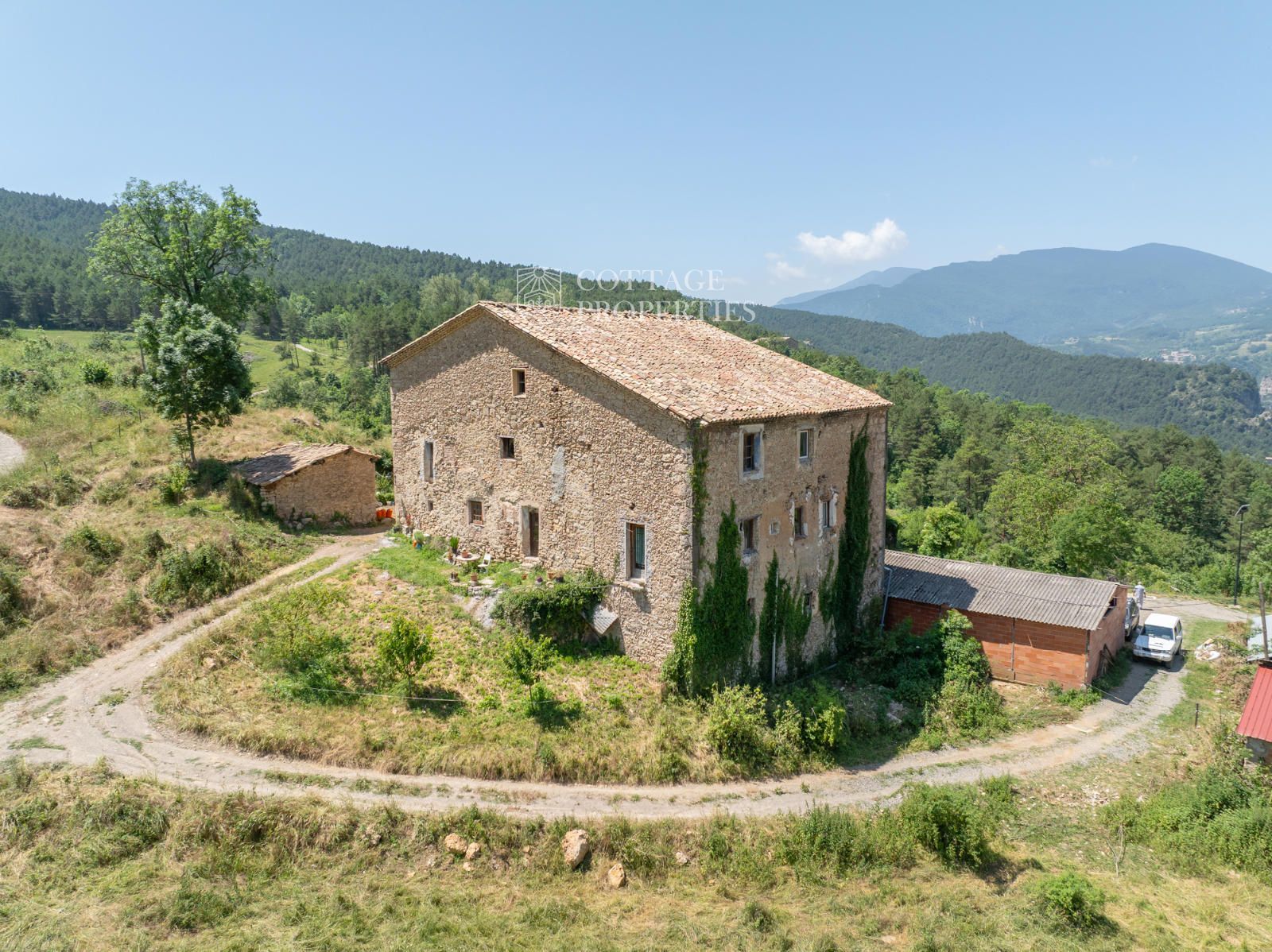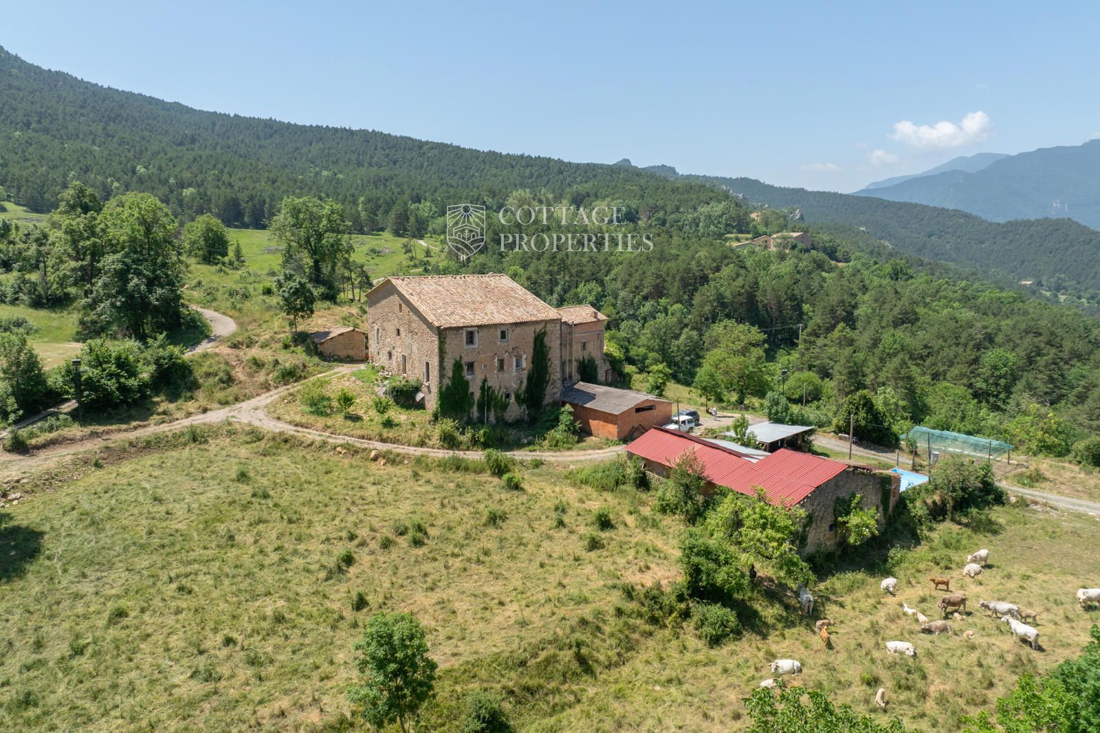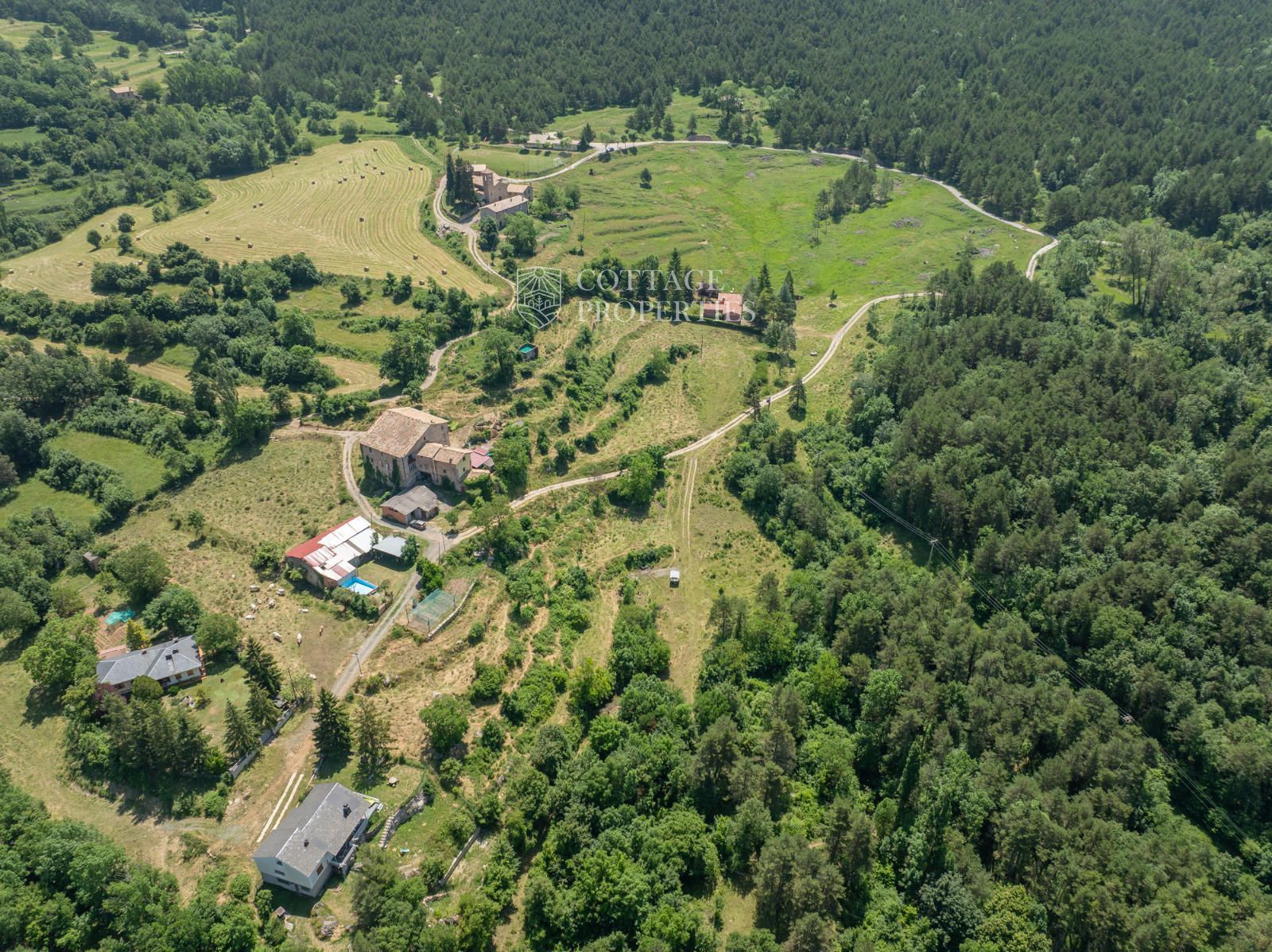 Cottage Properties présente cette mas catalane du XVIIIe siècle située à La Nou del Berguedà, sur un domaine d'environ 20 hectares. Avec plus de 950 m² construits et plusieurs dépendances, il s'agit d'une opportunité unique pour ceux qui recherchent un environnement authentique, paisible et entouré de nature.