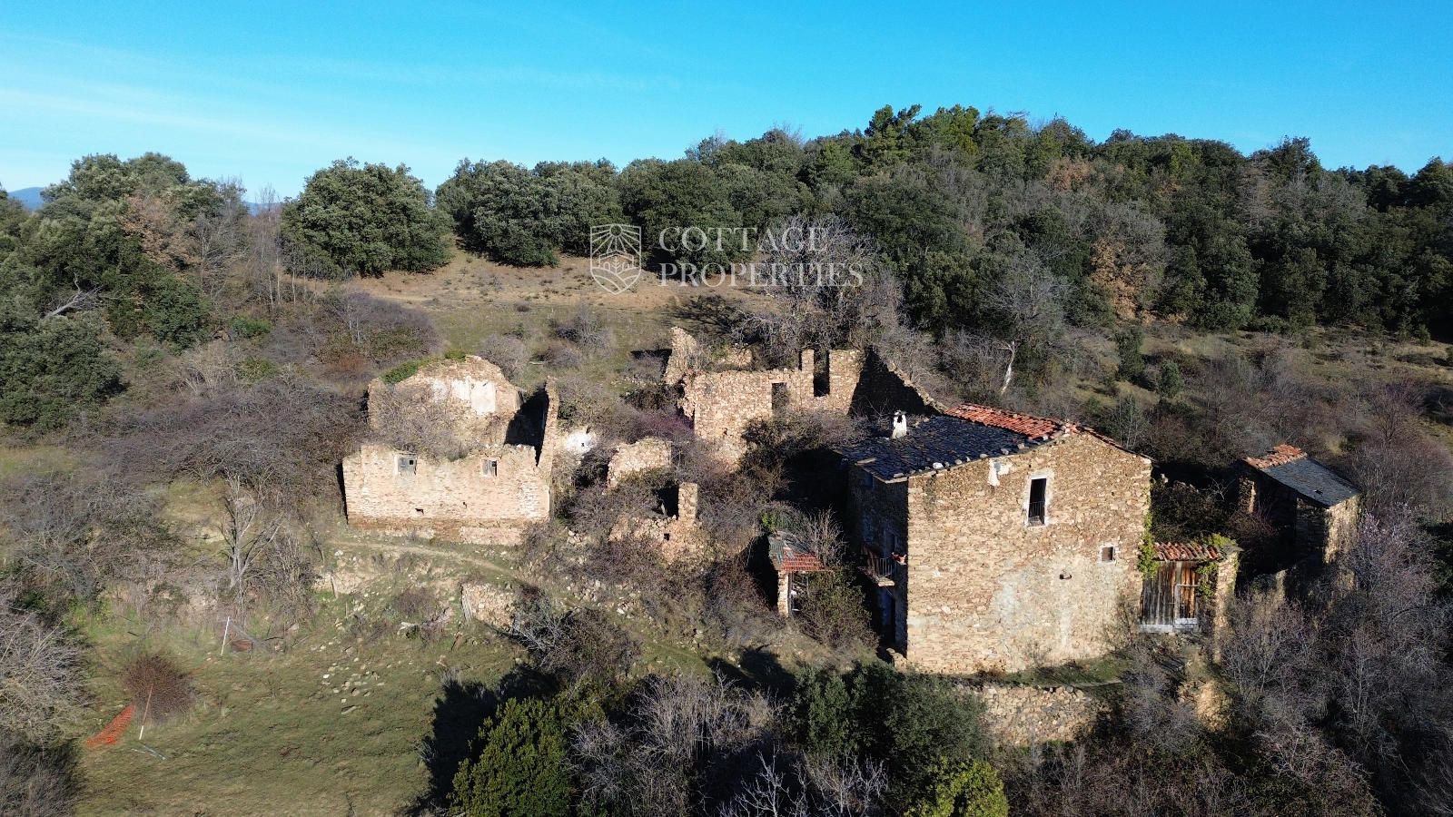 mas singulier avec domaine rustique à rénover, à restaurer entièrement, 19 hectares de terrain et construction traditionnelle en pierre à la freita