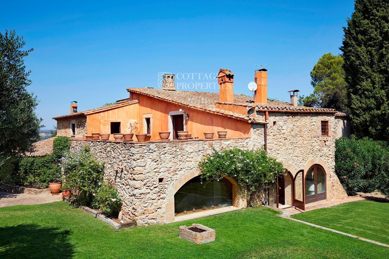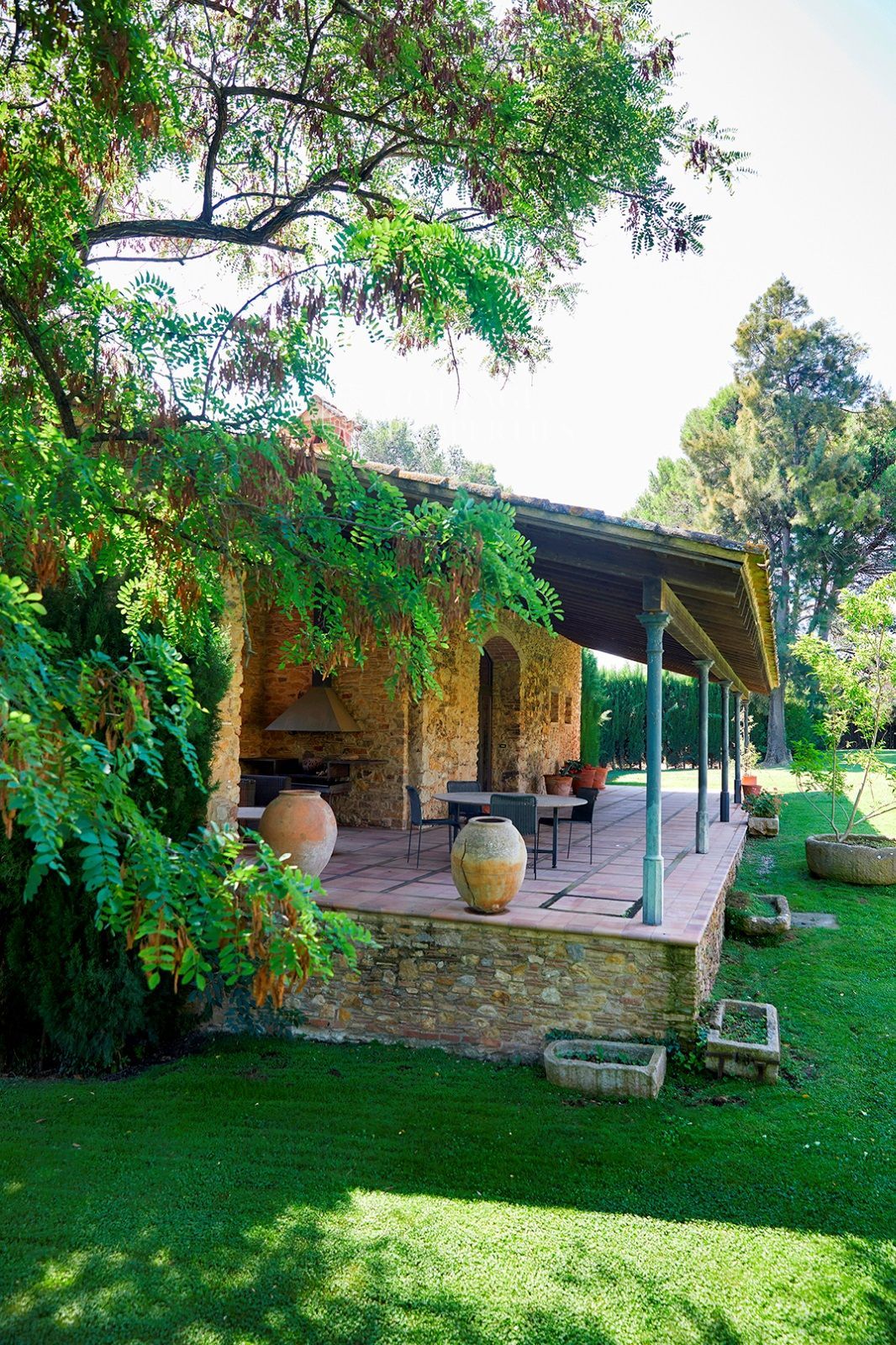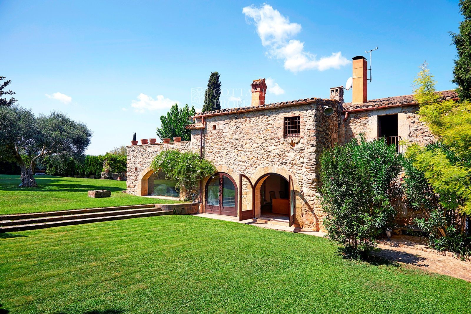 La masia est entourée d'un vaste terrain d'environ 3,5 hectares, offrant une grande intimité. La villa principale se compose de six chambres et sept salles de bains, avec des espaces intérieurs comprenant un hall d'entrée, deux salons avec cheminées, une salle à manger, une cuisine-office entièrement équipée et rénovée, une arrière-cuisine, une chambre de service avec salle de bains et une suite pour invités. À l'extérieur, vous profiterez d'une véranda avec coin salon, barbecue et d'une piscine privée avec vestiaires.