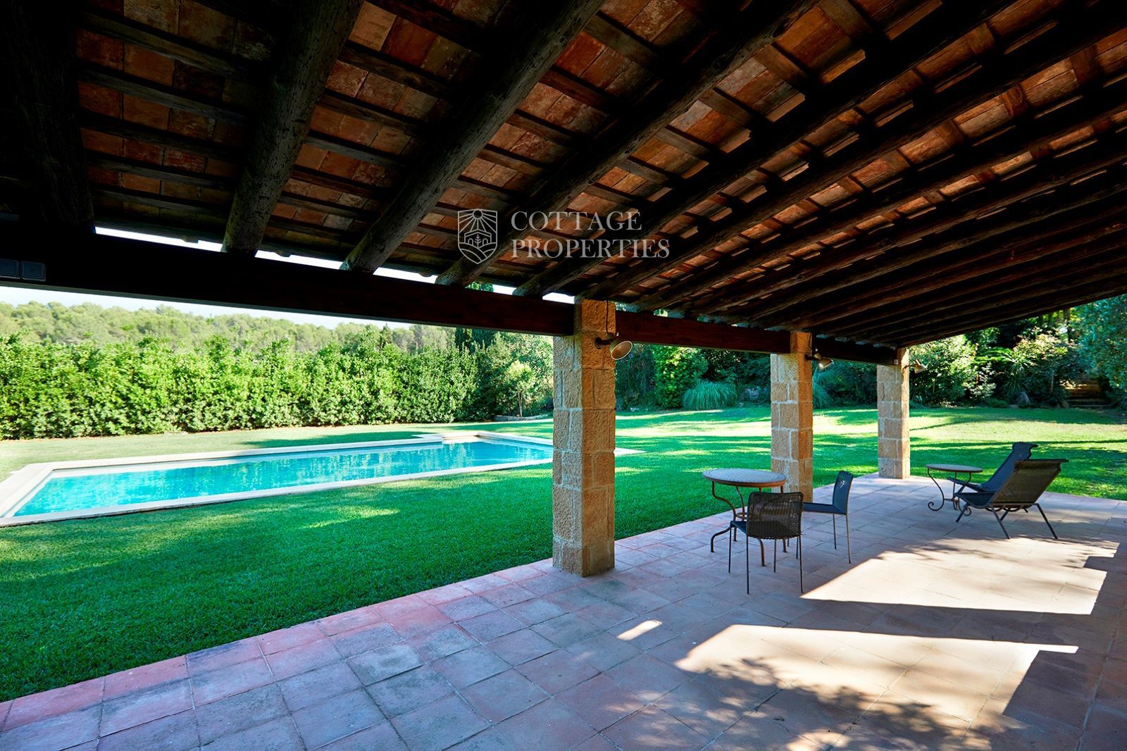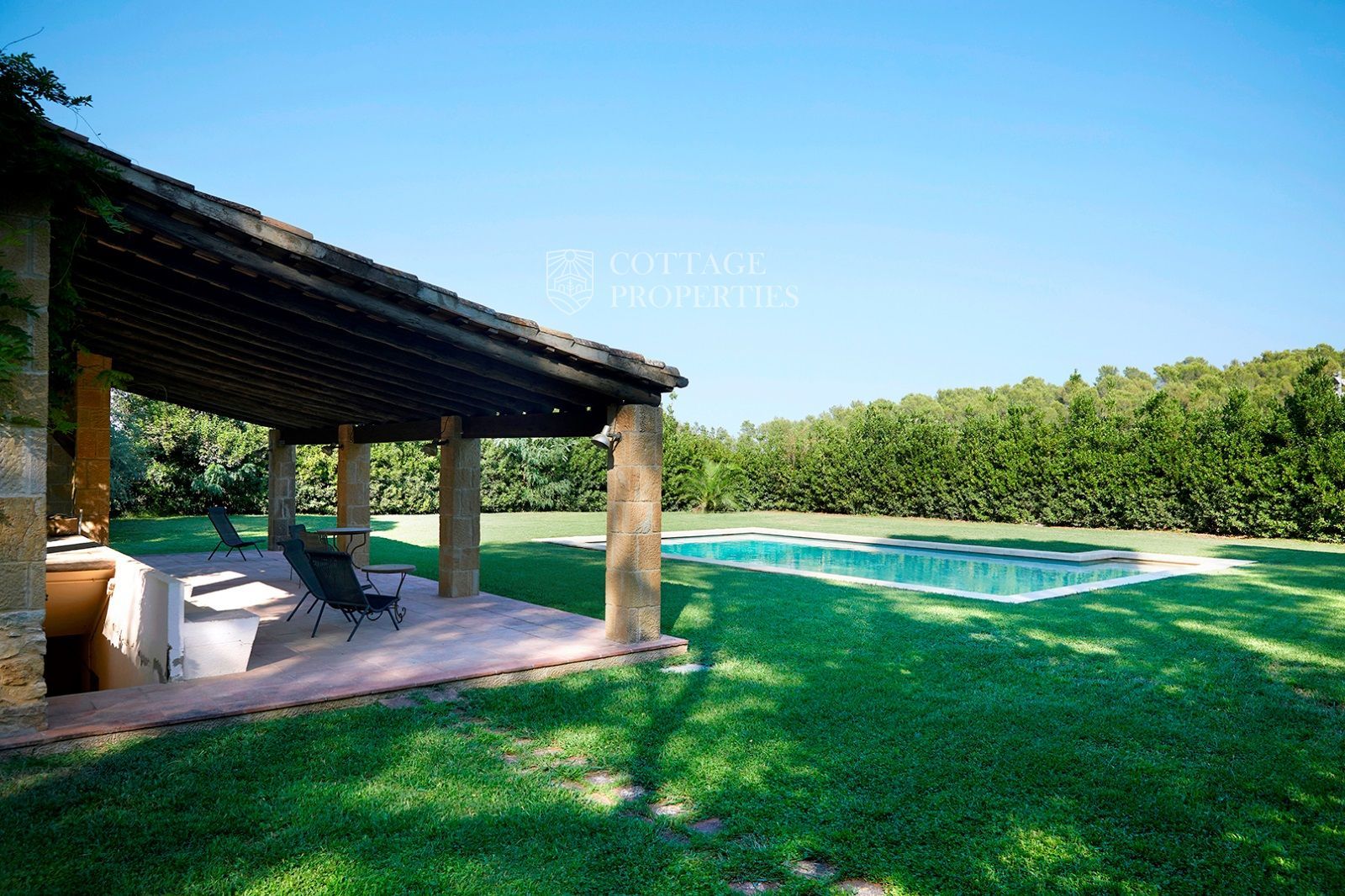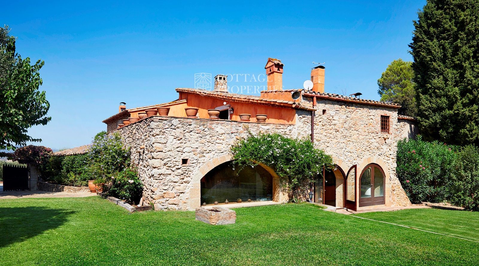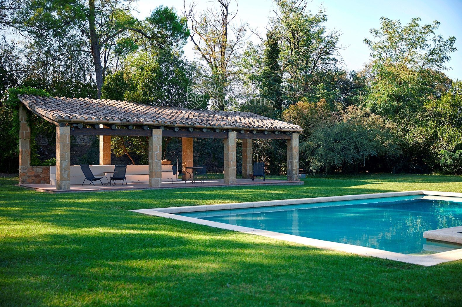 La masia est entourée d'un vaste terrain d'environ 3,5 hectares, offrant une grande intimité. La villa principale se compose de six chambres et sept salles de bains, avec des espaces intérieurs comprenant un hall d'entrée, deux salons avec cheminées, une salle à manger, une cuisine-office entièrement équipée et rénovée, une arrière-cuisine, une chambre de service avec salle de bains et une suite pour invités. À l'extérieur, vous profiterez d'une véranda avec coin salon, barbecue et d'une piscine privée avec vestiaires.