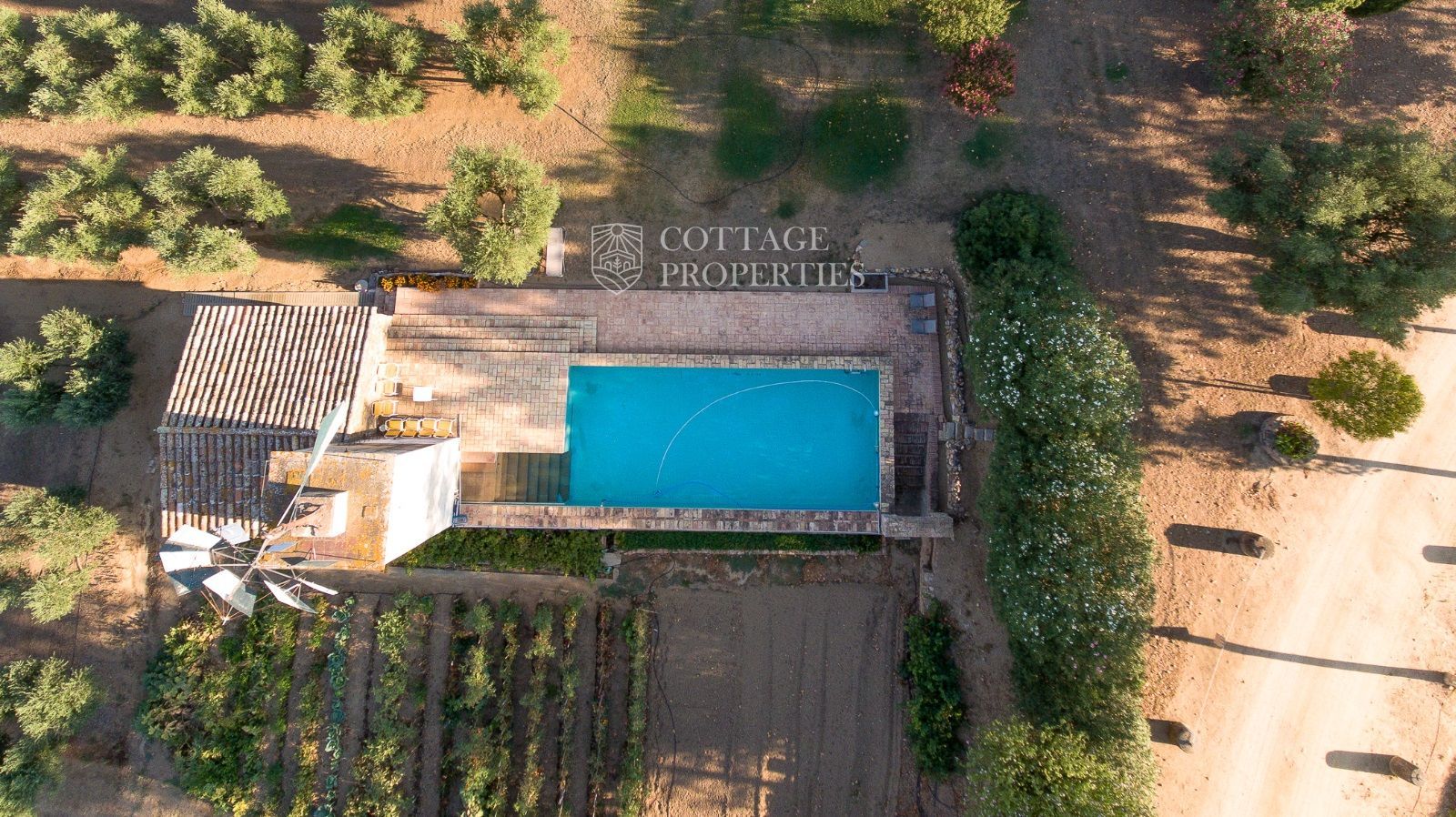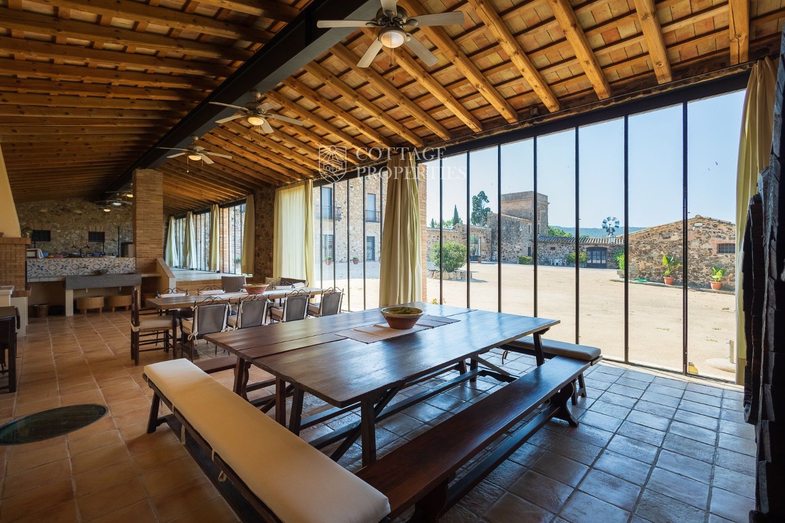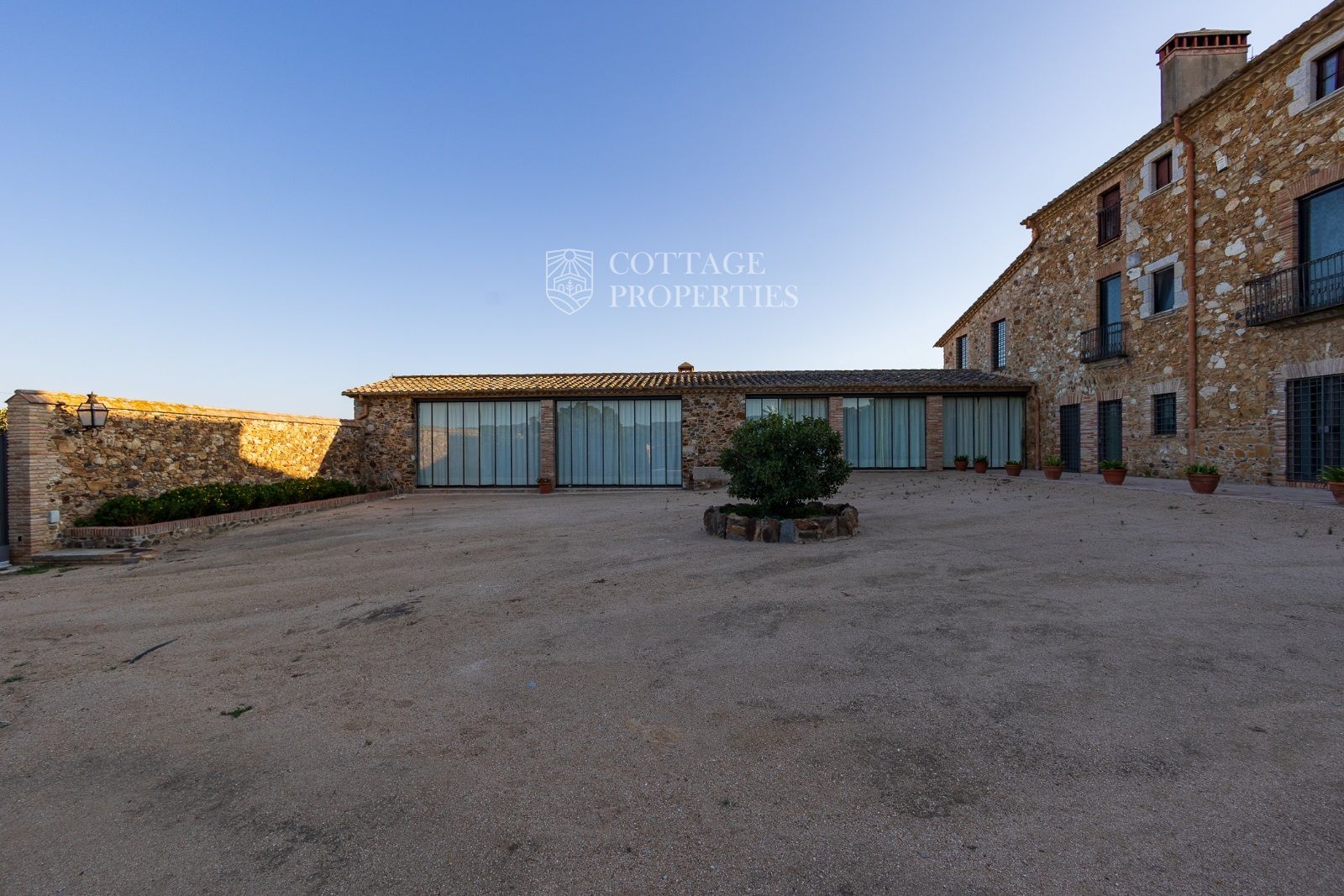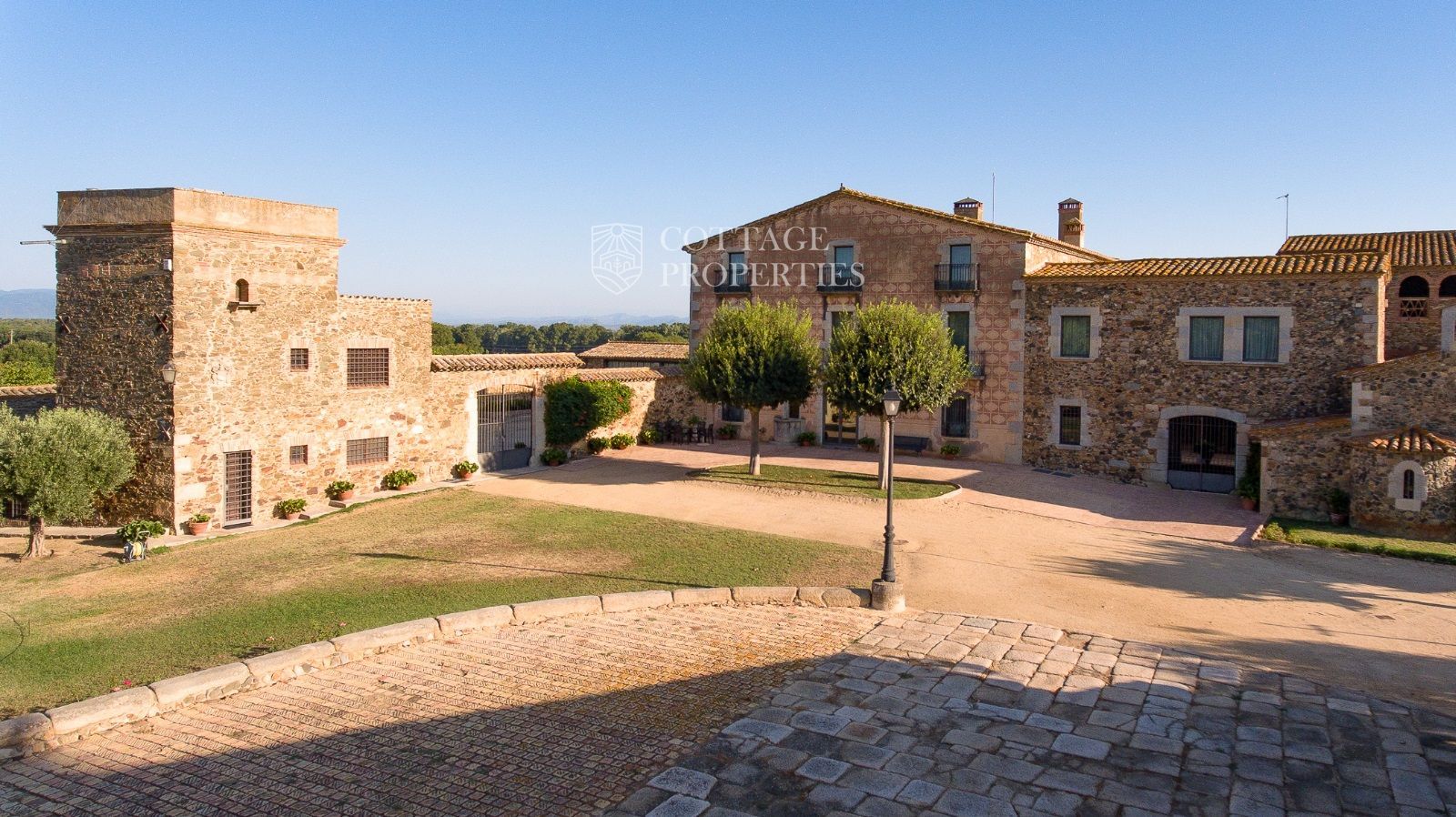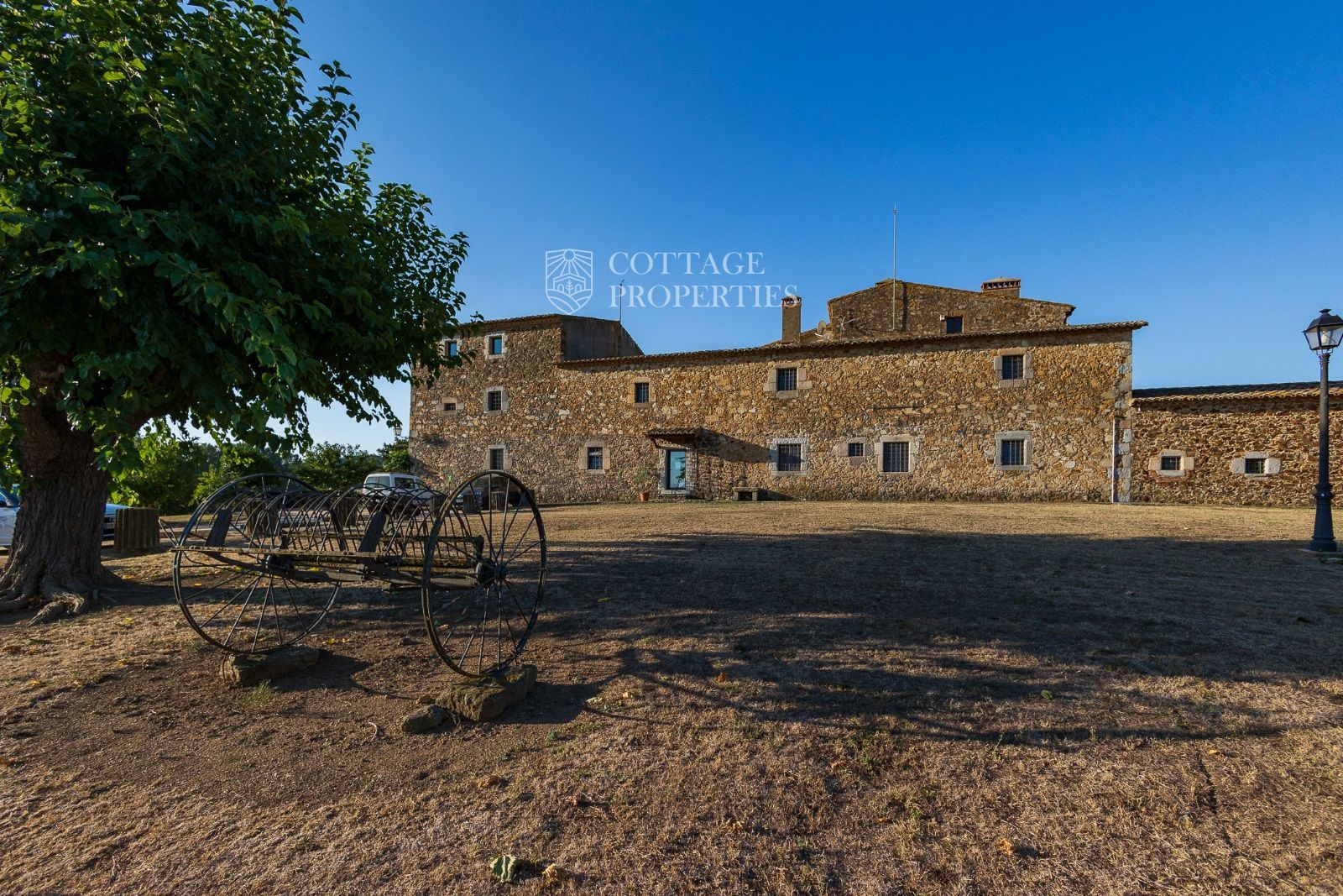 La propriété comprend deux masias entièrement rénovées et une ferme actuellement non opérationnelle. Le terrain comprend 35 hectares d'oliveraies avec une production annuelle de 15 000 litres d'huile d'olive, 15 hectares dédiés à la culture du blé, et un réservoir avec une capacité de 160 000 m³ d'eau, suffisant pour irriguer tout le domaine. La masia principale, datant du XIIe siècle, a été rénovée avec des finitions de très haute qualité tout en préservant son caractère historique.
