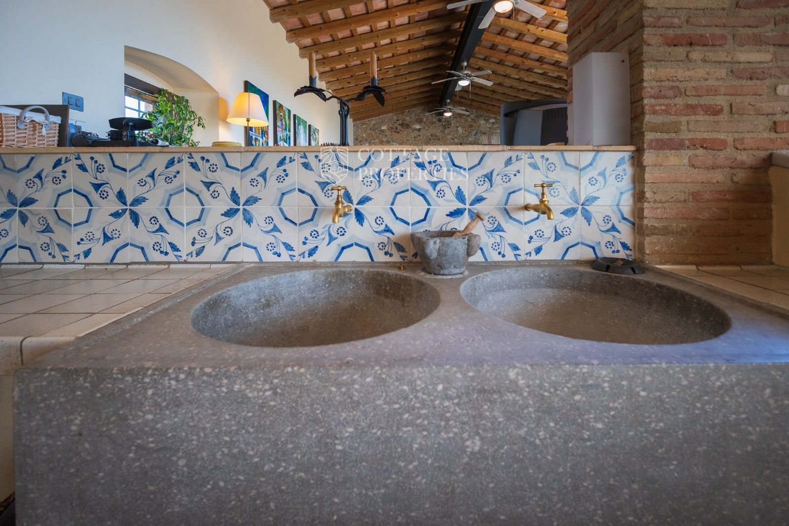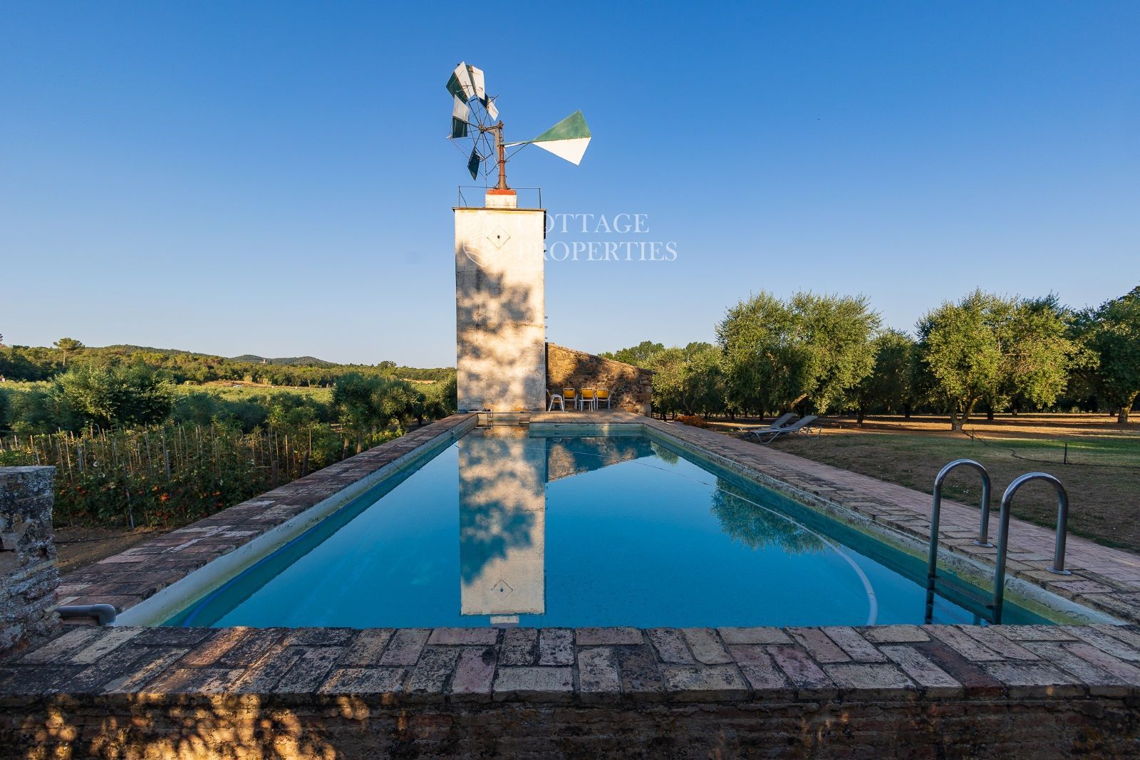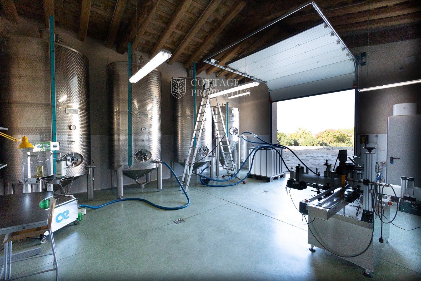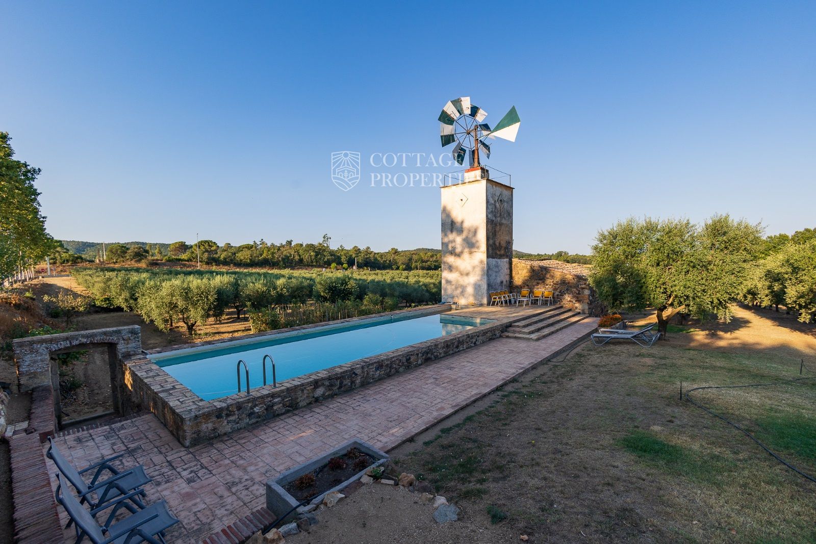 La propriété comprend deux masias entièrement rénovées et une ferme actuellement non opérationnelle. Le terrain comprend 35 hectares d'oliveraies avec une production annuelle de 15 000 litres d'huile d'olive, 15 hectares dédiés à la culture du blé, et un réservoir avec une capacité de 160 000 m³ d'eau, suffisant pour irriguer tout le domaine. La masia principale, datant du XIIe siècle, a été rénovée avec des finitions de très haute qualité tout en préservant son caractère historique.