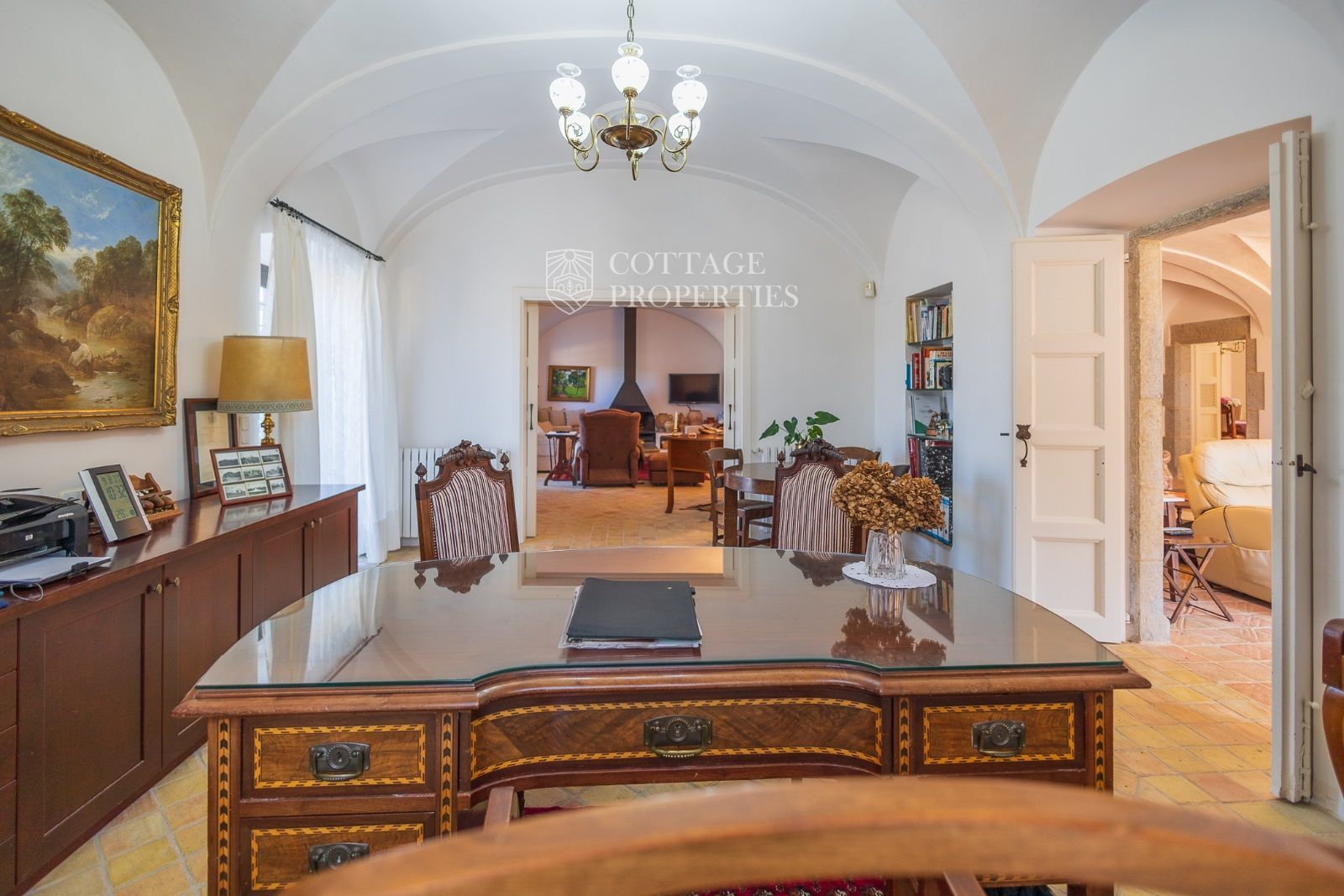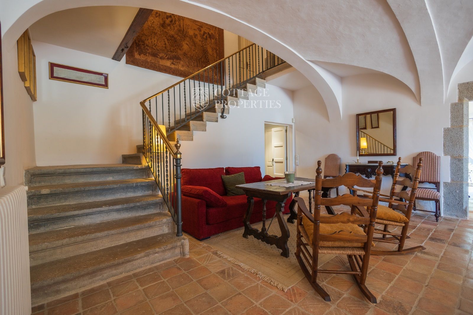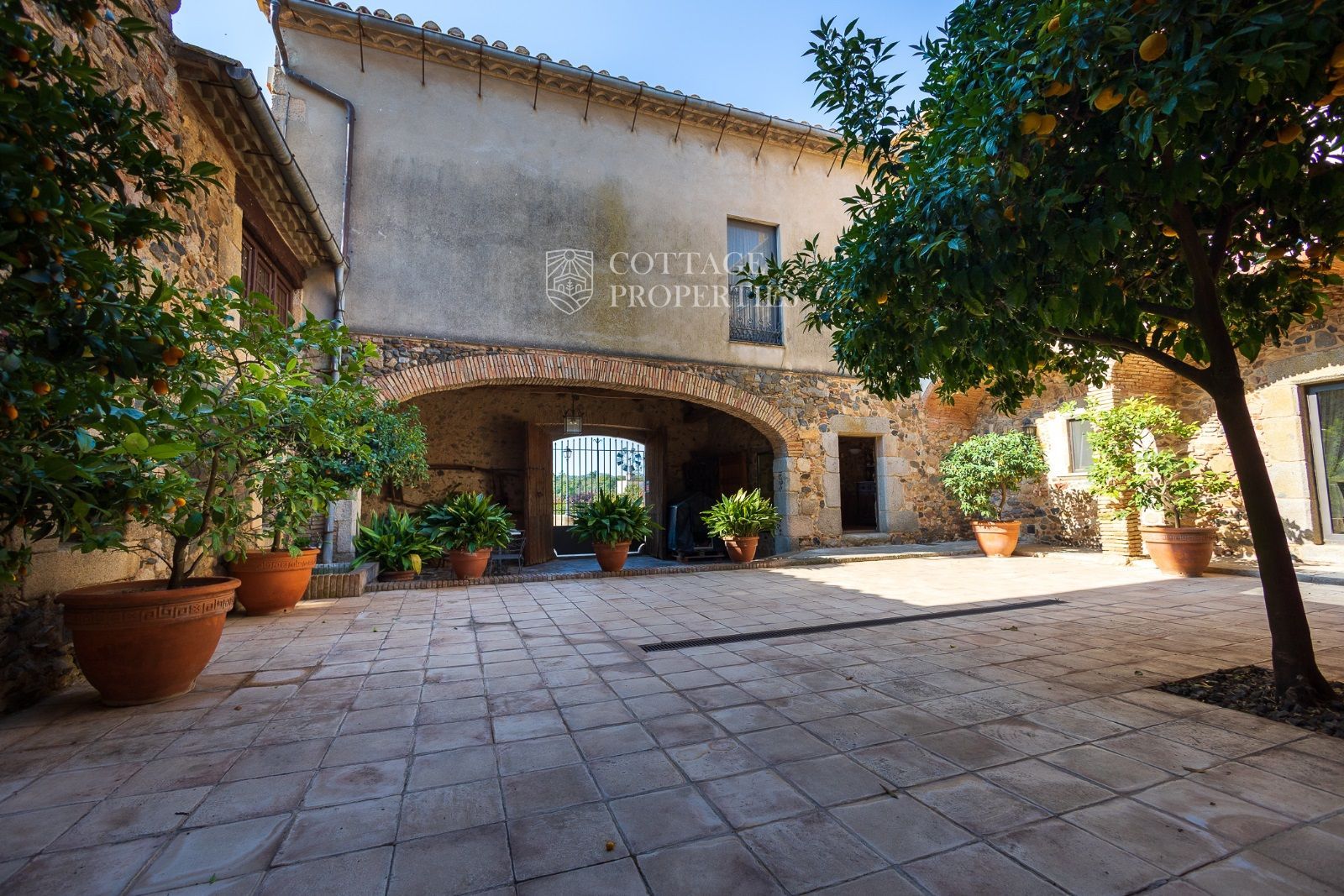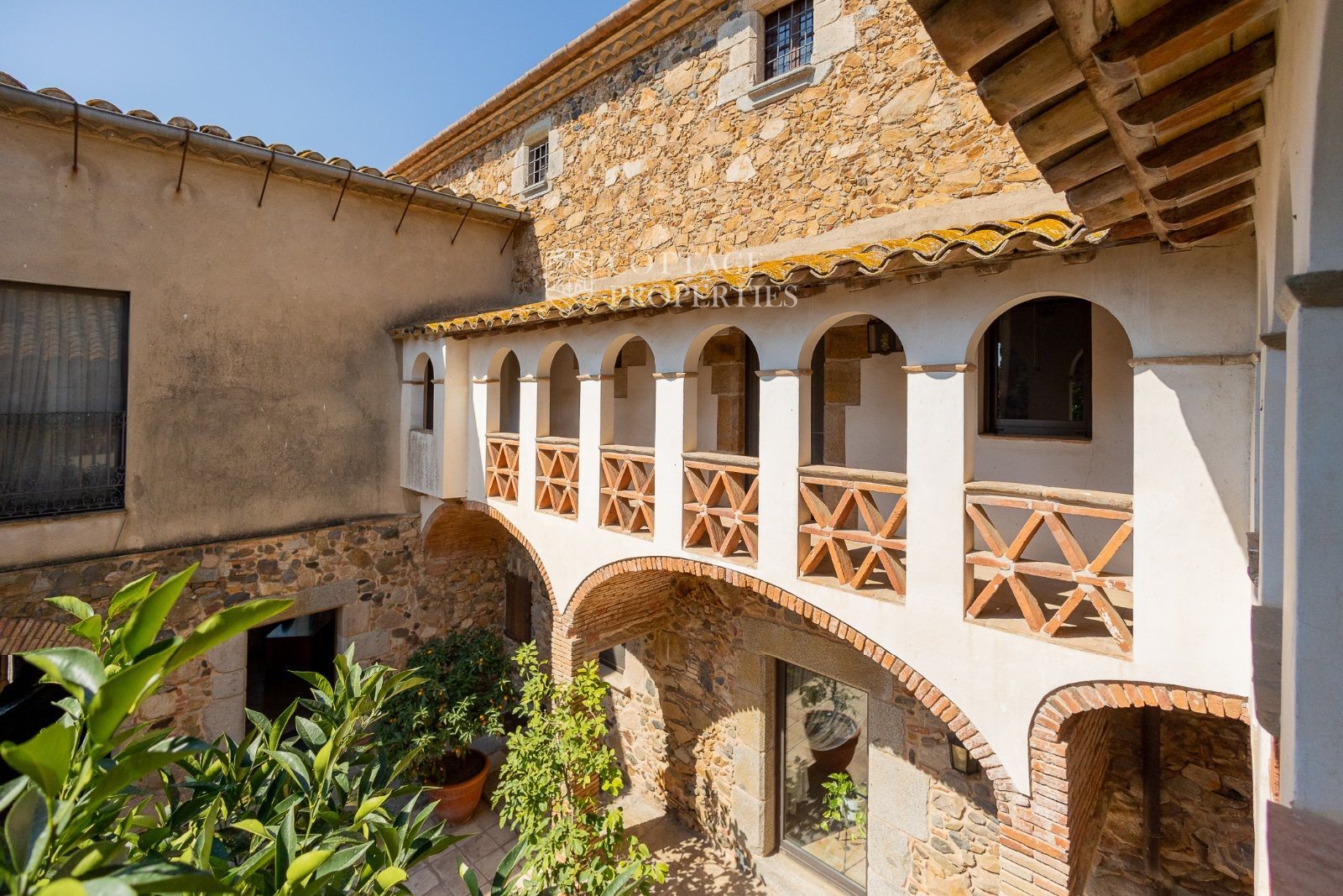 Espaces Extérieurs : Le grand patio intérieur, entouré de voûtes et d'arcades, est dominé par un oranger et a le style d'un majestueux cloître. La propriété dispose également d'un magnifique jardin avec un grand porche d'été et une piscine. De plus, elle comprend sa propre chapelle et une maison d'invités.