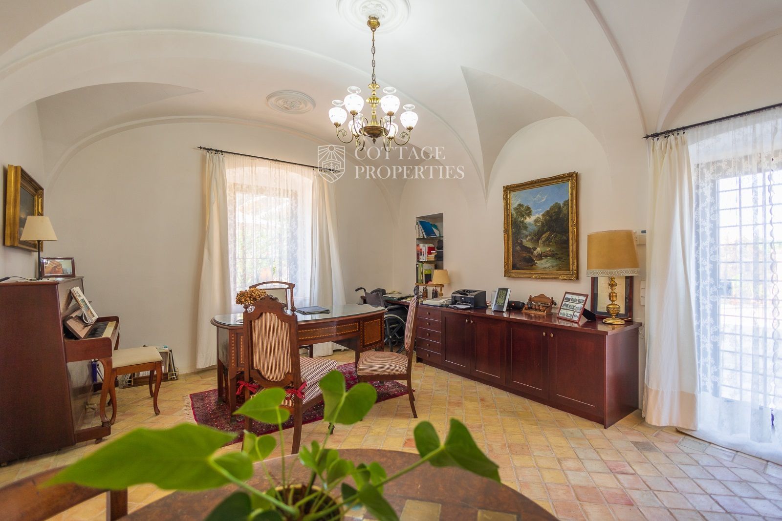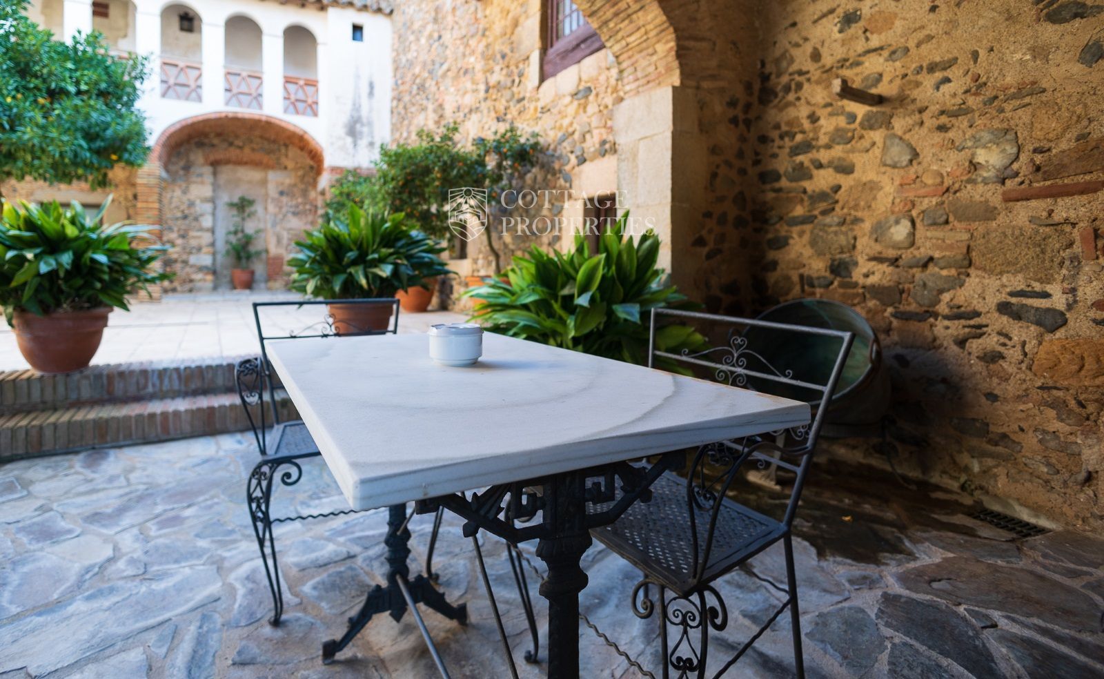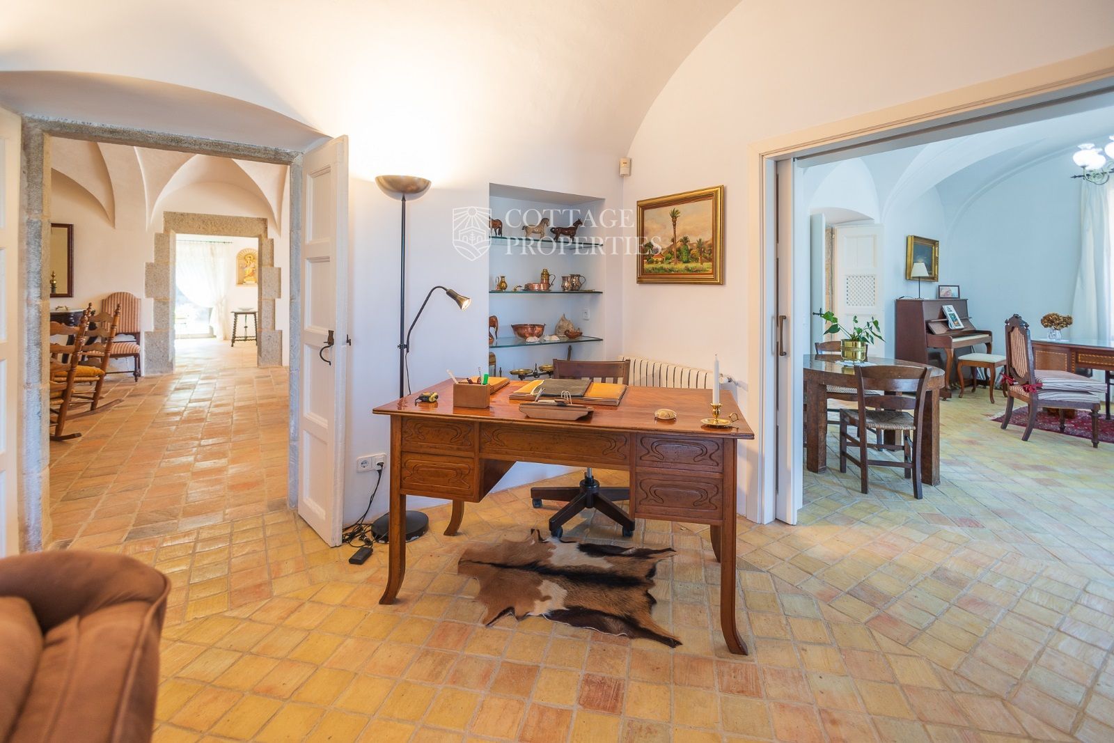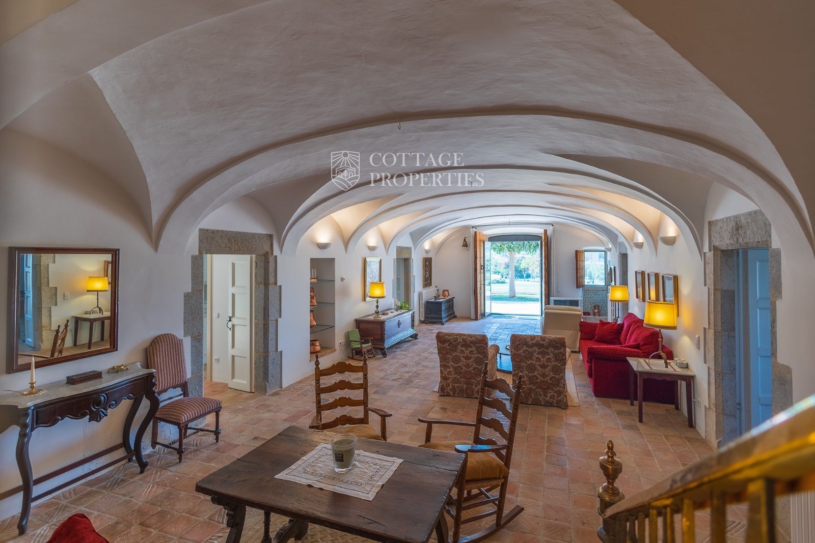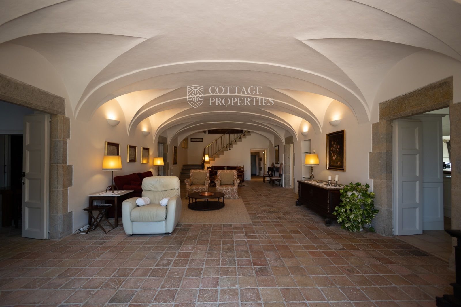 Espaces Extérieurs : Le grand patio intérieur, entouré de voûtes et d'arcades, est dominé par un oranger et a le style d'un majestueux cloître. La propriété dispose également d'un magnifique jardin avec un grand porche d'été et une piscine. De plus, elle comprend sa propre chapelle et une maison d'invités.