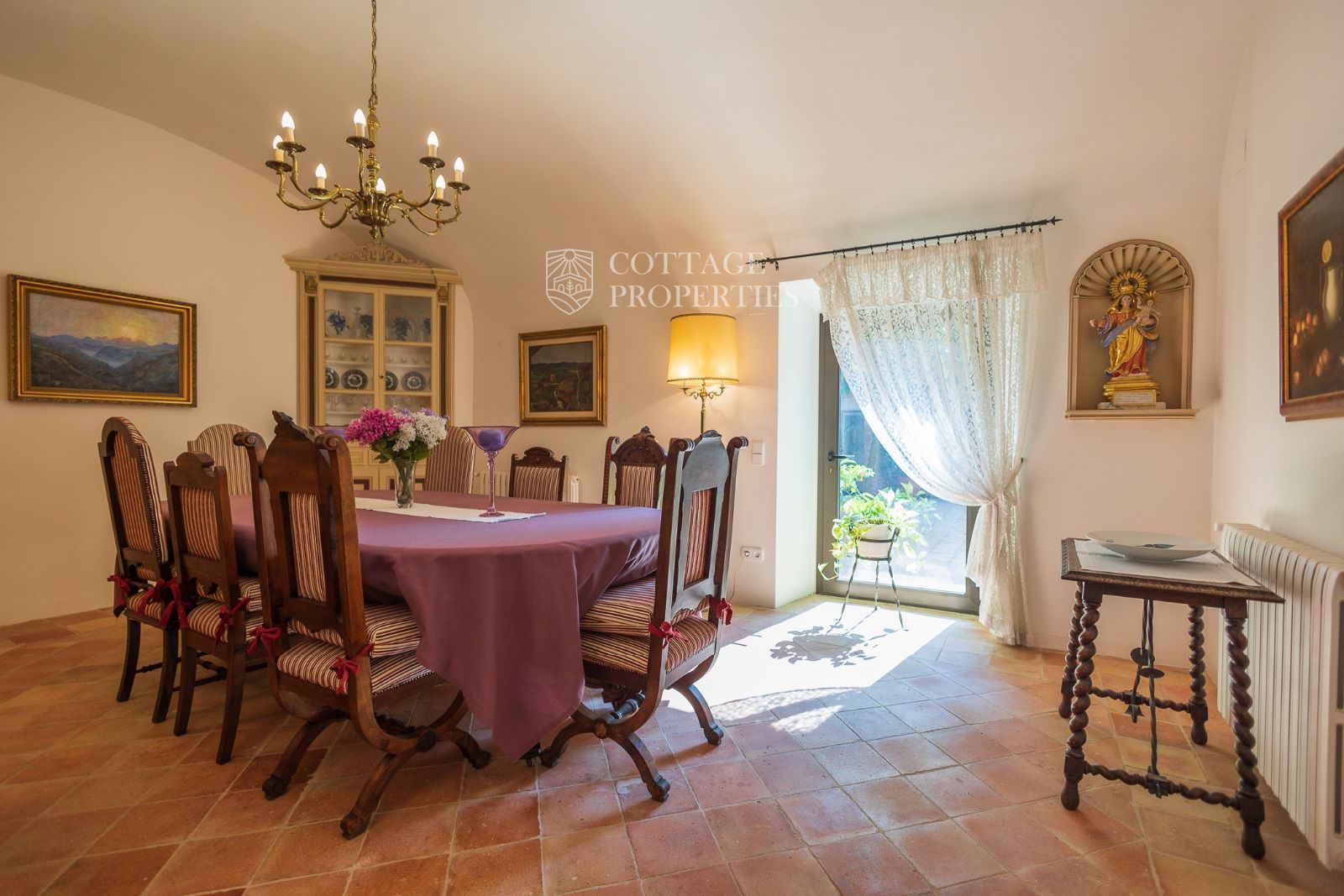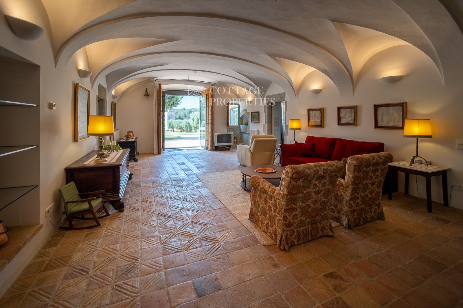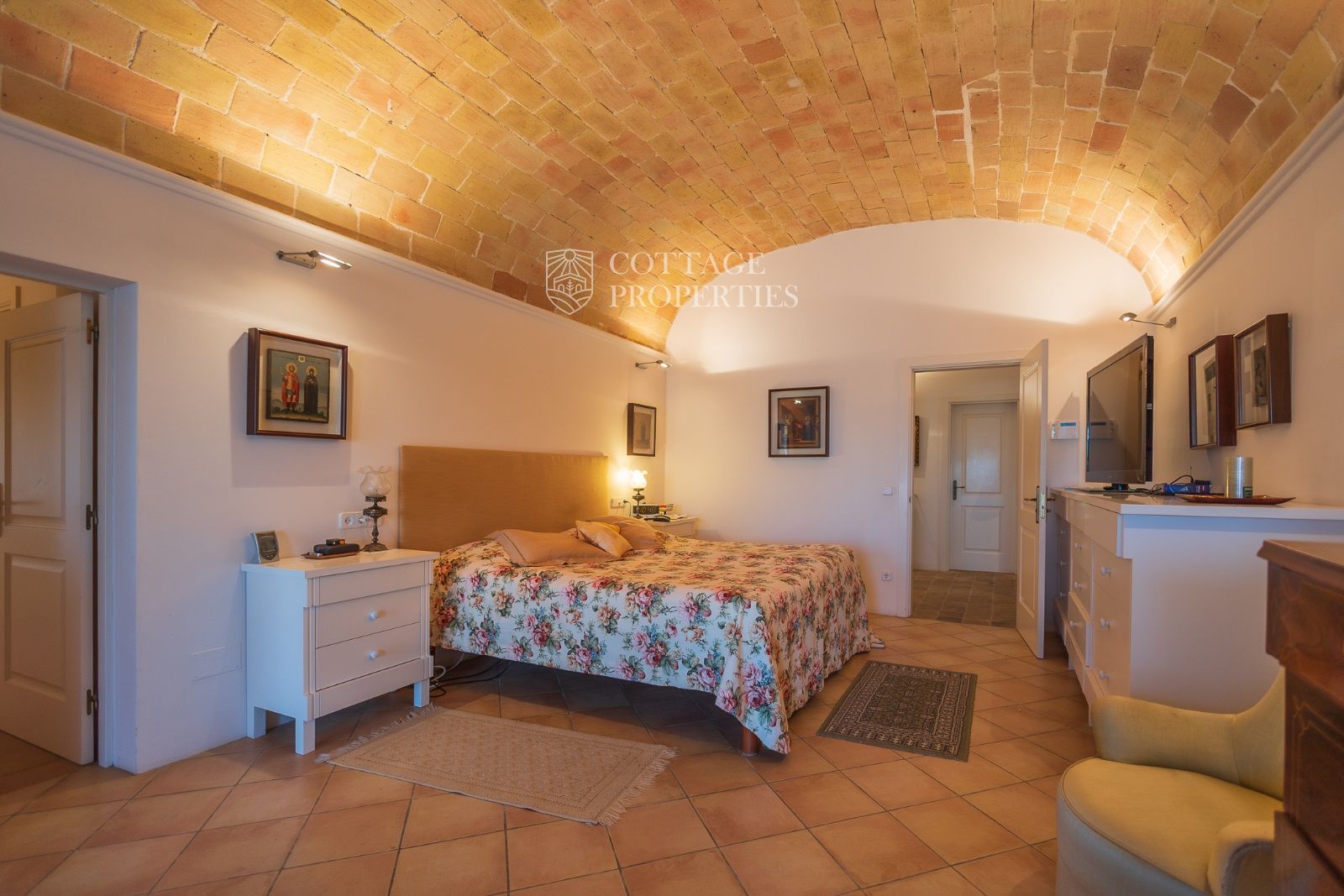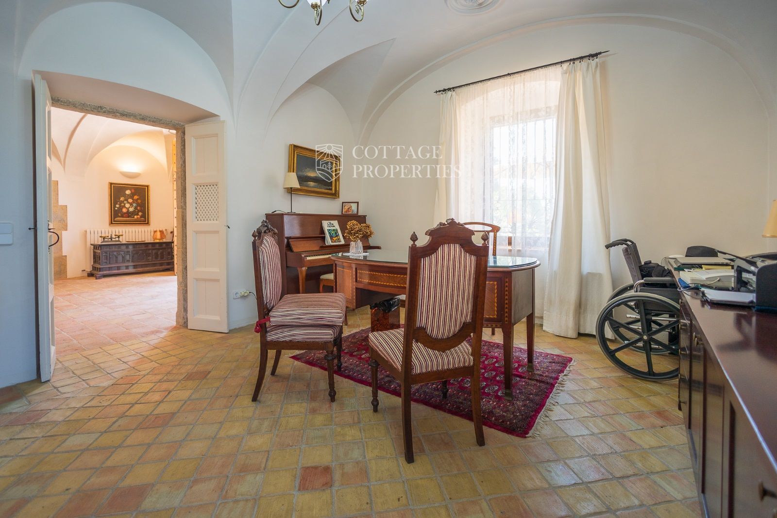 Espaces Extérieurs : Le grand patio intérieur, entouré de voûtes et d'arcades, est dominé par un oranger et a le style d'un majestueux cloître. La propriété dispose également d'un magnifique jardin avec un grand porche d'été et une piscine. De plus, elle comprend sa propre chapelle et une maison d'invités.