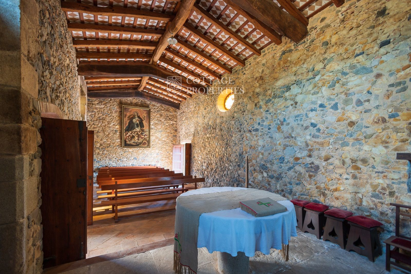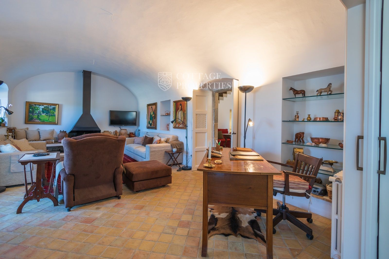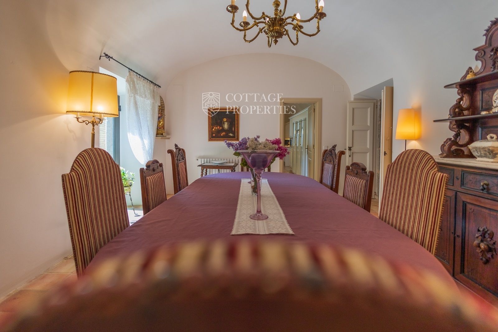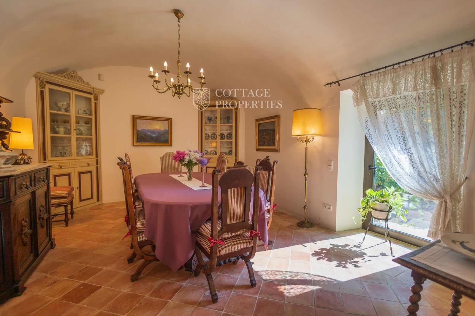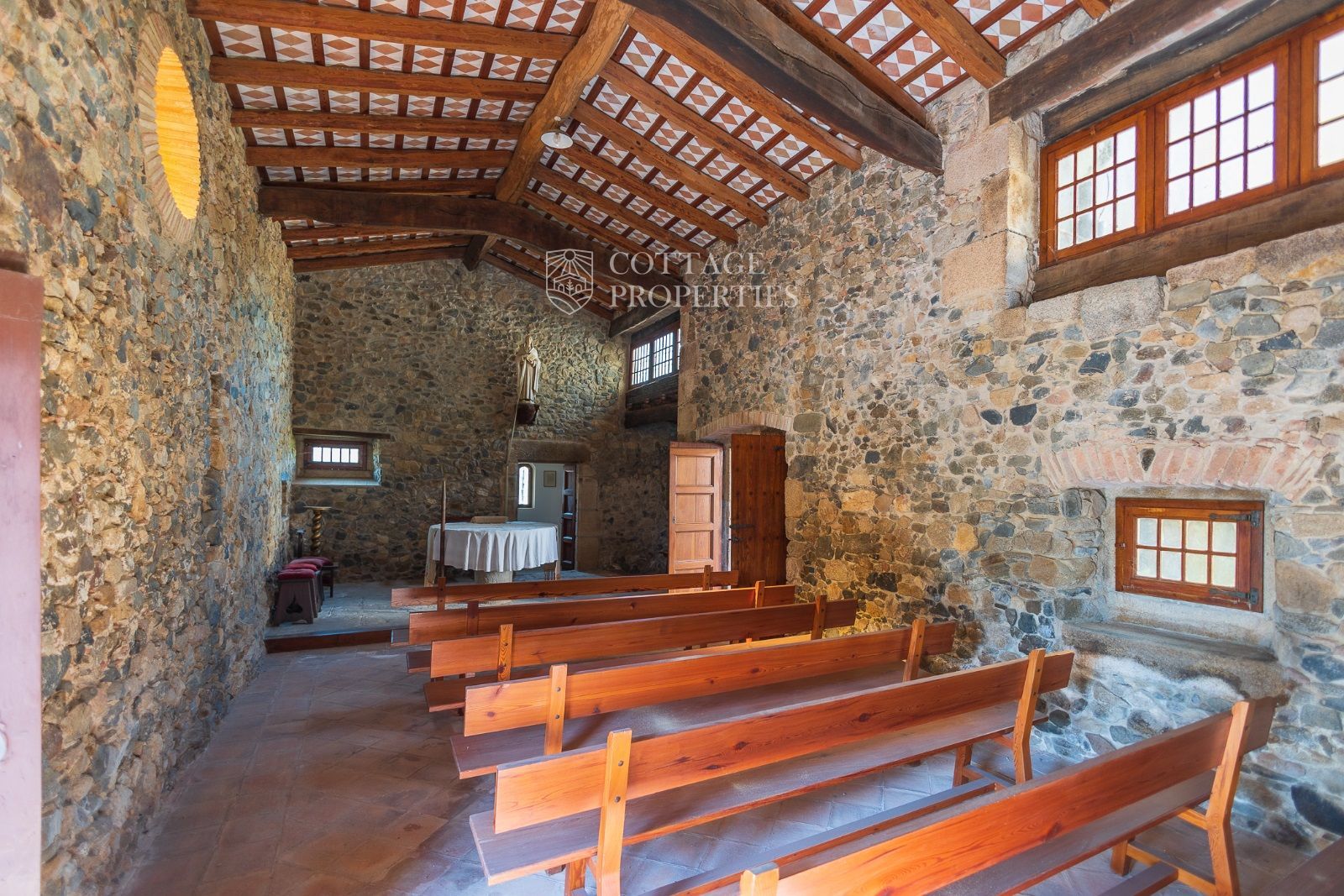 Espaces Extérieurs : Le grand patio intérieur, entouré de voûtes et d'arcades, est dominé par un oranger et a le style d'un majestueux cloître. La propriété dispose également d'un magnifique jardin avec un grand porche d'été et une piscine. De plus, elle comprend sa propre chapelle et une maison d'invités.