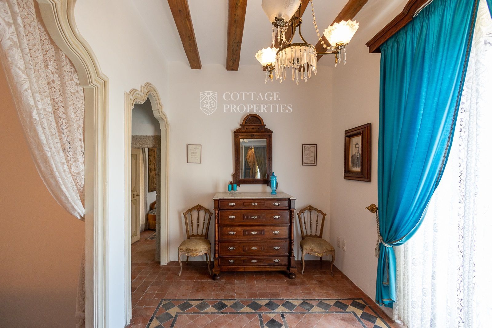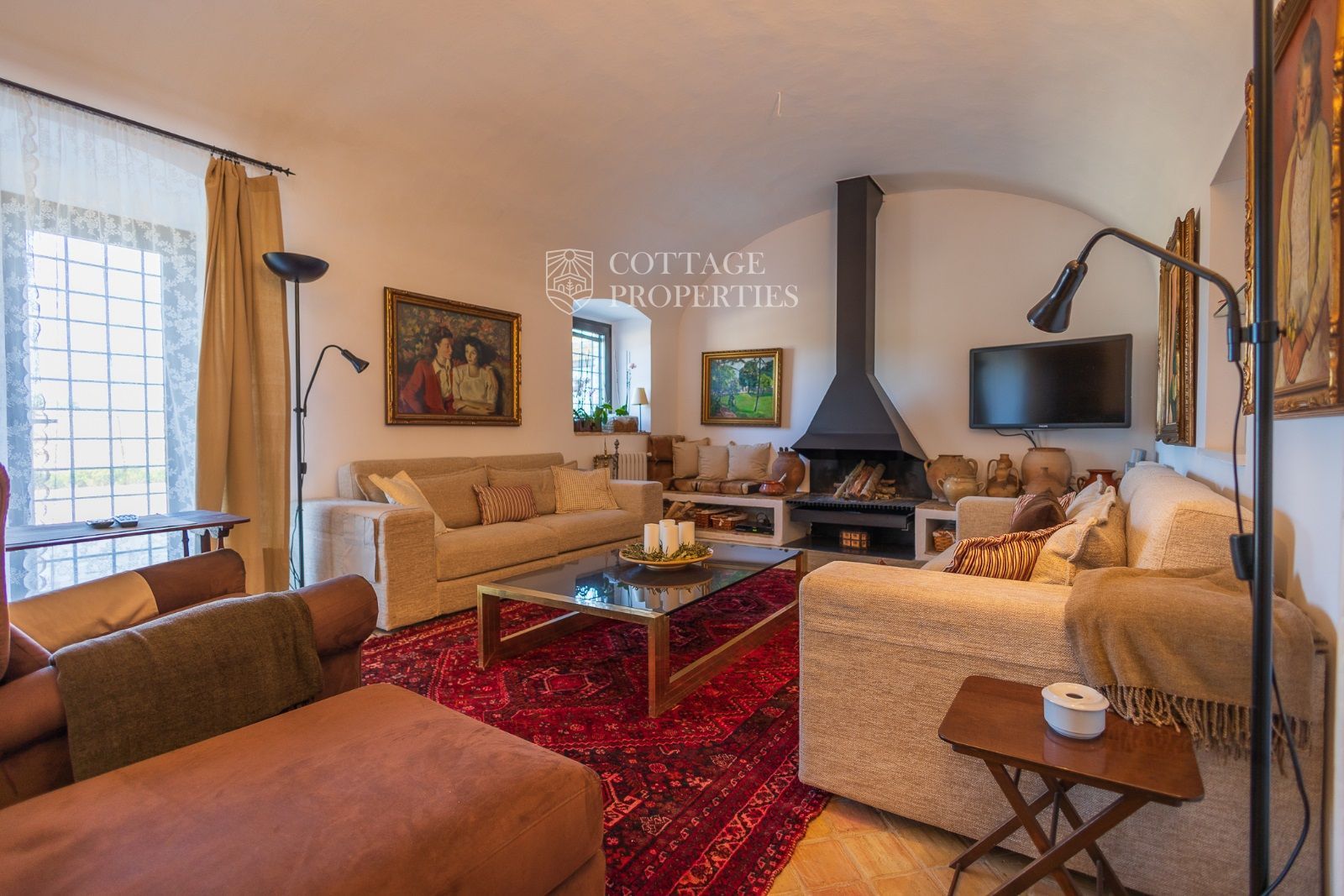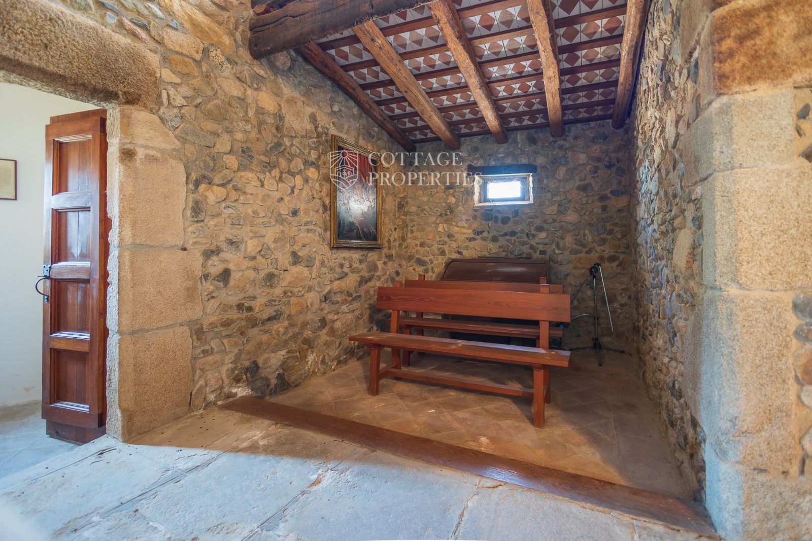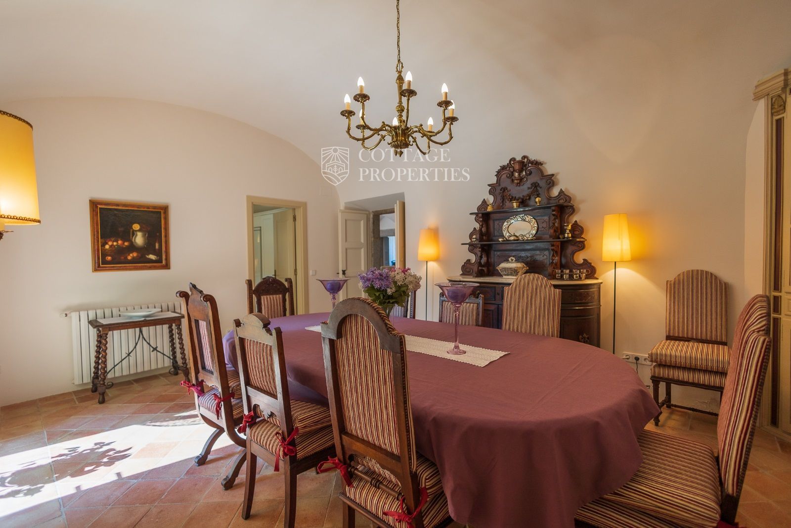 Espaces Extérieurs : Le grand patio intérieur, entouré de voûtes et d'arcades, est dominé par un oranger et a le style d'un majestueux cloître. La propriété dispose également d'un magnifique jardin avec un grand porche d'été et une piscine. De plus, elle comprend sa propre chapelle et une maison d'invités.