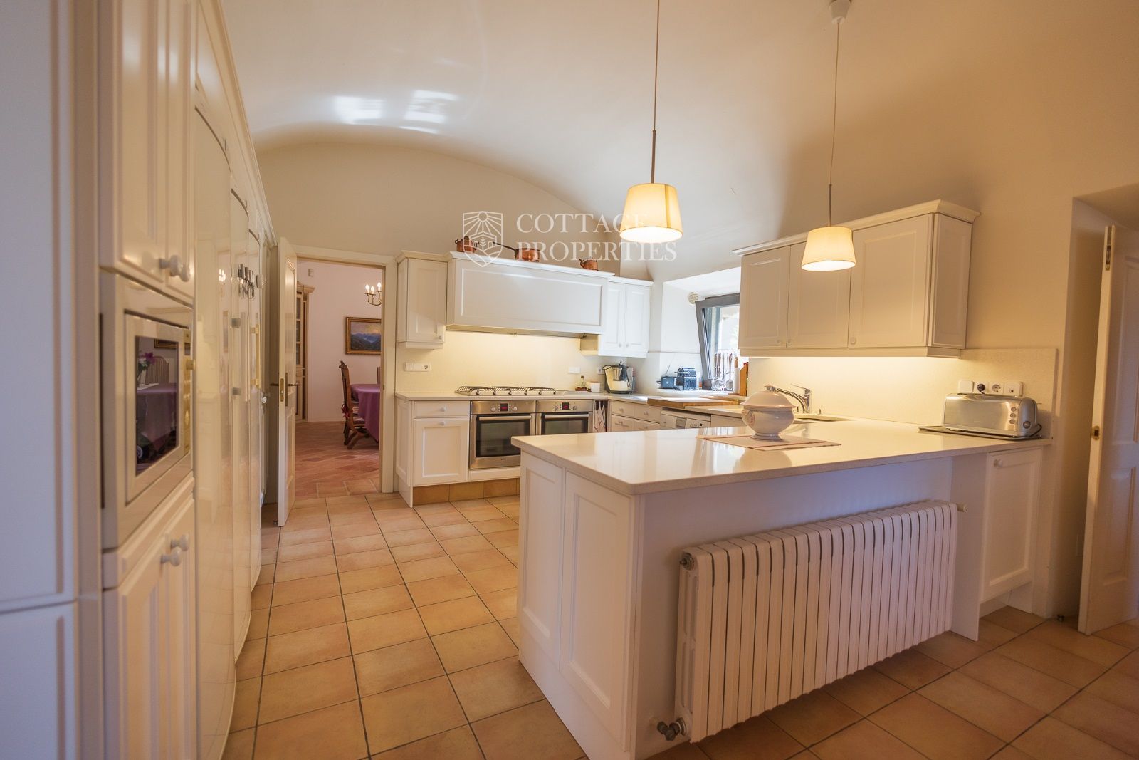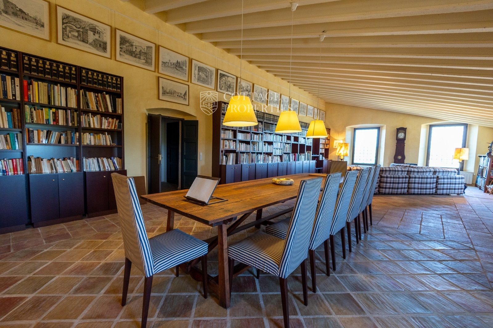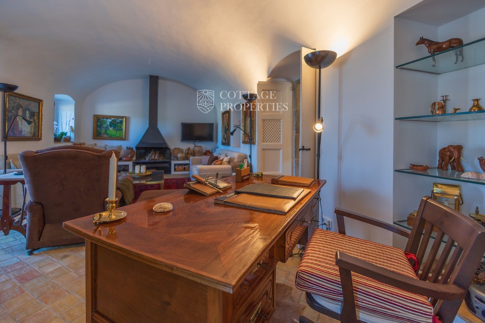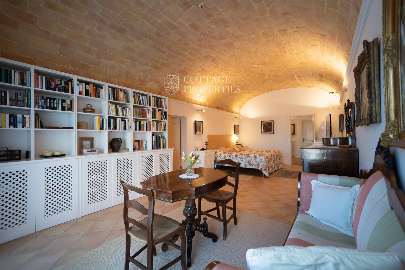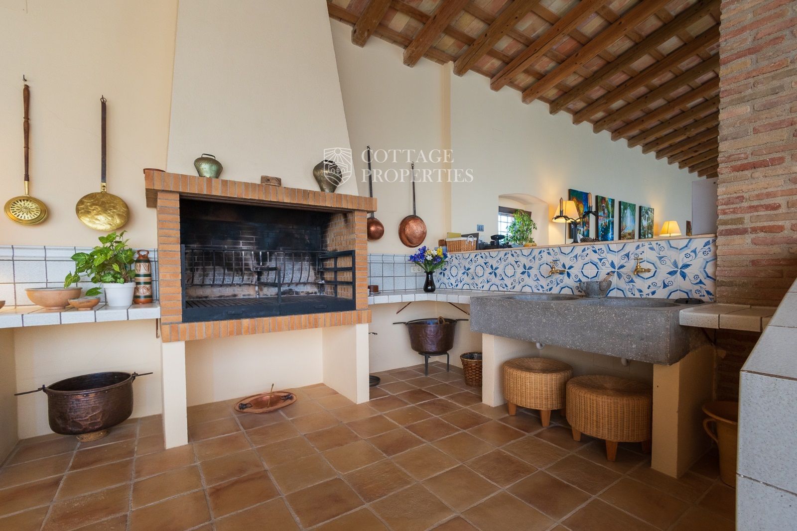 Espaces Extérieurs : Le grand patio intérieur, entouré de voûtes et d'arcades, est dominé par un oranger et a le style d'un majestueux cloître. La propriété dispose également d'un magnifique jardin avec un grand porche d'été et une piscine. De plus, elle comprend sa propre chapelle et une maison d'invités.