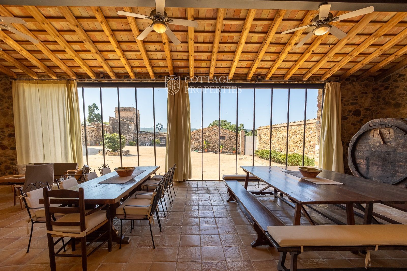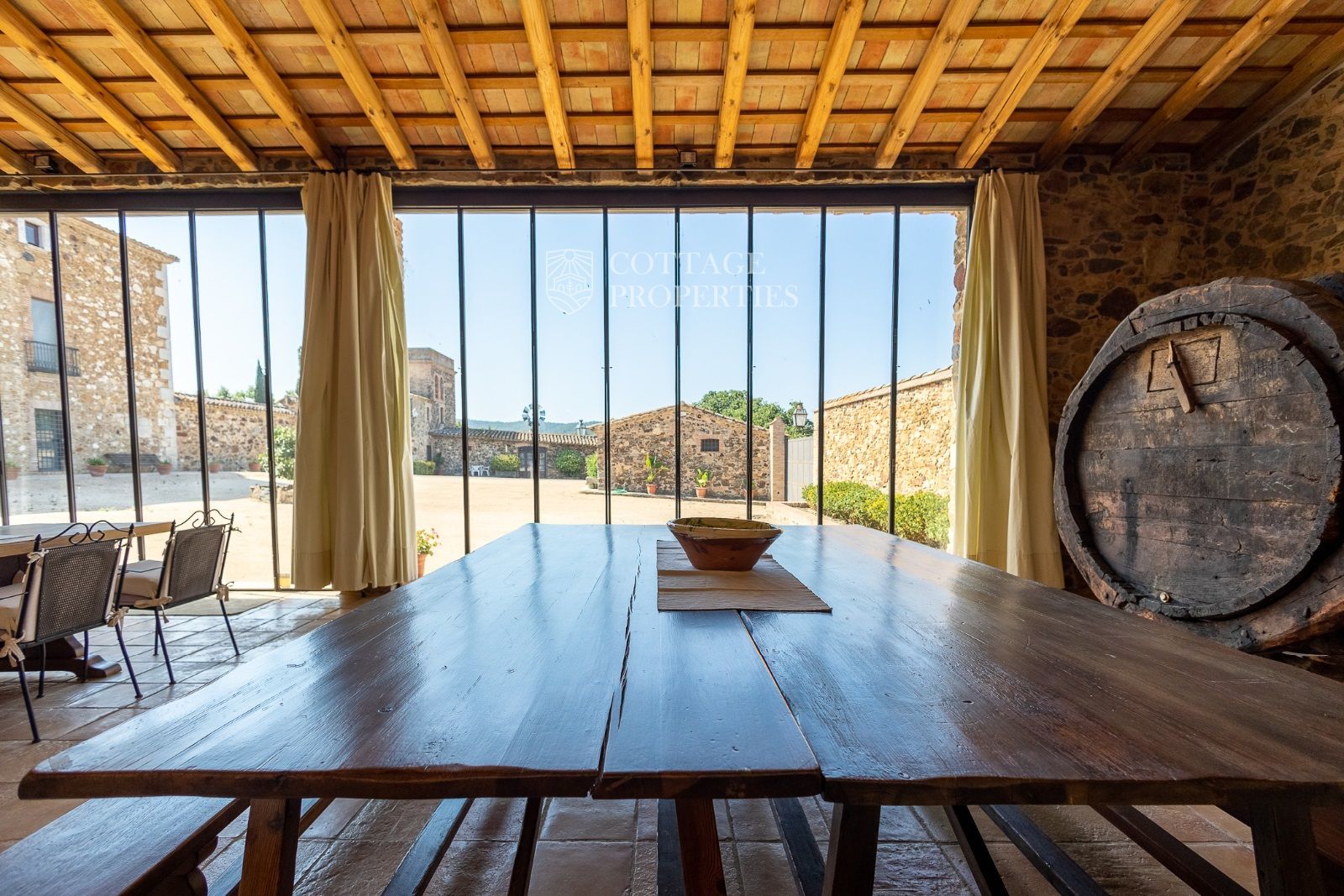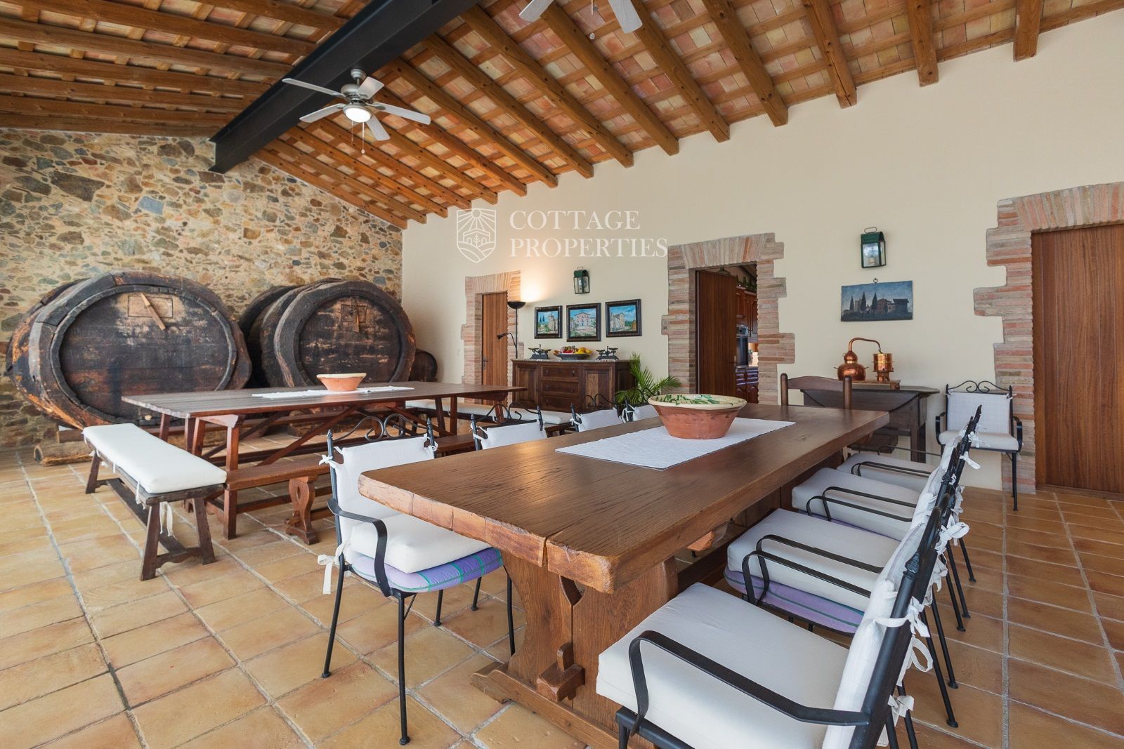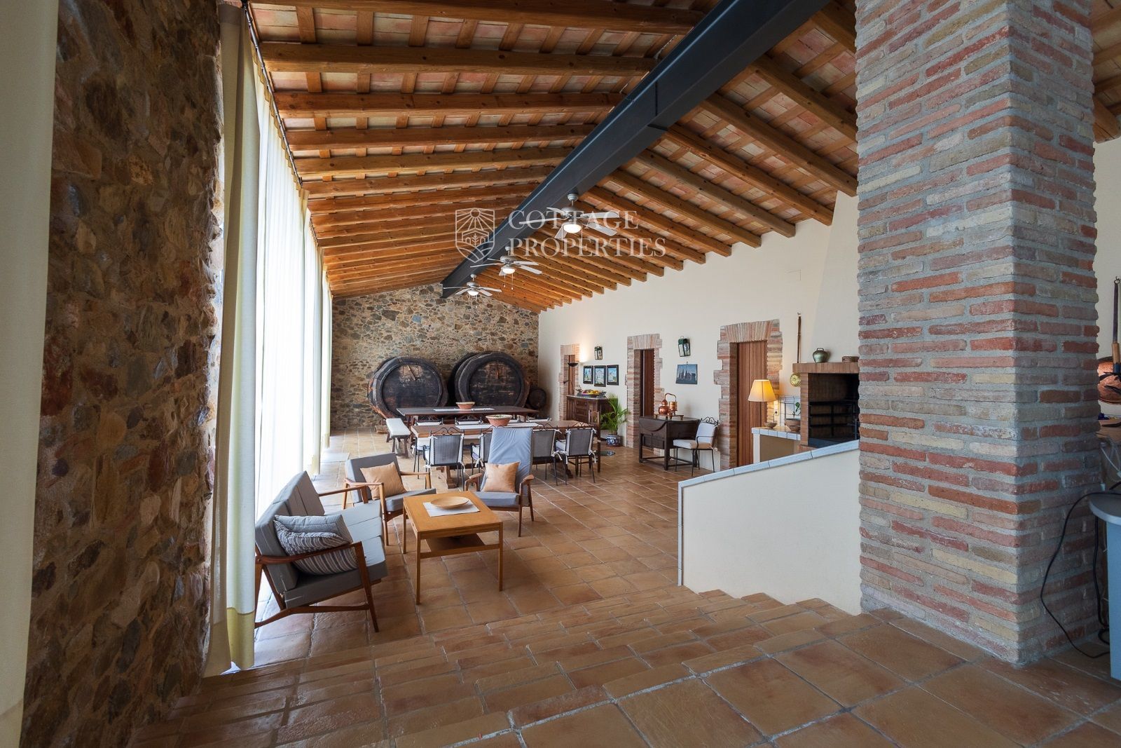 Masia Principale : Répartie sur trois étages, la masia dispose de 12 grandes chambres et 9 salles de bains, ainsi que d'immenses et majestueux halls d'entrée, salles à manger, salons, bureaux et une grande bibliothèque. Elle conserve des éléments historiques tels que des murs en pierre, des voûtes catalanes, des fresques et d'autres merveilles architecturales.