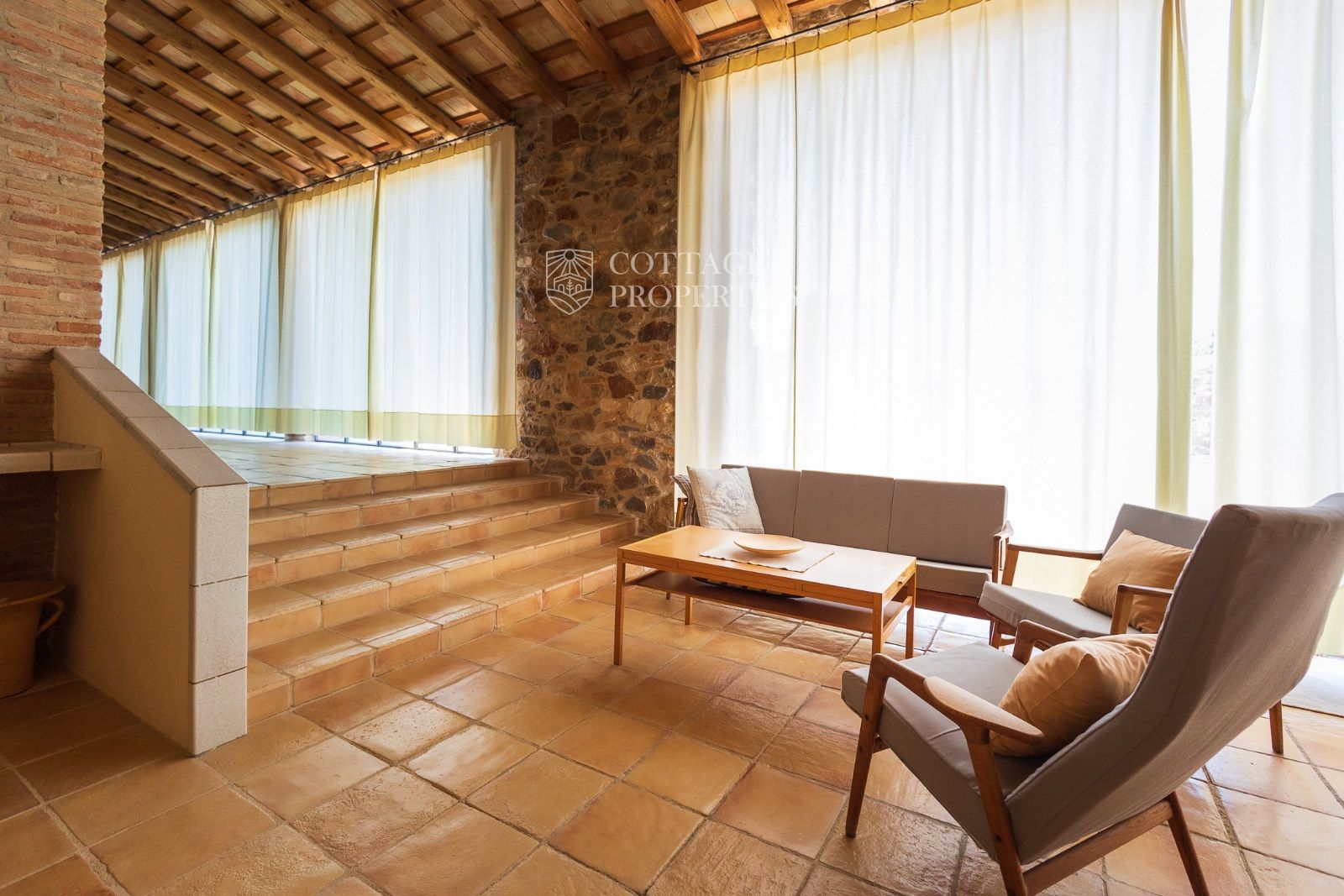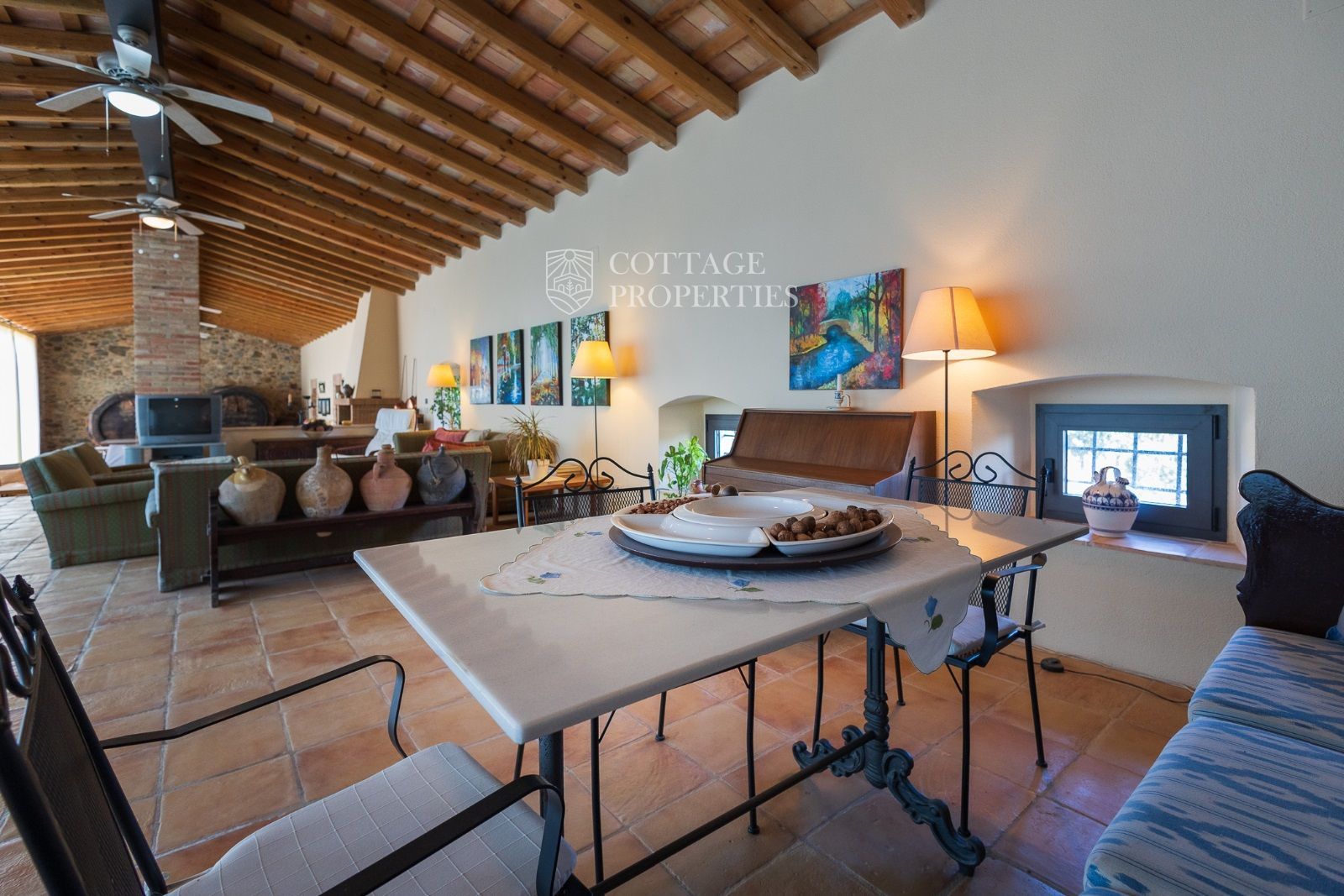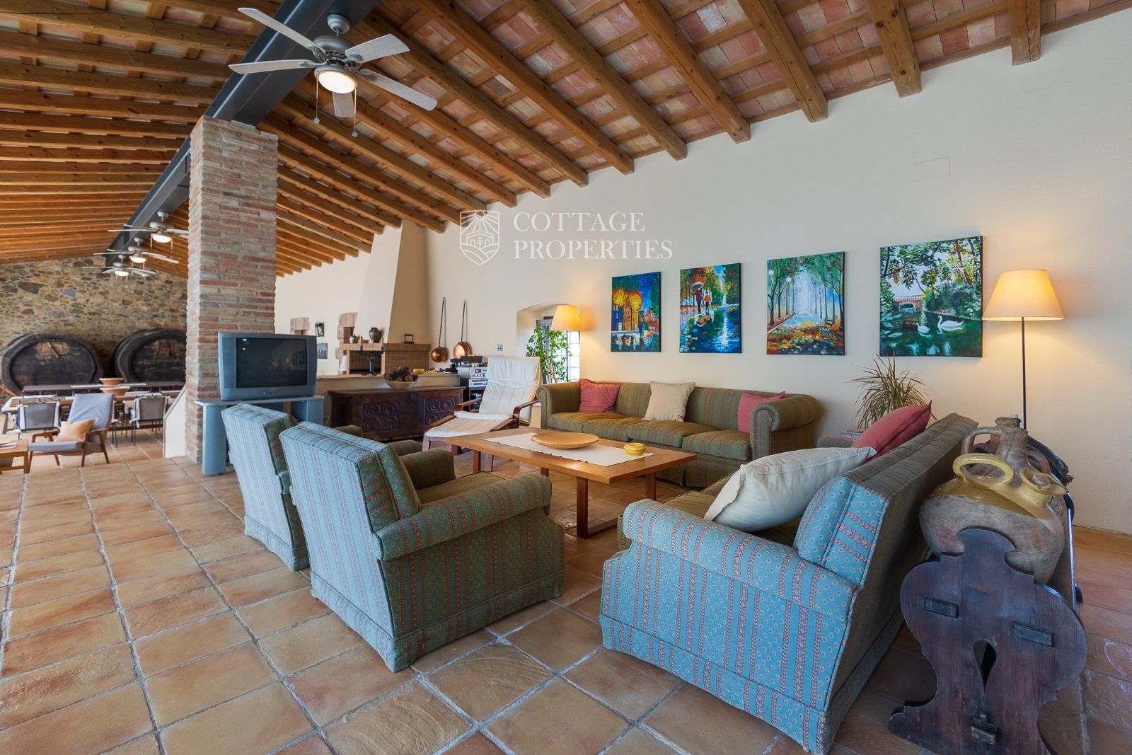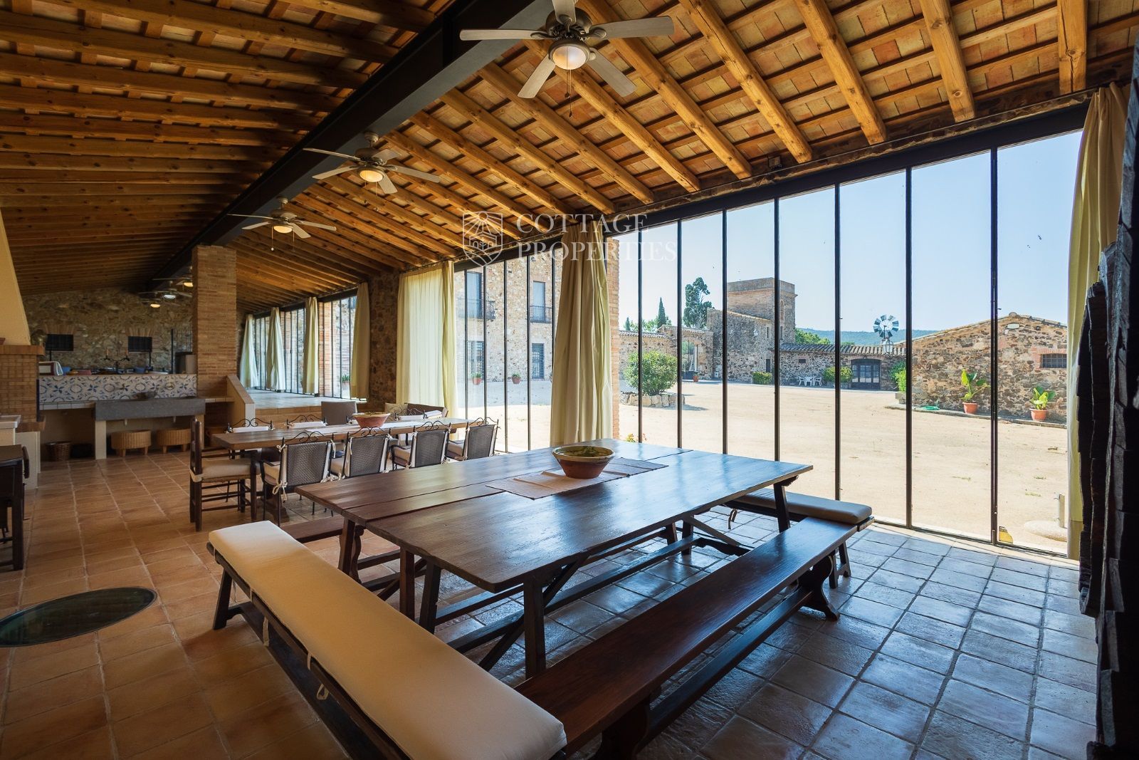 Masia Principale : Répartie sur trois étages, la masia dispose de 12 grandes chambres et 9 salles de bains, ainsi que d'immenses et majestueux halls d'entrée, salles à manger, salons, bureaux et une grande bibliothèque. Elle conserve des éléments historiques tels que des murs en pierre, des voûtes catalanes, des fresques et d'autres merveilles architecturales.