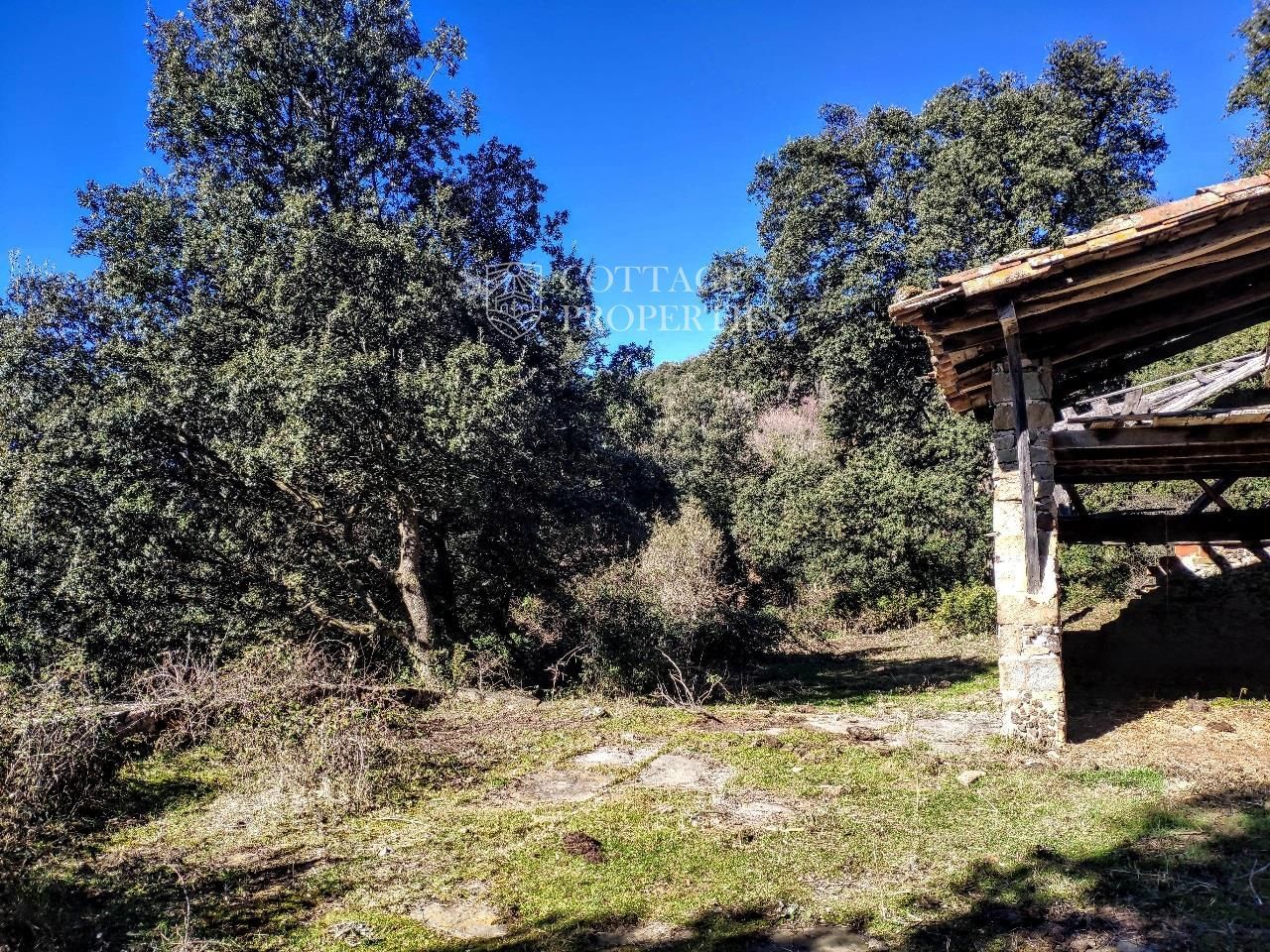 La propriété est située sur un terrain de 80 hectares, principalement des champs cultivés et des forêts indigènes, et offre 300 mètres carrés de construction dans la masia principale à rénover selon le projet souhaité. La propriété est à 9 km du village, avec 5 km de piste forestière en état semi-vierge, et un nouveau chemin d'accès est prévu. De plus, à l'intérieur de la propriété se trouve une source d'eau naturelle.
