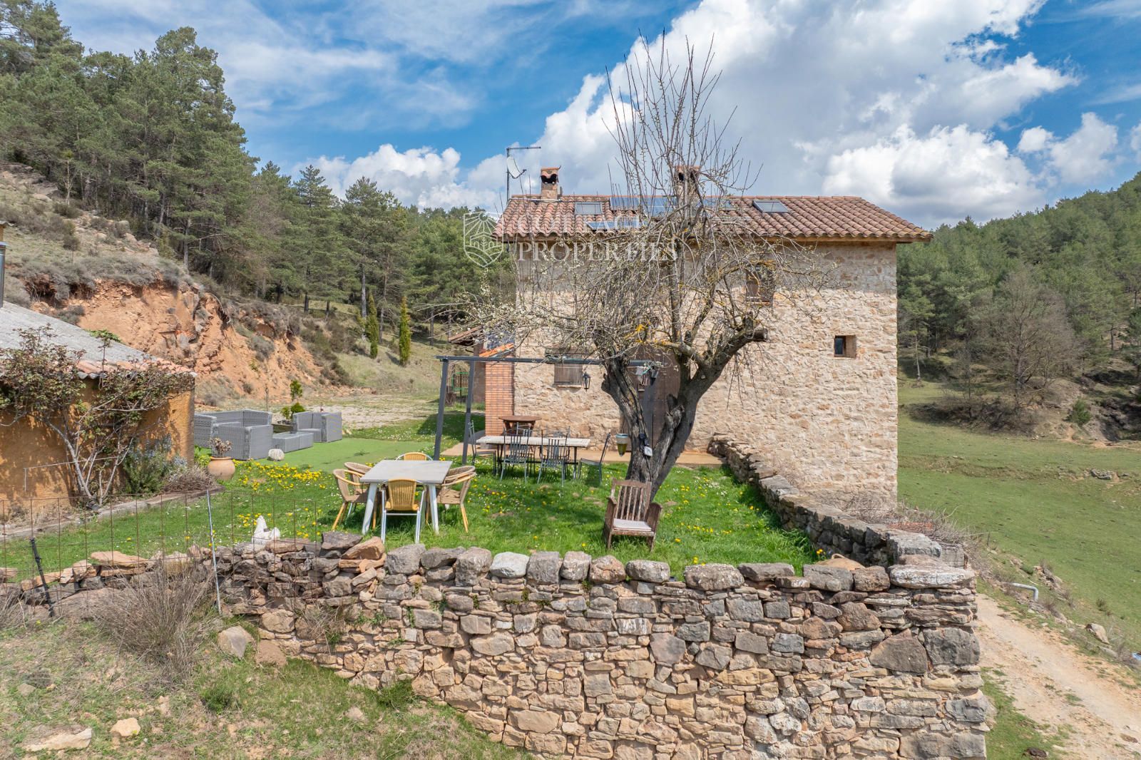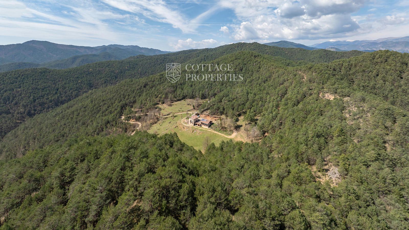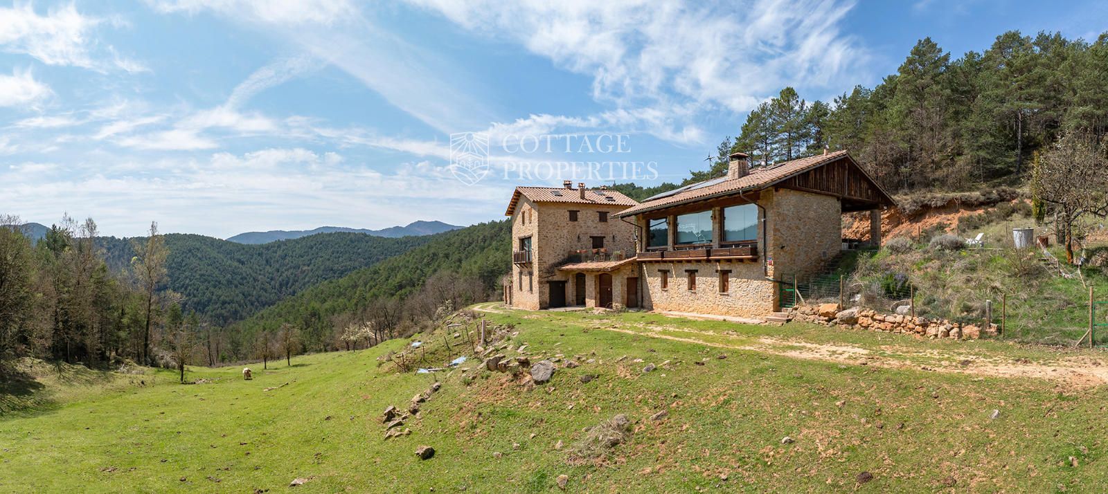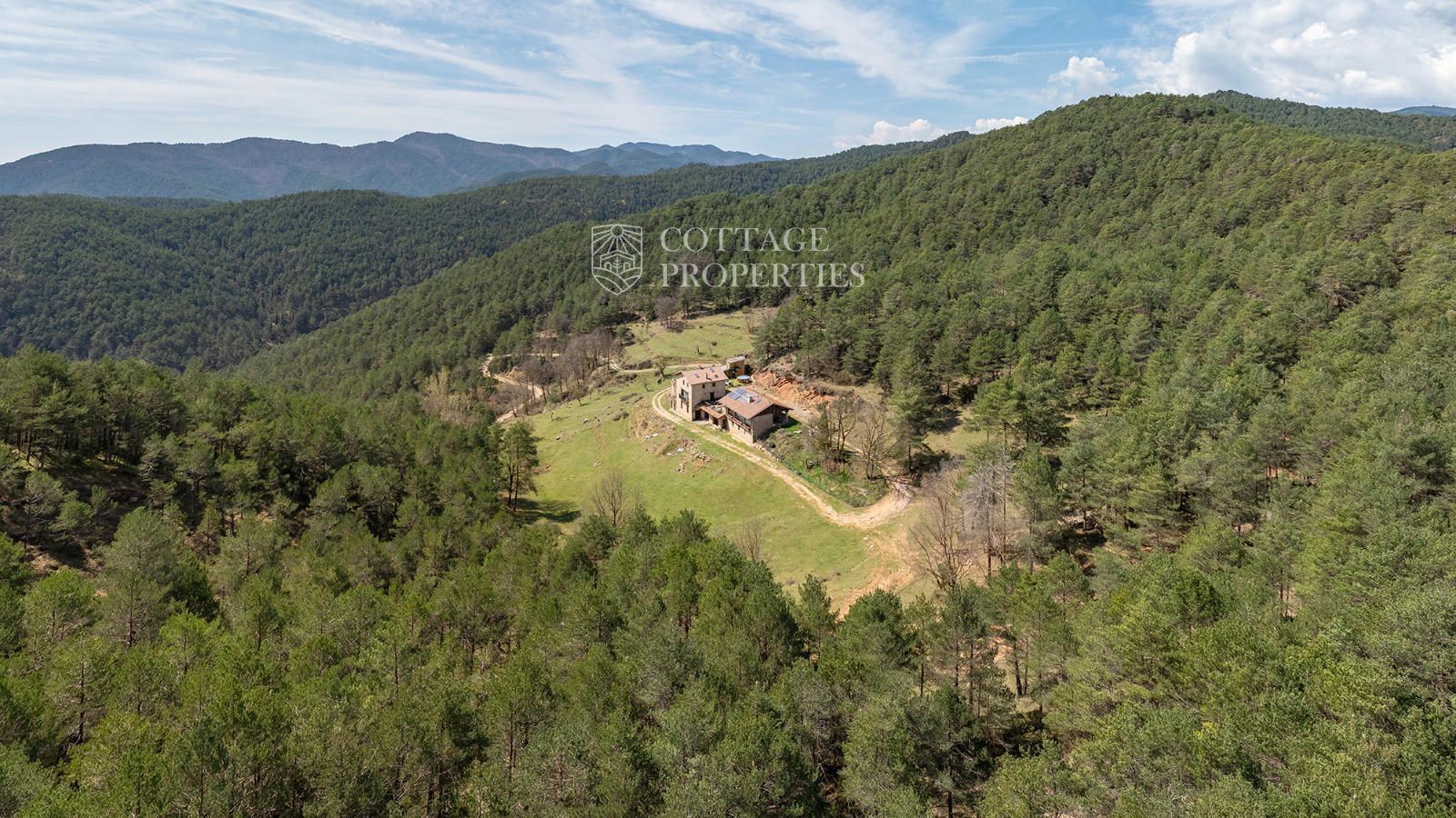 Située à seulement 10 minutes de Ripoll, cette mas a été construite au XIXe siècle sur un vaste terrain de 650 000 m², majoritairement composé de forêts et de pâturages. Elle dispose d'une surface construite de 451 m², répartie entre deux bâtiments totalement rénovés.